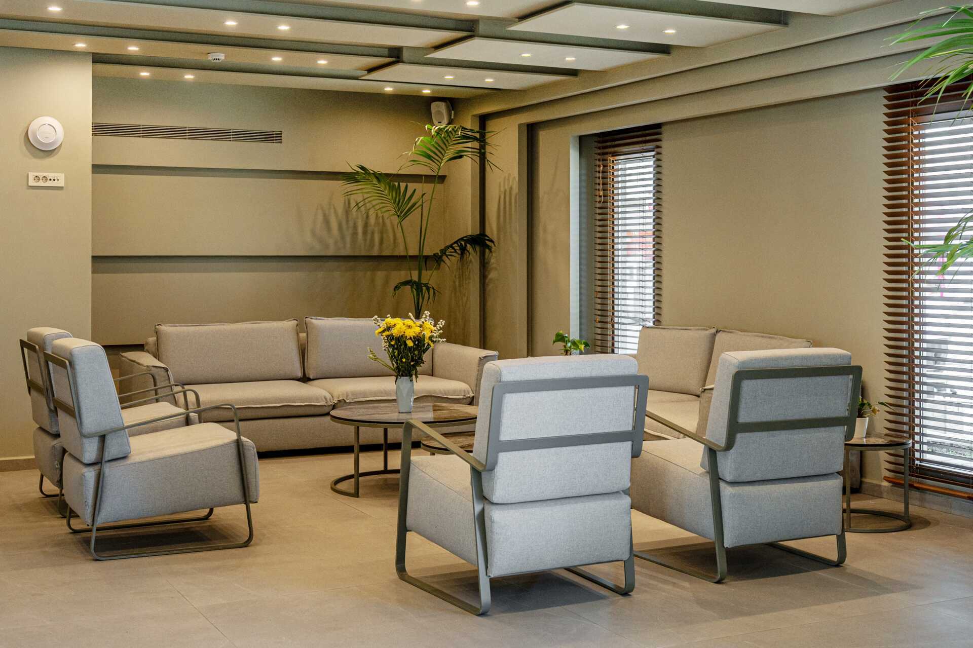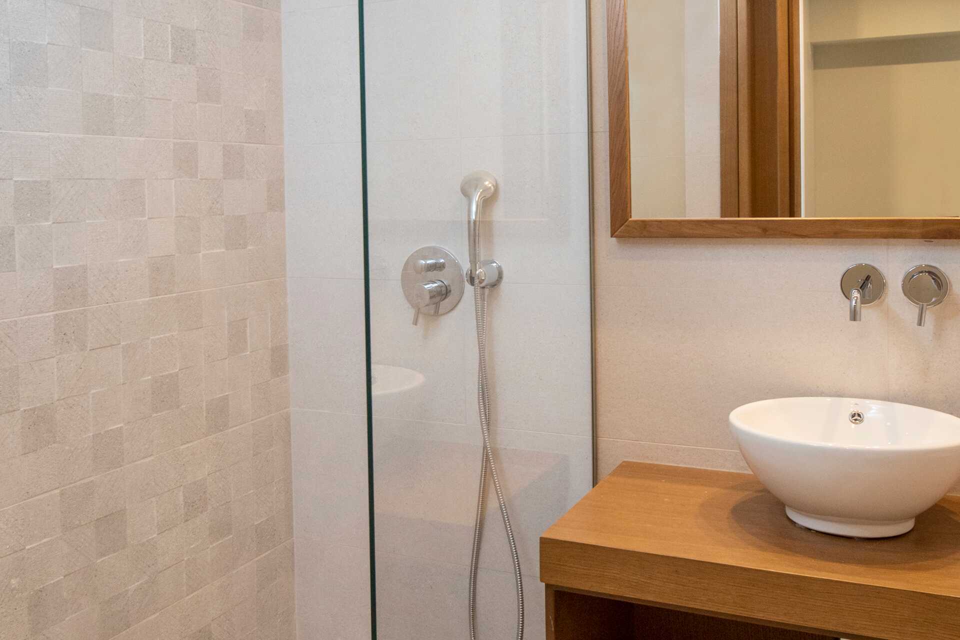 Dobbeltværelse i nedsænket stueplan med terrasse i stueplan. Tre trin fører ned til værelset. En dobbeltseng eller to enkeltsenge. Gratis wifi, aircondition og deponering. Køleskab, der kan fyldes som minibar mod betaling. El-kedel. Tv med internationale kanaler. Badeværelse med bruser og separat toilet. Rengøring 6 gange om ugen.
