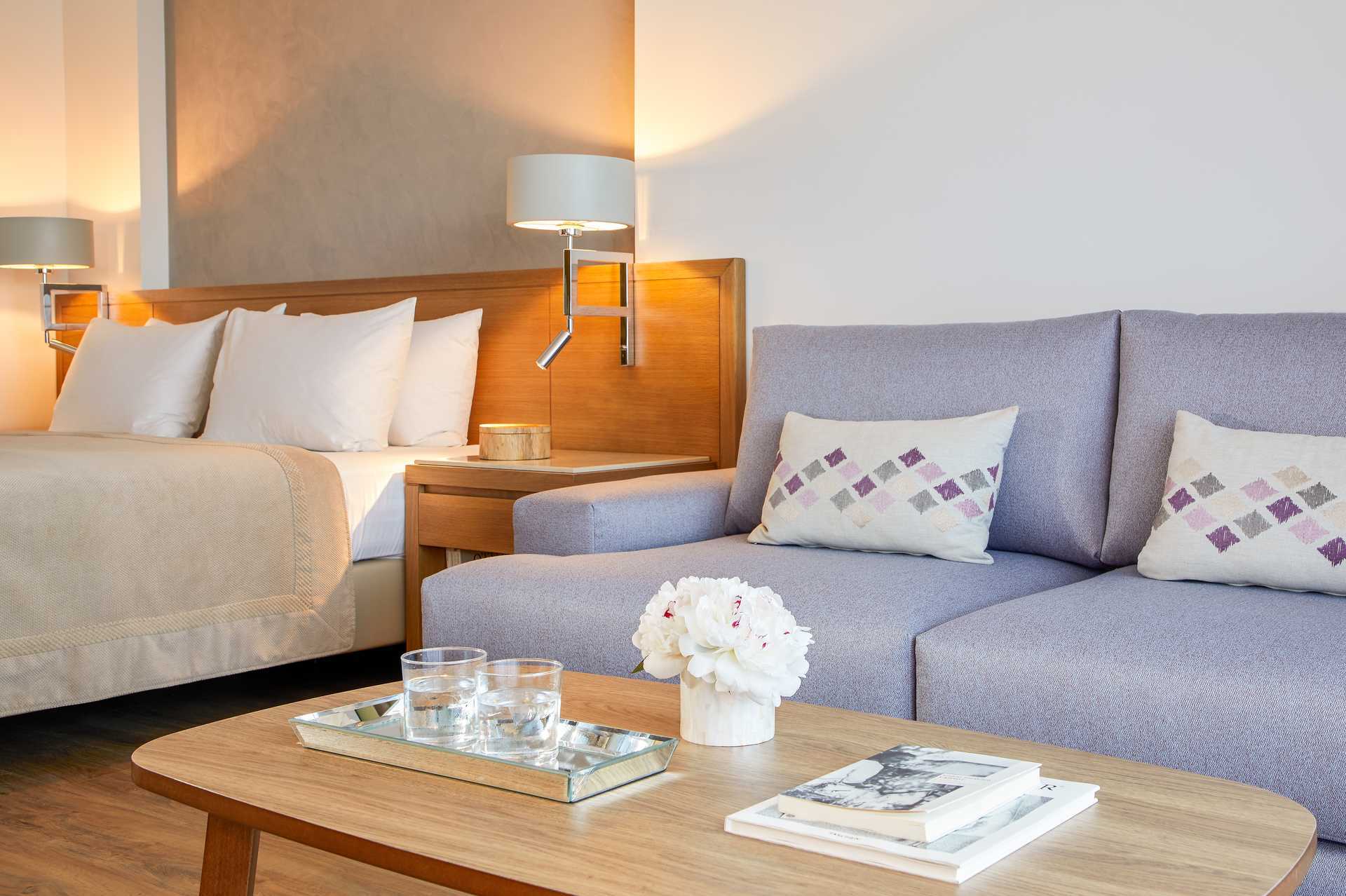 Dobbeltværelser med balkon, nogle med pooludsigt. Værelserne er placeret i hovedbygningen. En dobbeltseng. Mulighed for ekstra opredning i sovesofa. Gratis wifi, aircondition og deponering. Minibar. Velkomstpakke med vin og vand. El-kedel og kaffe/te. Espresso kaffemaskine, kapsler mod betaling. Smart-tv med internationale kanaler. Badekåber og tøfler. Hårtørrer. Badeværelse med bruser og toilet. Rengøring 7 gange om ugen.
