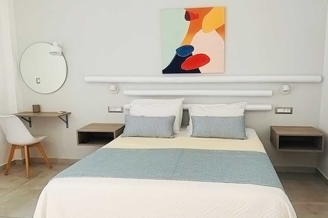 1-værelses lejlighed med balkon i varierende størrelse. Balkonerne ligger en halv etage oppe eller halvanden etage oppe. Soveværelse og kombineret opholdsrum med minikøkken. En dobbeltseng eller to enkeltsenge. Mulighed for ekstra opredning i sovesofa eller fold ud-seng. Minikøkken med køleskab, kogeplader, mikroovn, kaffemaskine, el-kedel og enkelt køkkenudstyr. En af lejlighederne har to yderdøre. Ved ankomsten venter en flaske vand i lejligheden. Gratis wifi og aircondition. Deponering mod betaling. Hårtørrer. 2025 - renoveret badeværelse med bruser og toilet. Rengøring 6 gange om ugen.