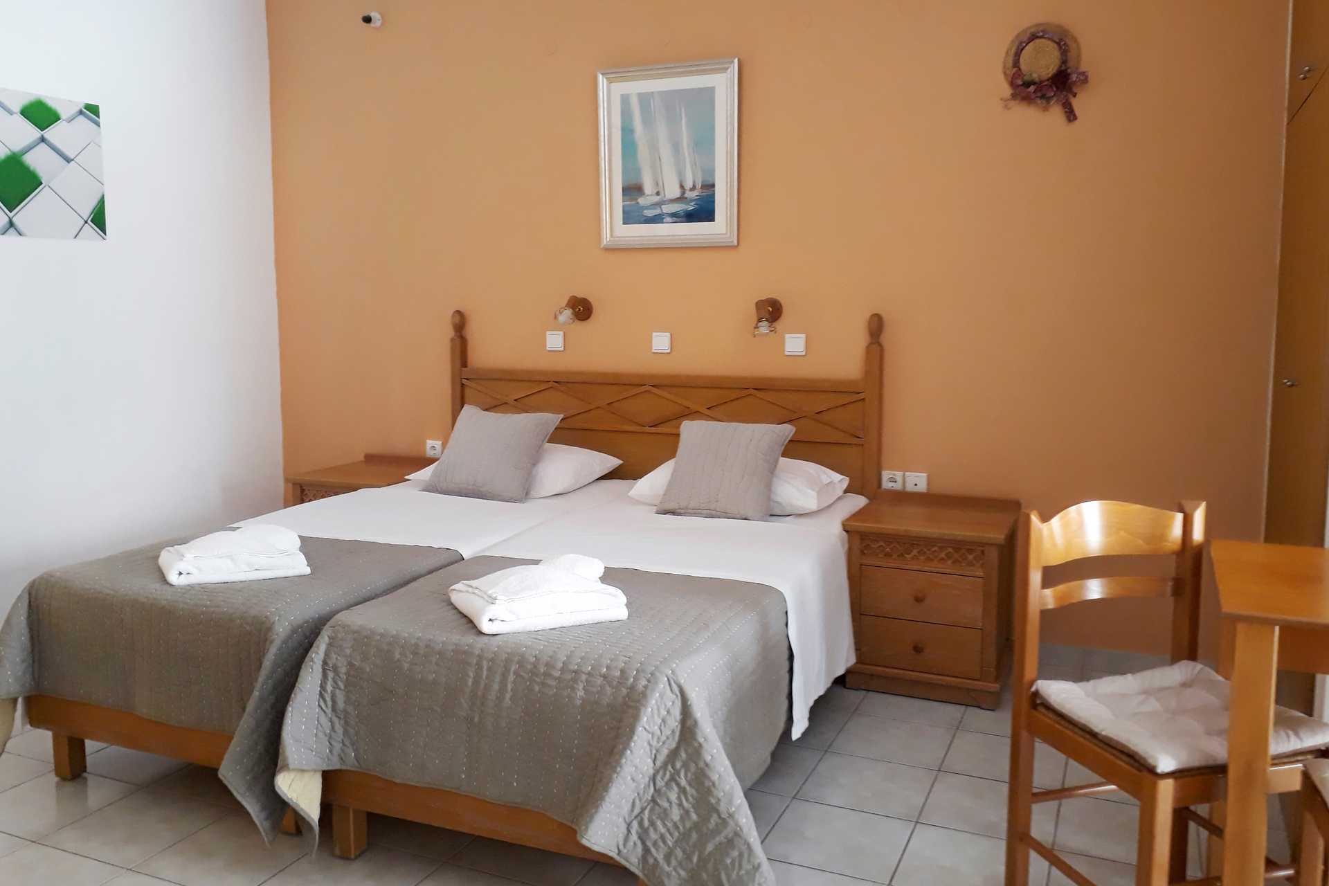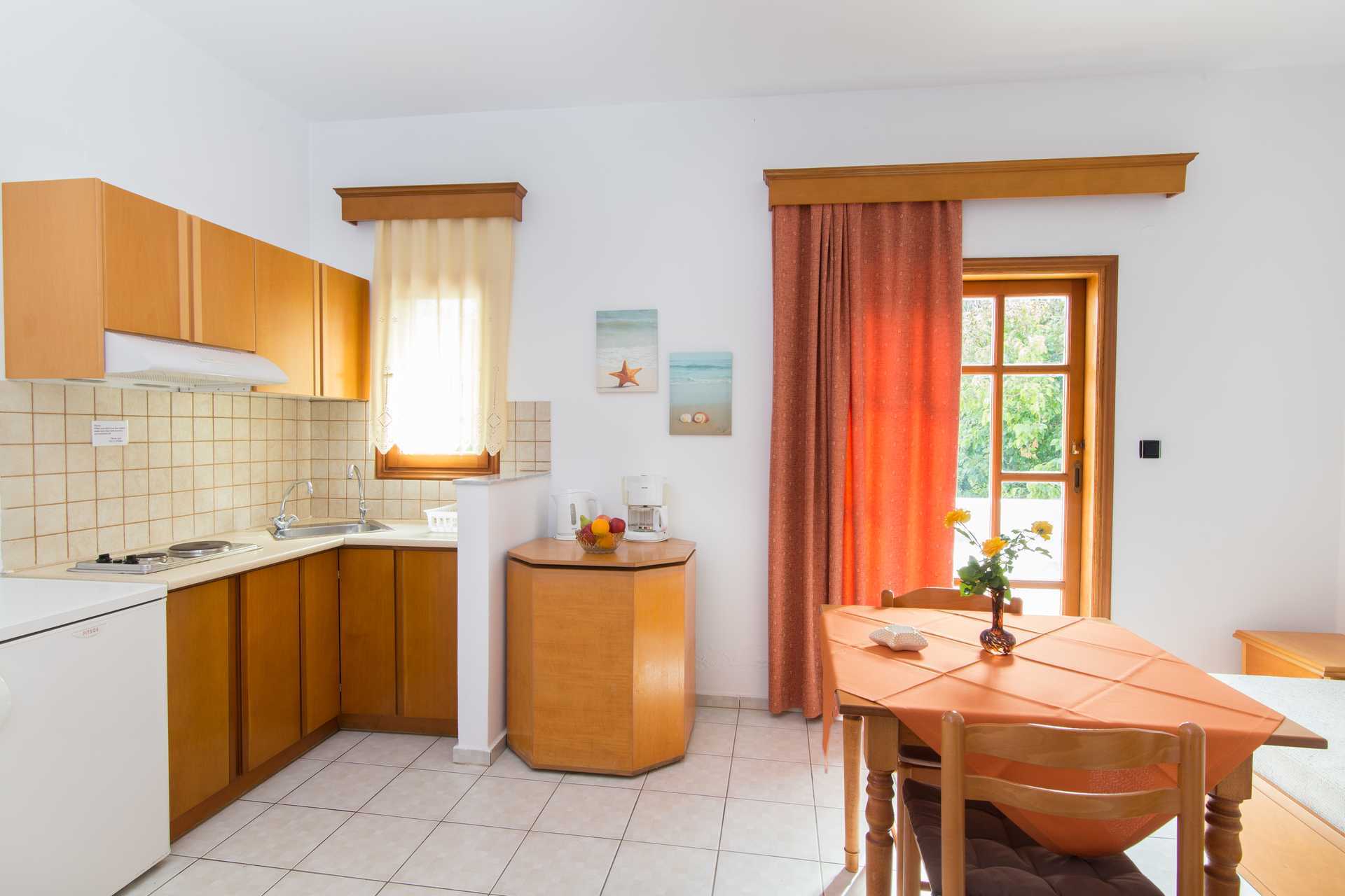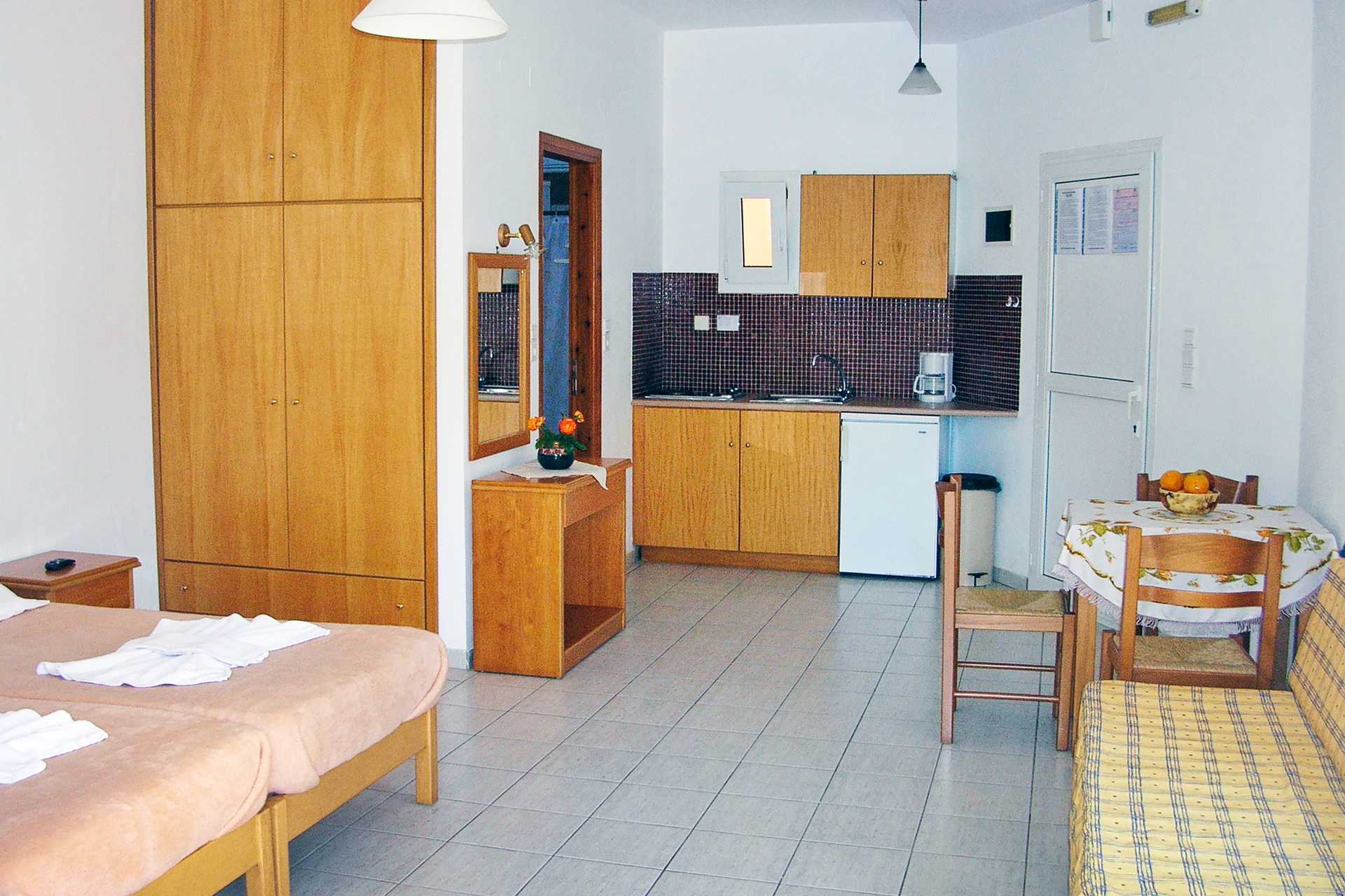 1-værelses lejligheder med balkon. En af lejlighederne har indgang via balkonen. Kombineret soveværelse og minikøkken. To enkeltsenge. Mulighed for ekstra opredning i sovesofa. Minikøkken med kogeplader, køleskab, el-kedel, kaffemaskine og enkelt køkkenudstyr. Gratis wifi. Aircondition og deponering mod betaling. Tv med internationale kanaler. Hårtørrer. Badeværelse med bruser og toilet. Rengøring 6 gange om ugen.
