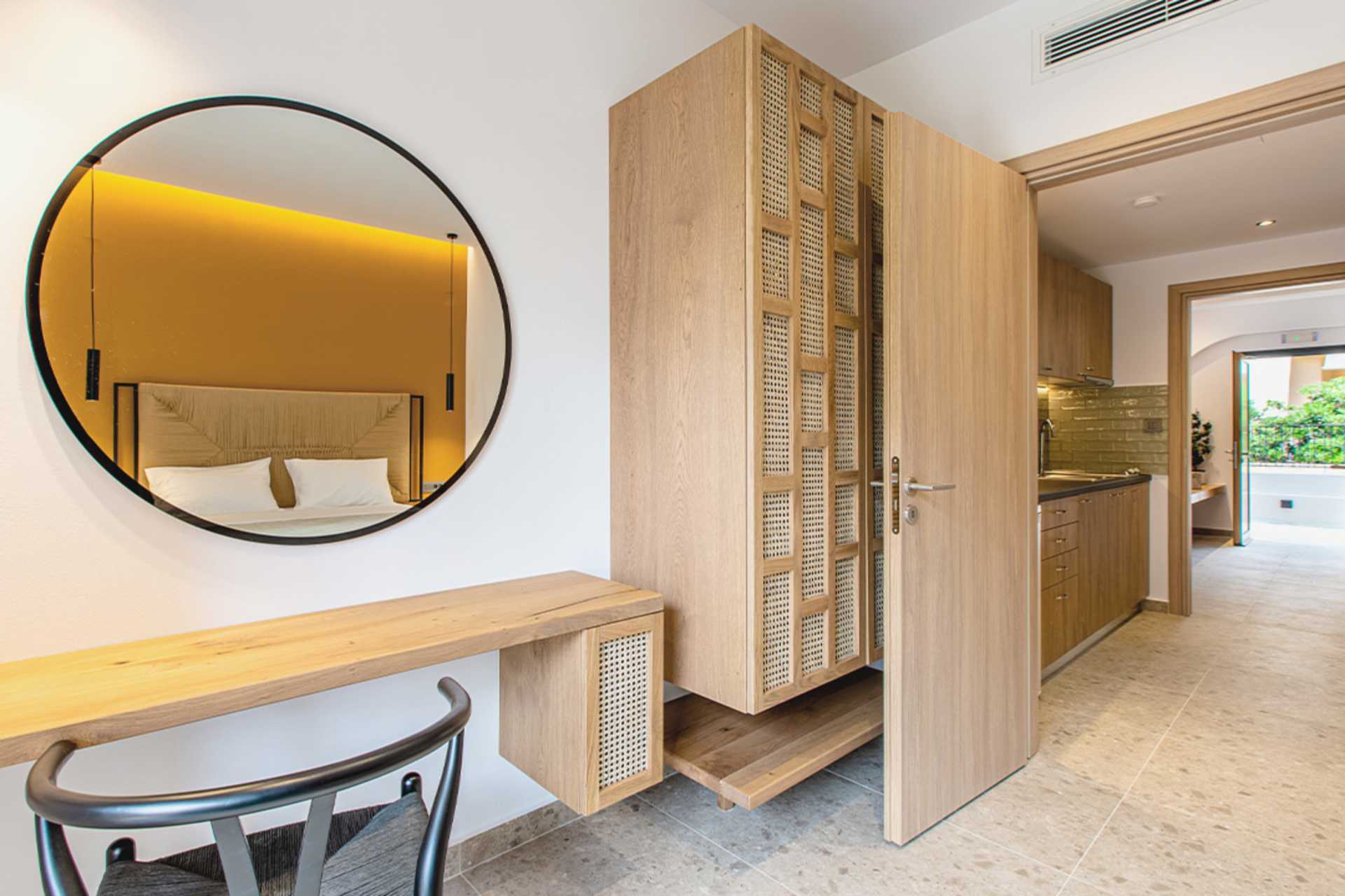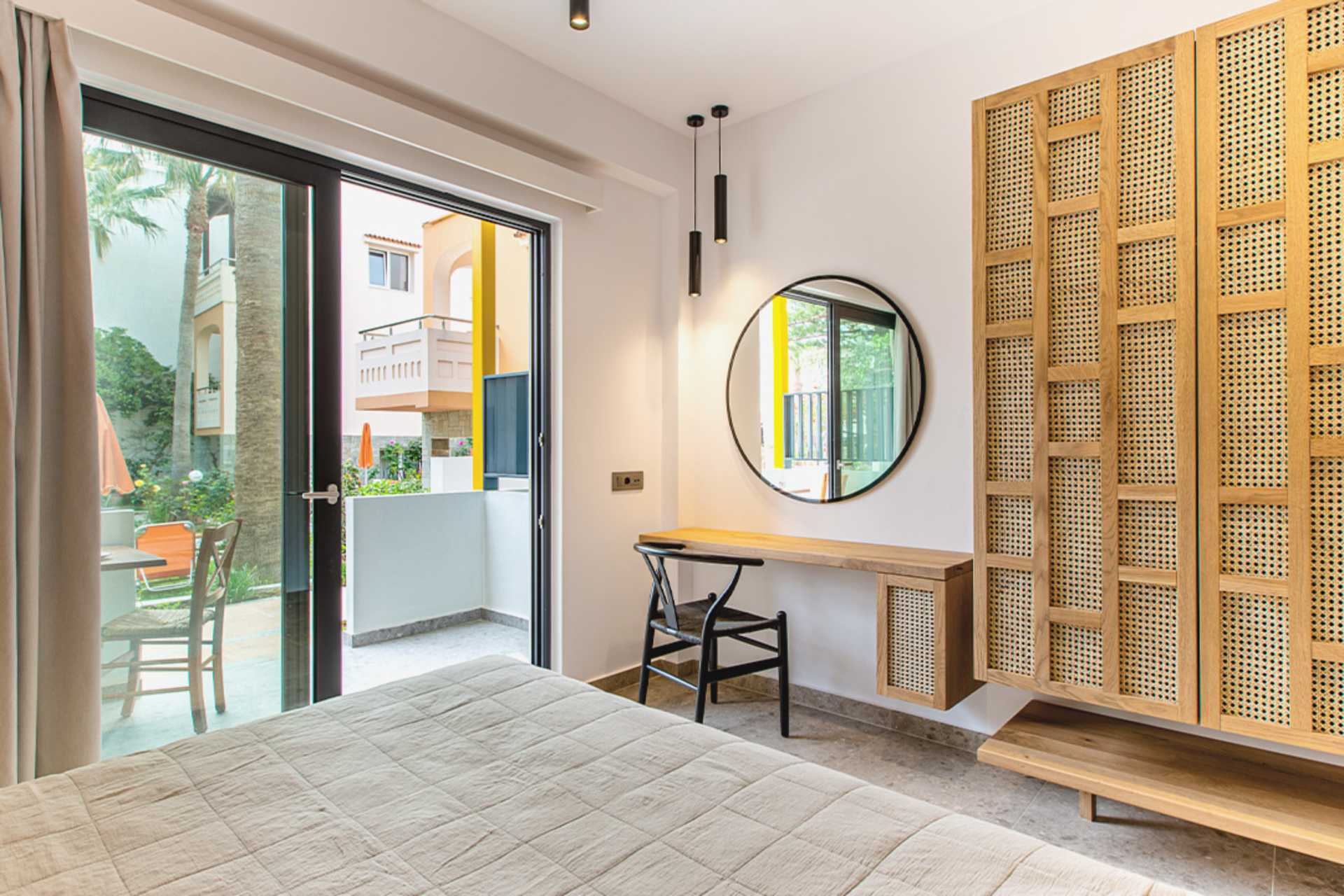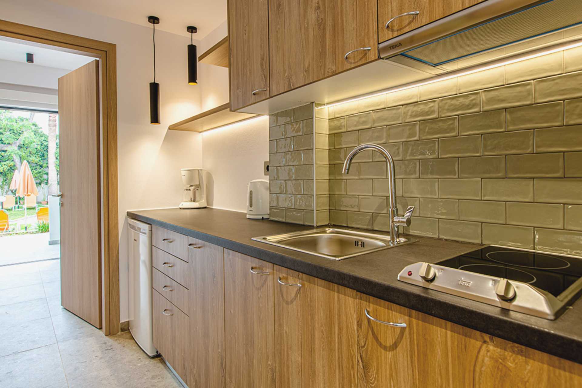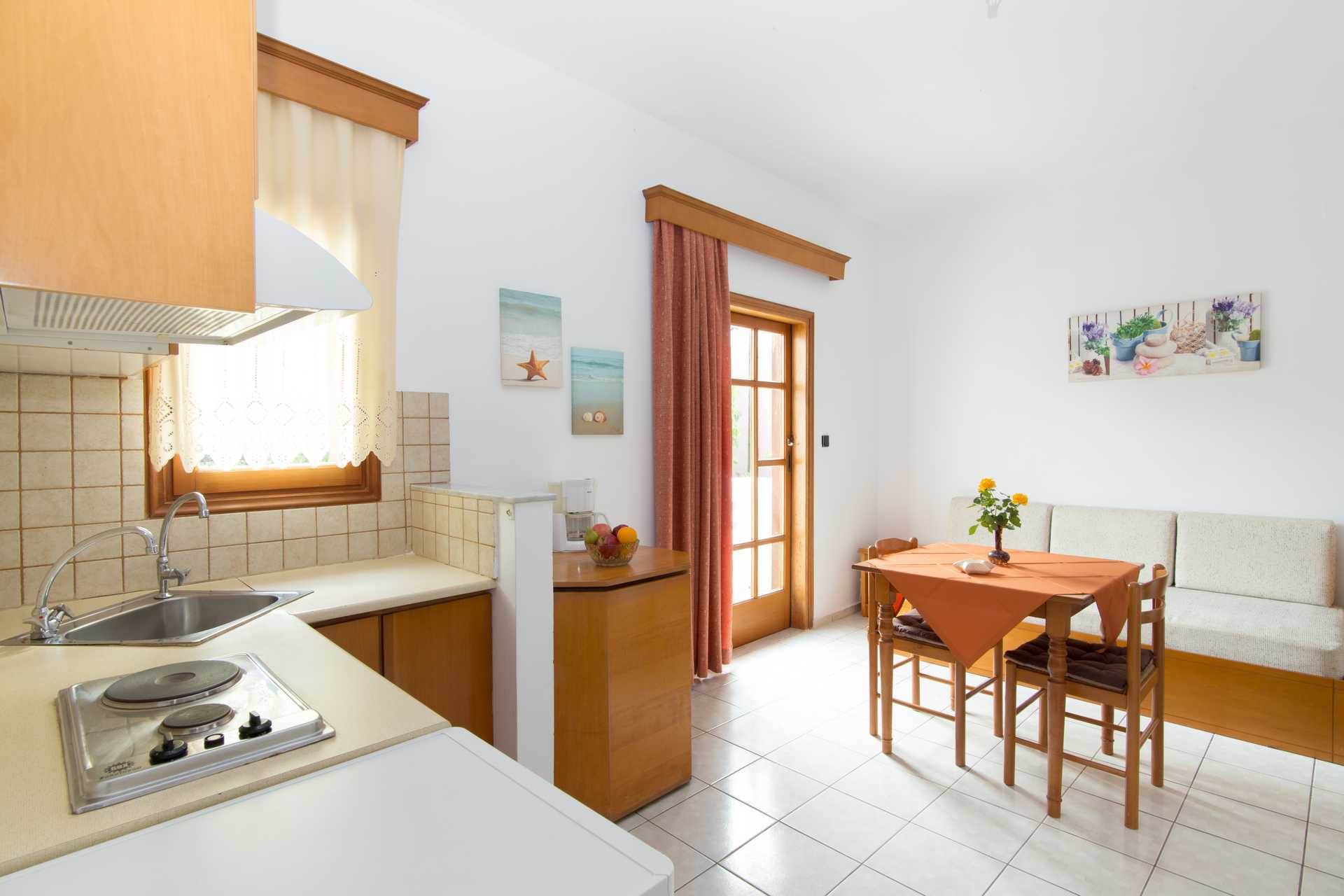 1-værelses lejligheder med balkon. En af lejlighederne har indgang via balkonen. Kombineret soveværelse og minikøkken. To enkeltsenge. Mulighed for ekstra opredning i sovesofa. Minikøkken med kogeplader, køleskab, el-kedel, kaffemaskine og enkelt køkkenudstyr. Gratis wifi. Aircondition og deponering mod betaling. Tv med internationale kanaler. Hårtørrer. Badeværelse med bruser og toilet. Rengøring 6 gange om ugen.