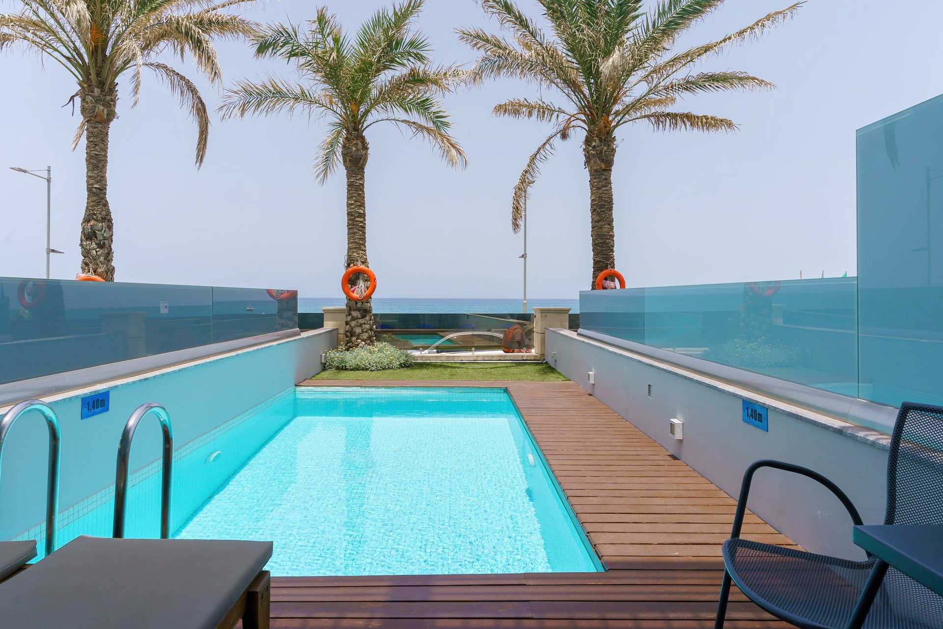 Dobbeltværelse med terrasse i stueplan og havudsigt samt en privat pool. På terrassen i stueplan er der borde og stole samt solstole. En dobbeltseng eller to enkeltsenge. Gratis wifi, aircondition og deponering. Køleskab. El-kedel og kaffe/te. Tv med internationale kanaler. Myggenet. Badekåber og tøfler. Hårtørrer. Badeværelse med bruser og toilet. I nogle værelser er badeværelserne åbne ind til værelset. Brusebad og toilet har døre. Rengøring 7 gange om ugen.