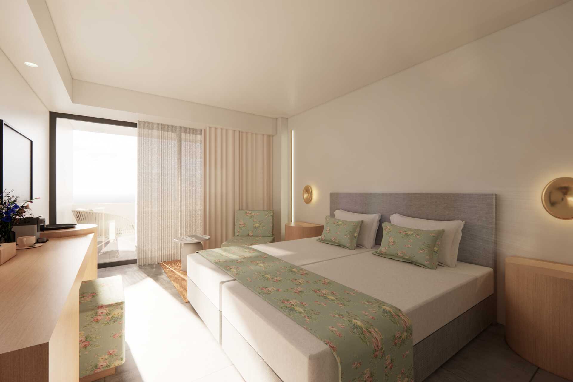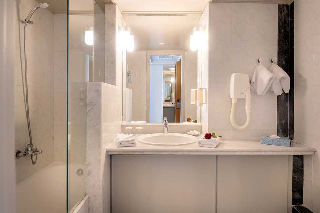 Superior værelse Plus med balkon og havudsigt. To enkeltsenge. Gratis wifi, aircondition og deponering. Minibar mod betaling. El-kedel og kaffe/te. Tv med internationale kanaler. Hårtørrer. Badekåber og tøfler. Badeværelse med badekar eller bruser samt toilet. Rengøring 2 gange pr. dag