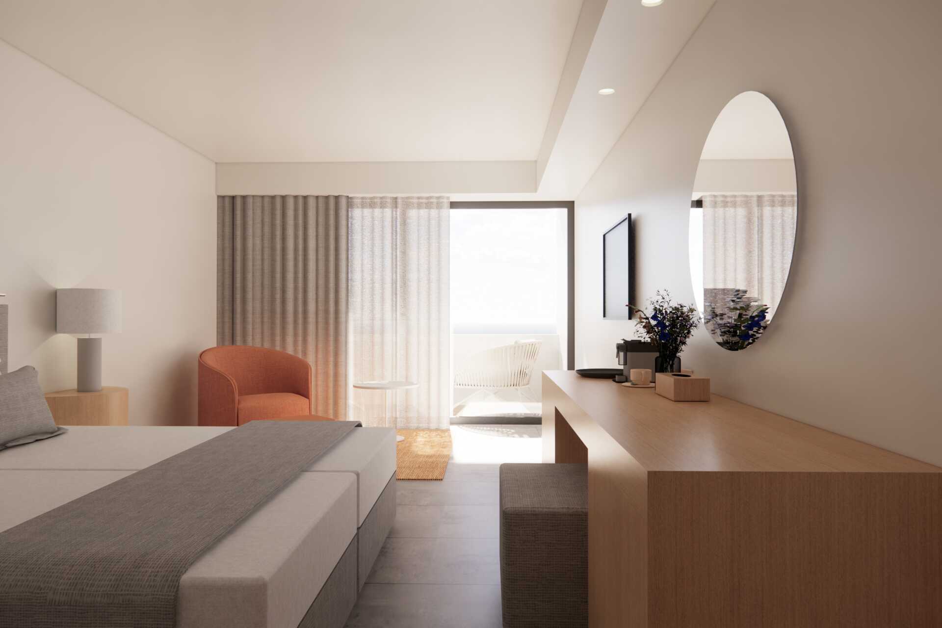 Dobbeltværelser, alle værelser har balkon. Nogle værelser bookes med havudsigt, delvis havudsigt eller pooludsigt. En dobbeltseng eller to enkeltsenge. Mulighed for ekstra opredning i enkeltseng. Gratis wifi, aircondition og deponering. Minibar mod betaling. El-kedel og kaffe/te. Tv med internationale kanaler. Hårtørrer. Tøfler. Badeværelse med badekar eller bruser samt toilet. Rengøring 7 gange om ugen.