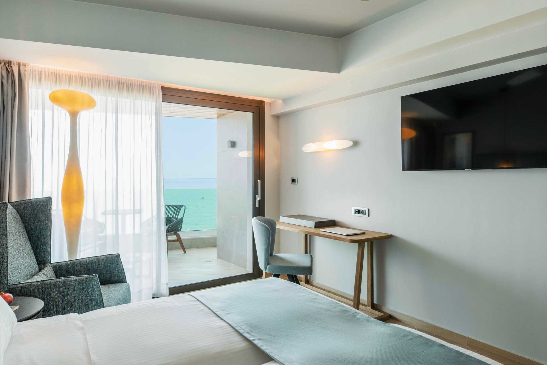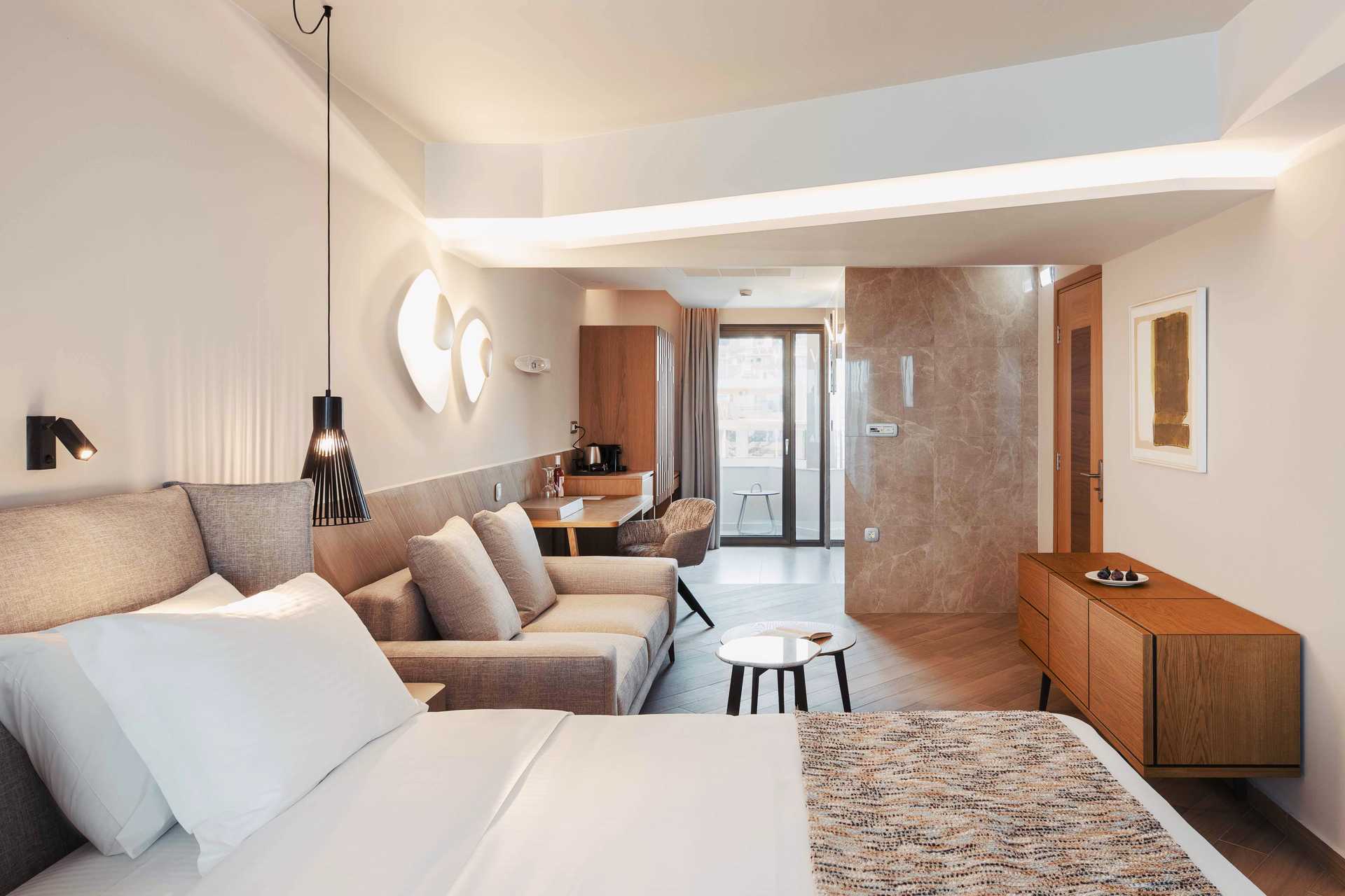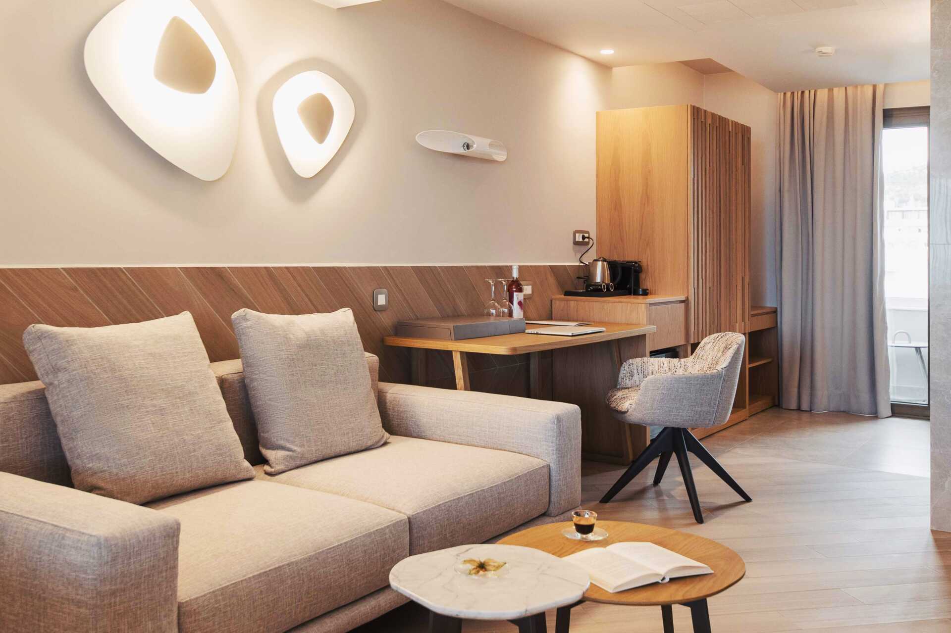 Premium Junior-suite med havudsigt og rummelig balkon på ca 15 kvadratmeter. En dobbeltseng eller to enkeltsenge. Gratis wifi og aircondition. Espressomaskine, kapsler medfølger. El-kedel og kaffe/te. Køleskab. En flaske vin, en flaske vand og frisk frugt venter ved ankomsten. Tv med internationale kanaler. Strygejern og strygebræt. Badekåber og tøfler. Hårtørrer. Badeværelse med bruser og toilet. Rengøring 7 gange om ugen.