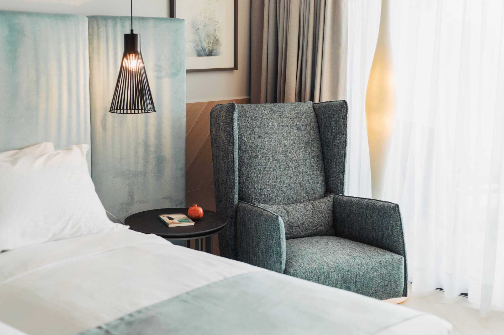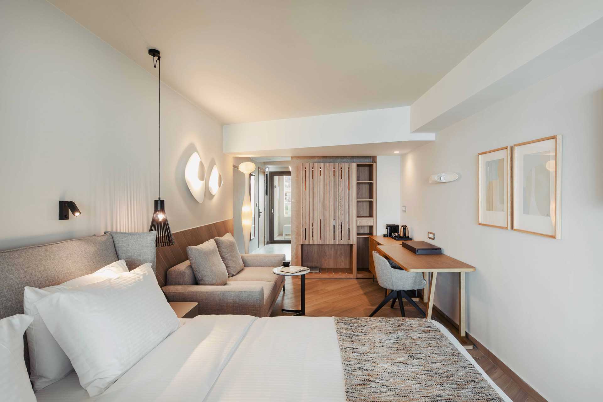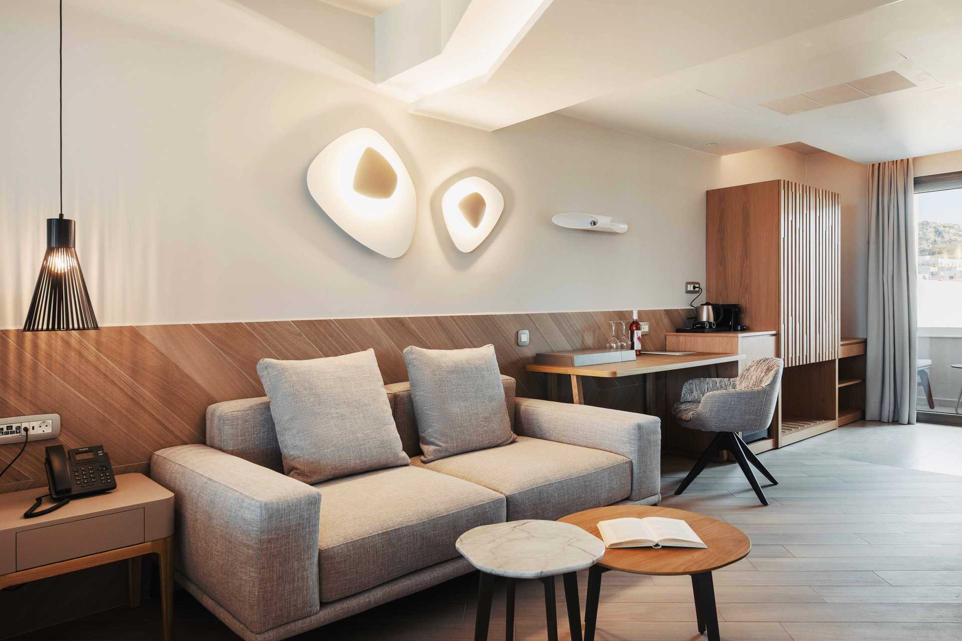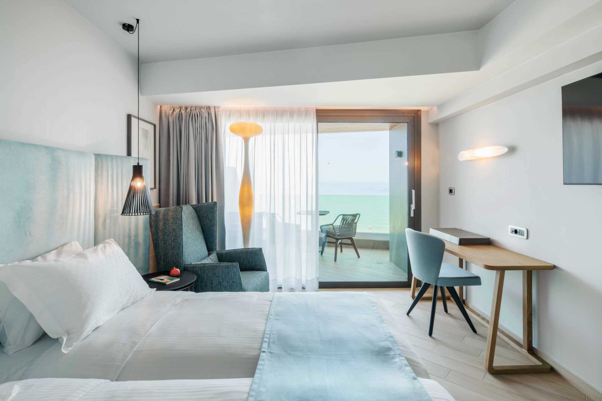 Premium Junior-suite med havudsigt og rummelig balkon på ca 15 kvadratmeter. En dobbeltseng eller to enkeltsenge. Gratis wifi og aircondition. Espressomaskine, kapsler medfølger. El-kedel og kaffe/te. Køleskab. En flaske vin, en flaske vand og frisk frugt venter ved ankomsten. Tv med internationale kanaler. Strygejern og strygebræt. Badekåber og tøfler. Hårtørrer. Badeværelse med bruser og toilet. Rengøring 7 gange om ugen.