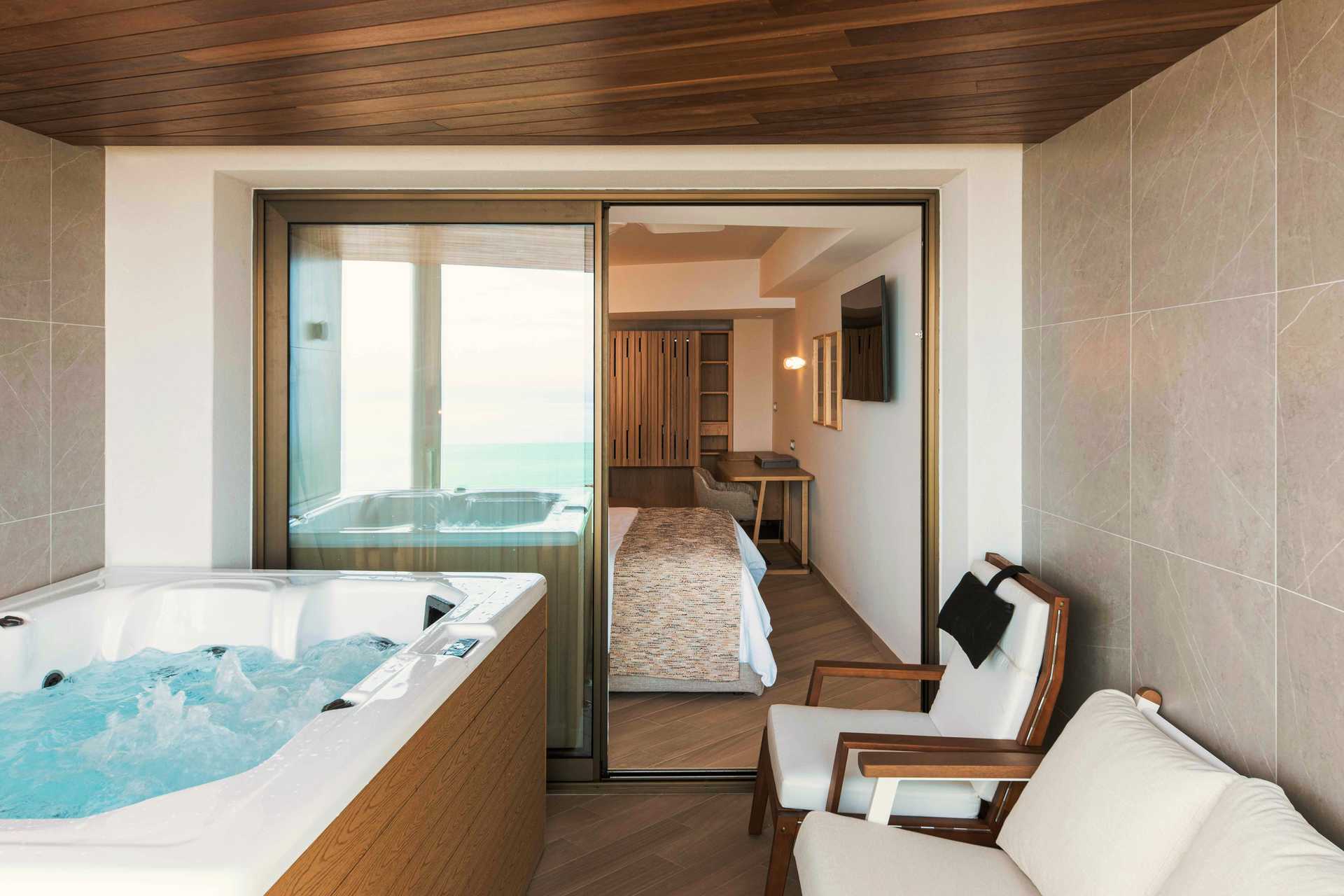 Executive-suiter med havudsigt og rummelig balkon på ca. 15 kvadratmeter med jacuzzi. En dobbeltseng. Sofagruppe. Gratis wifi, aircondition og deponering. Espressomaskine, kapsler medfølger. El-kedel og te og kaffe. Køleskab. Ved ankomsten venter en flaske vin og frisk frugt i suiten. Tv med internationale kanaler. Strygejern og strygebræt. Badekåber og tøfler. Hårtørrer. Badeværelse med bruser og toilet. Rengøring 7 gange om ugen.