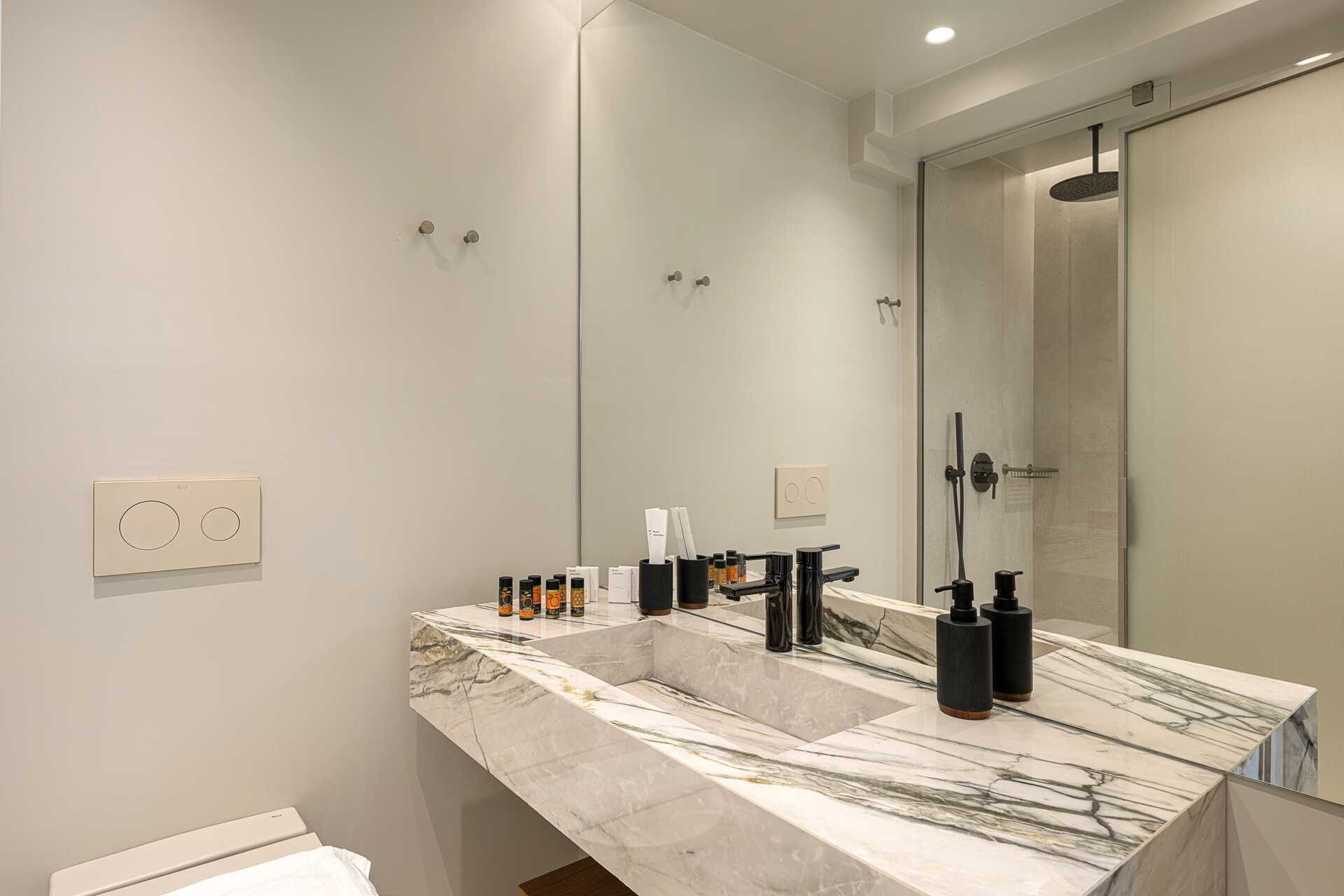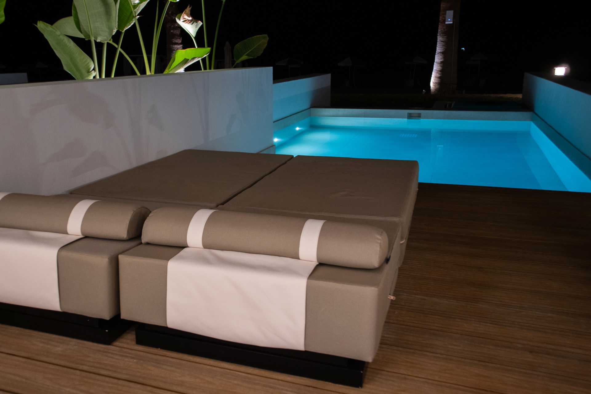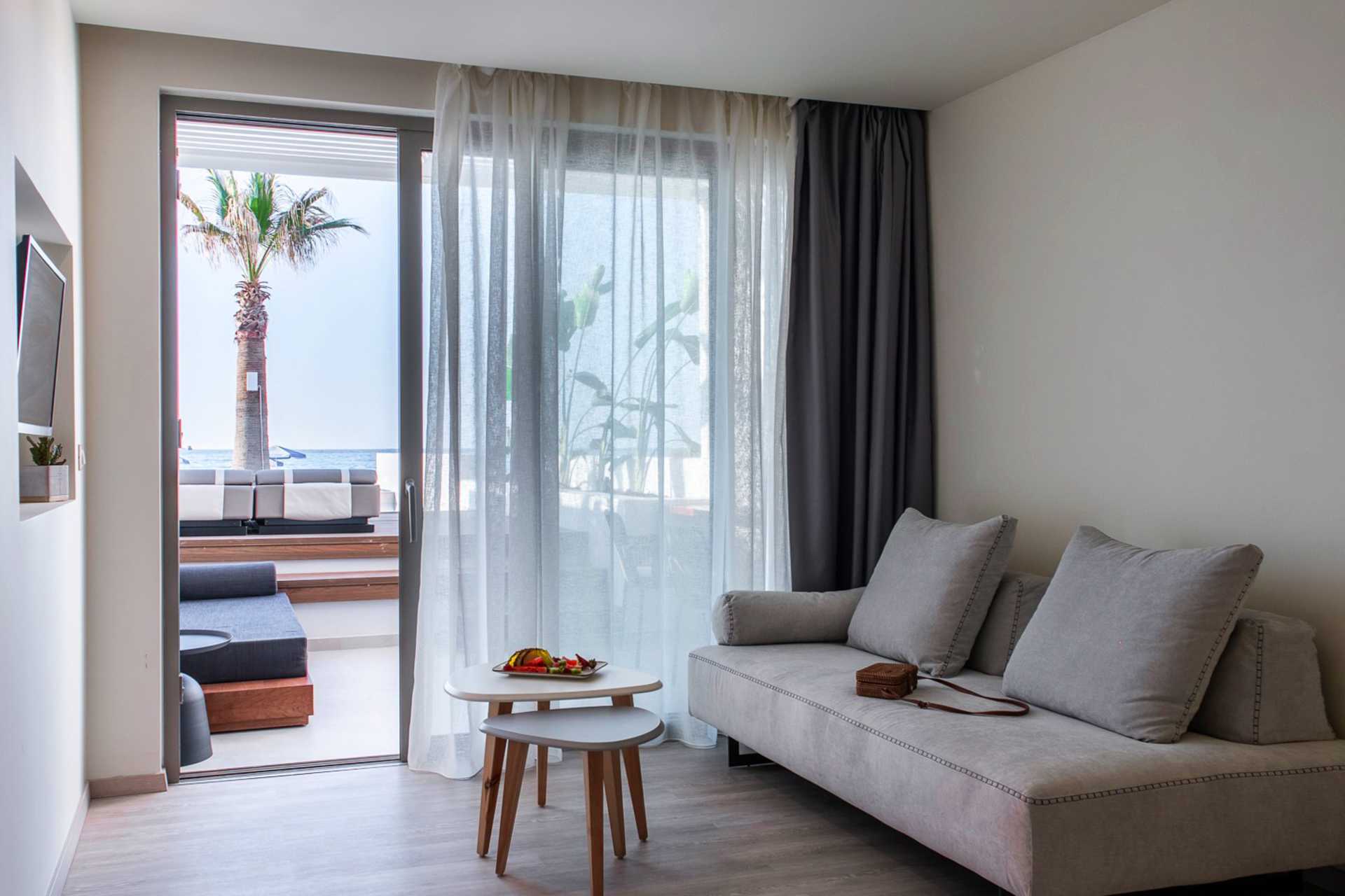 1-værelses lejlighed med udeplads, privat pool og havudsigt. Der er to solstole på udepladsen. Soveværelse kombineret med opholdsrum med minikøkken. En dobbeltseng. Minikøkken med kogeplader, køleskab, el-kedel og enkelt køkkenudstyr. Gratis wifi, aircondition og deponering. Tv med internationale kanaler. Hårtørrer. Badeværelse med bruser og toilet. Rengøring 6 gange om ugen. Børn under to år tæller med i det maksimale antal personer på værelset.