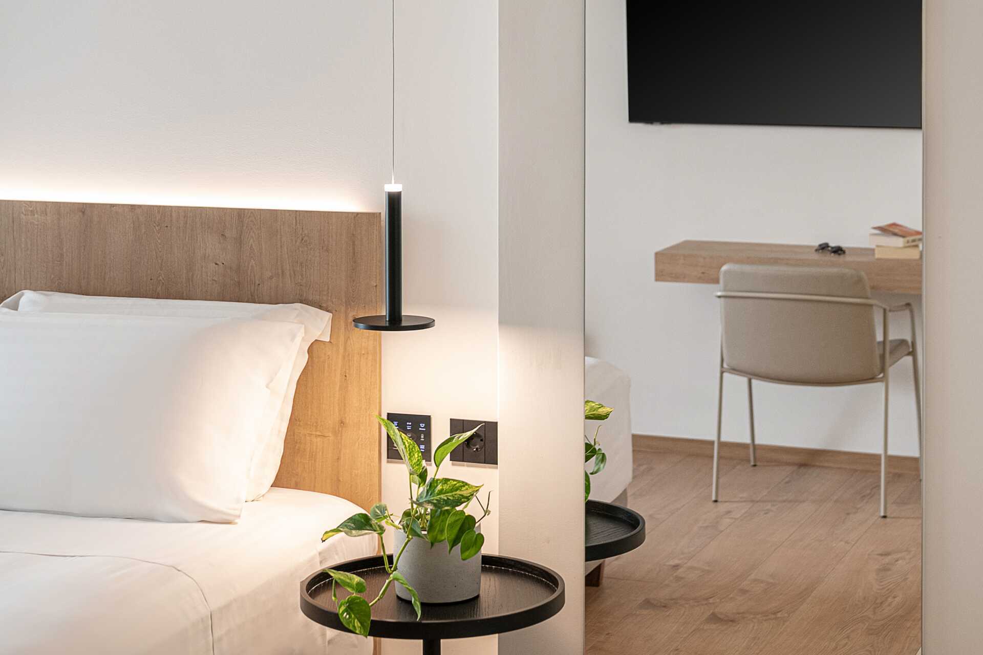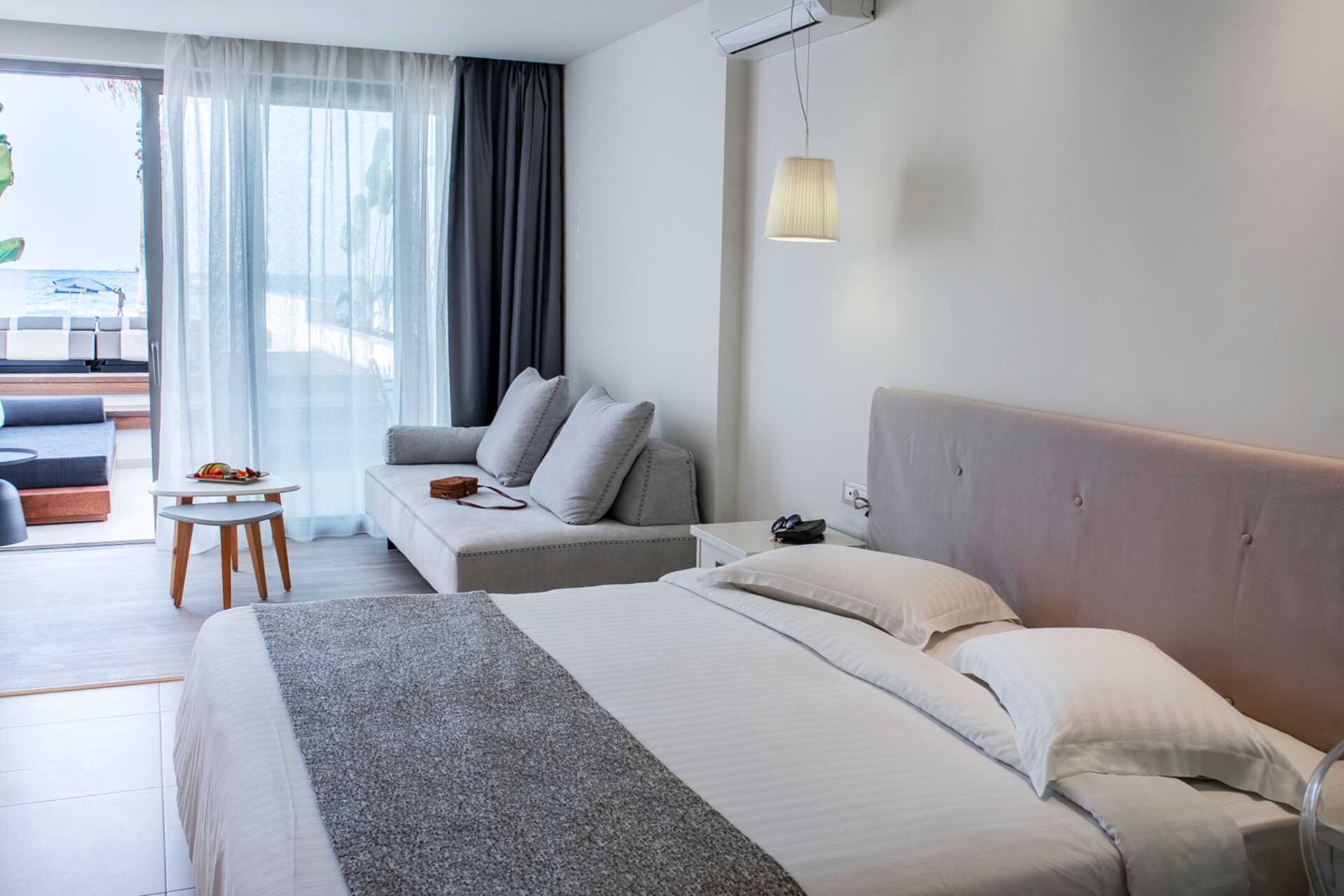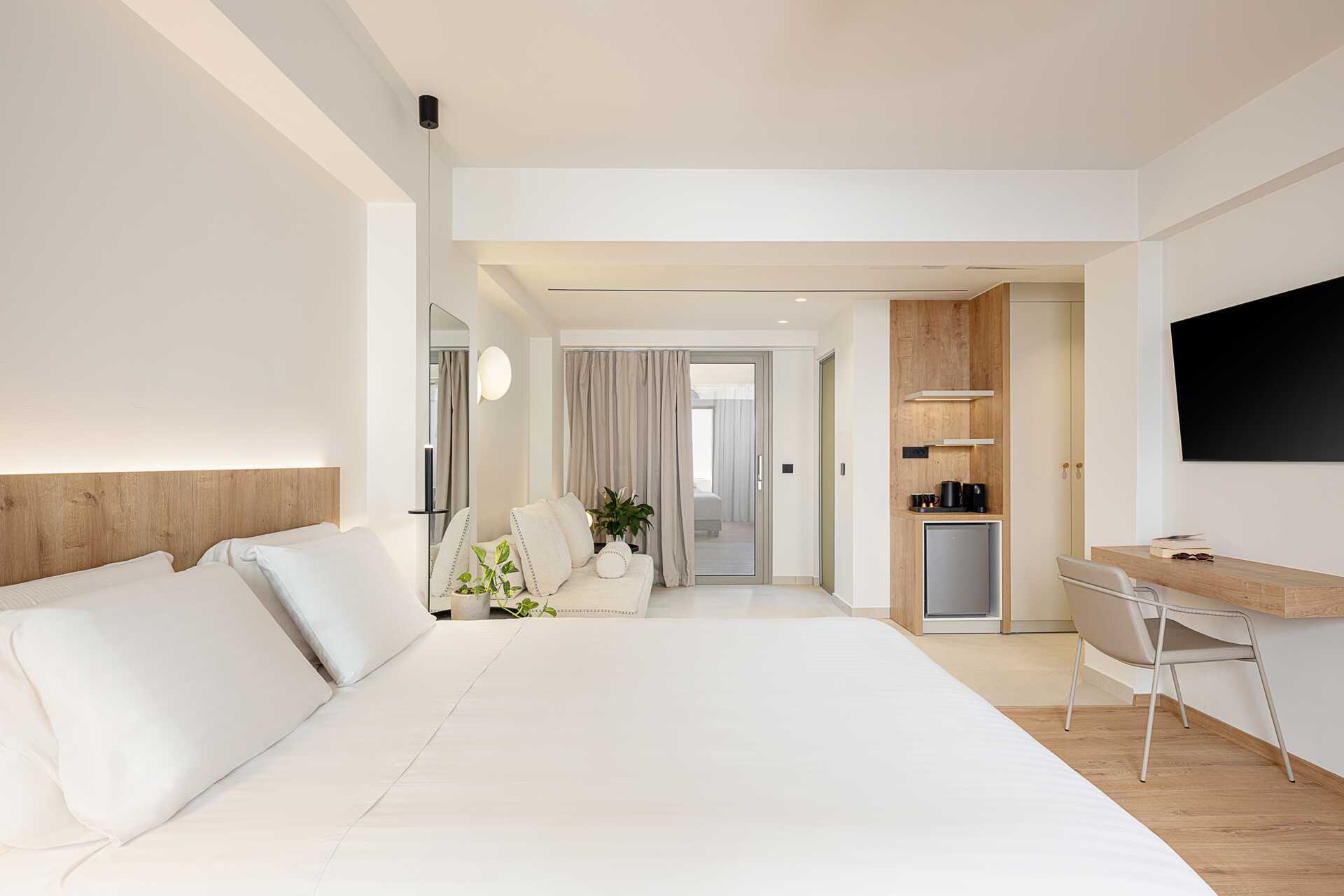1-værelses lejlighed med balkon eller terrasse, nogle med havudsigt. Myggenet i balkon/terrassedøren. Soveværelse kombineret med opholdsrum med minikøkken. En dobbeltseng. Minikøkken med kogeplader, køleskab, el-kedel og enkelt køkkenudstyr. Gratis wifi, aircondition og deponering. Tv med internationale kanaler. Hårtørrer. Badeværelse med bruser og toilet. Rengøring 6 gange om ugen. Børn under to år tæller med i det maksimale antal personer på værelset.