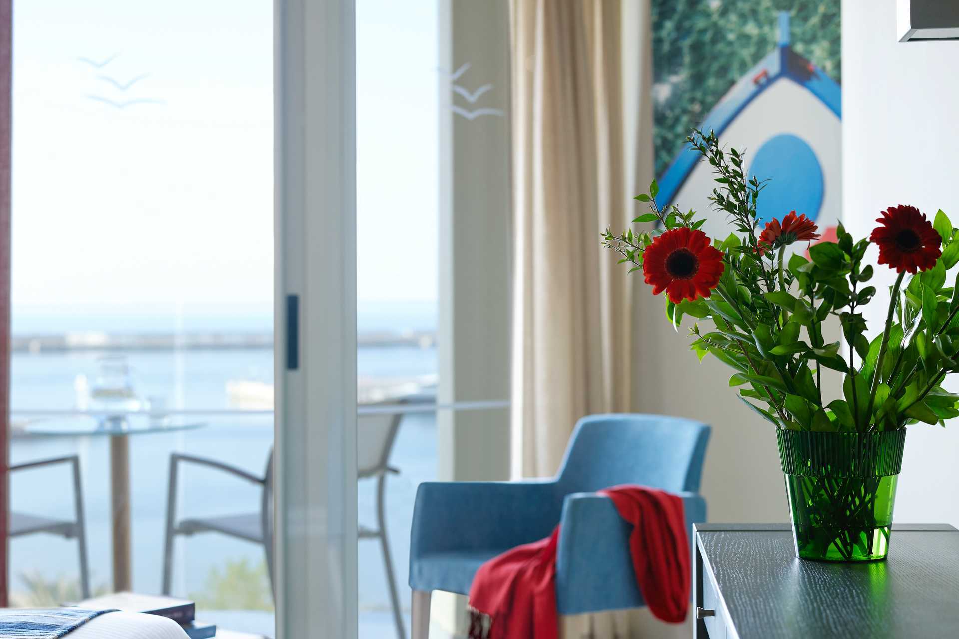 Junior-suite med balkon og havudsigt. To enkeltsenge. Mulighed for ekstra opredning i sovesofa. Gratis wifi, aircondition og deponering. Minibar. El-kedel og kaffe/te. Espressomaskine. Ved ankomst vil der være vin, vand og frugt på værelset. Tv med internationale kanaler. Badekåber og tøfler. Hårtørrer. Badeværelse med bruser og toilet. Rengøring 7 gange om ugen.