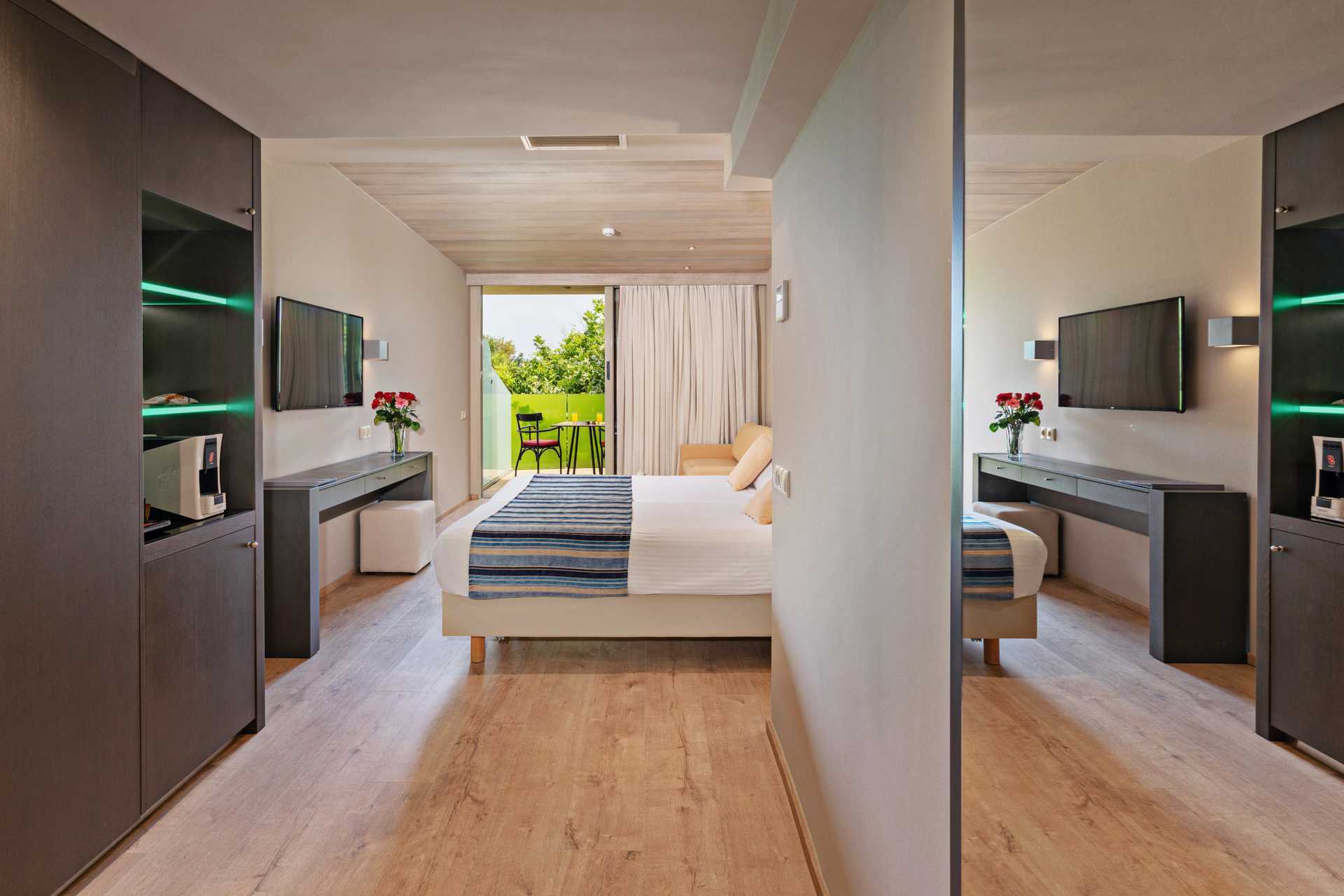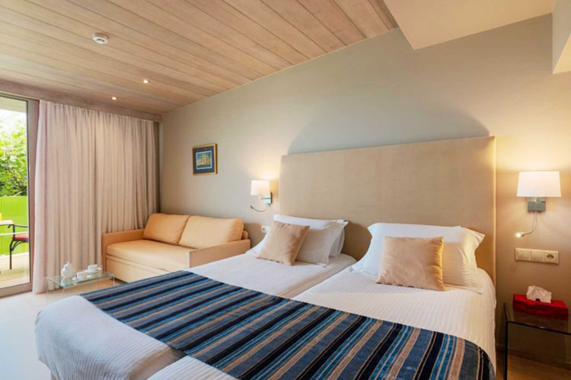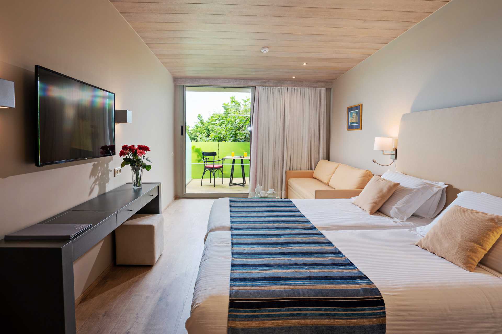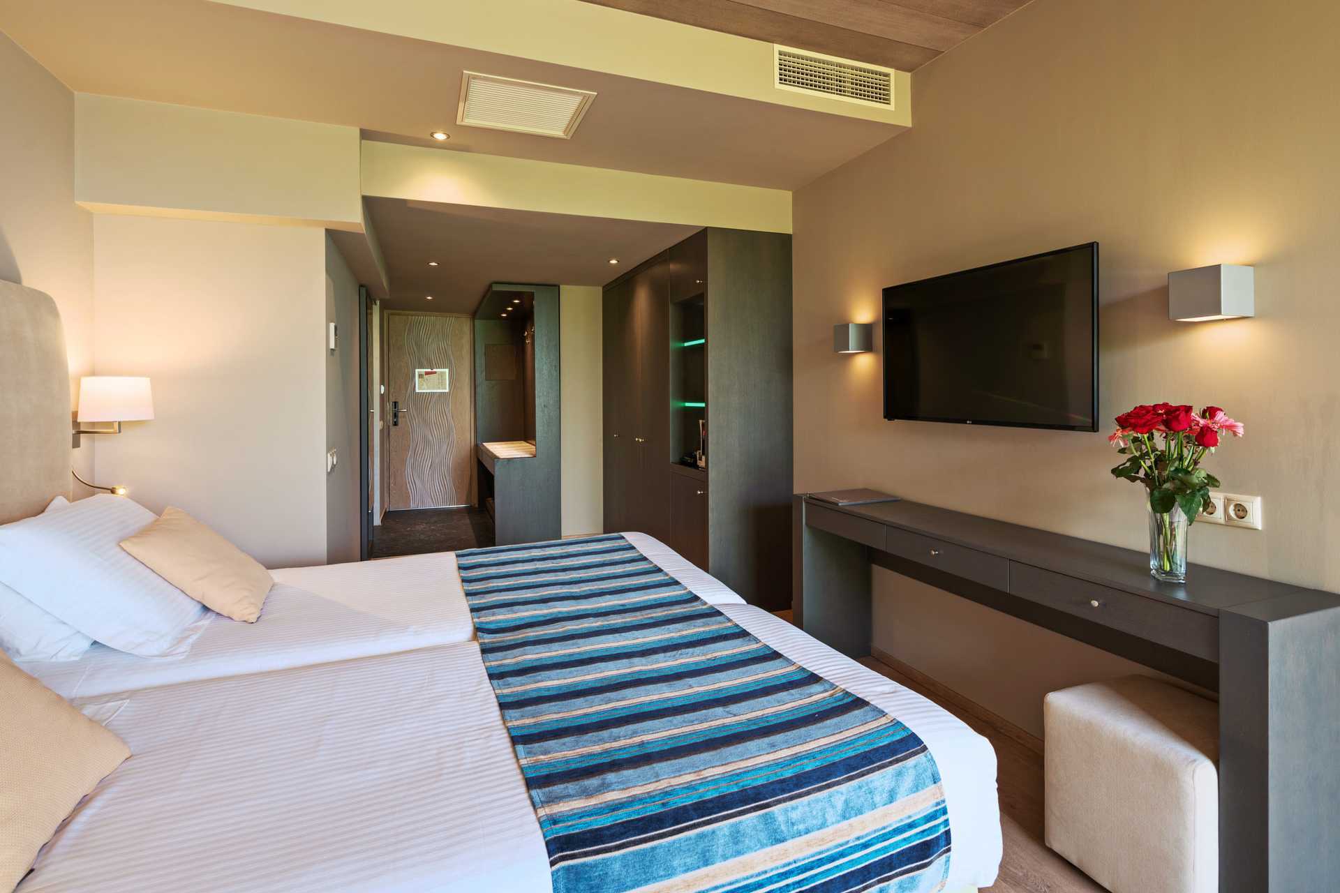 Dobbeltværelser med balkon, nogle med havudsigt. To enkeltsenge. Mulighed for ekstra opredning i sovesofa. Gratis wifi, aircondition og deponering. Minibar. El-kedel og kaffe/te. Tv med internationale kanaler. Badekåber og tøfler. Hårtørrer. Badeværelse med bruser og toilet. Rengøring 7 gange om ugen.