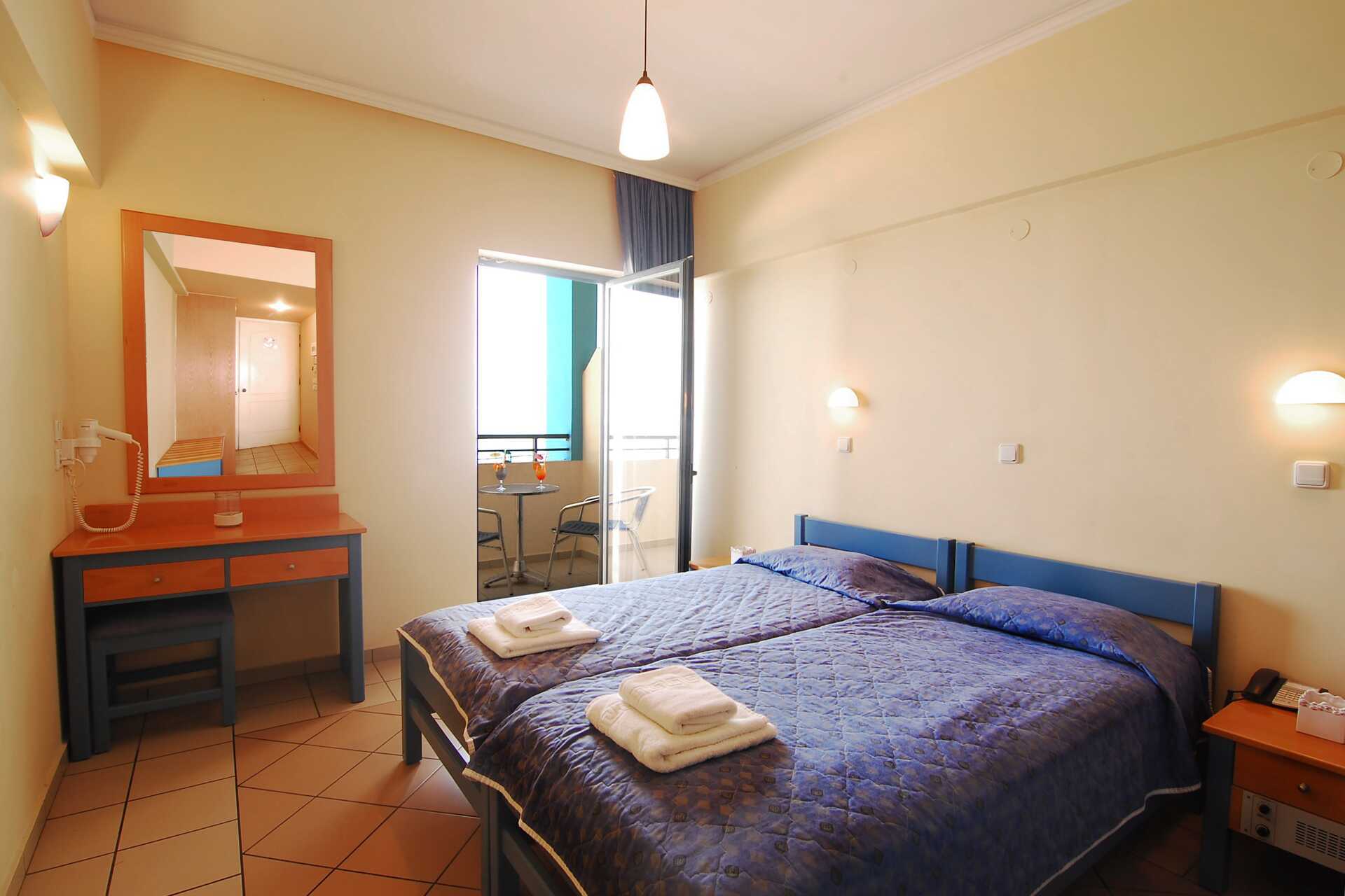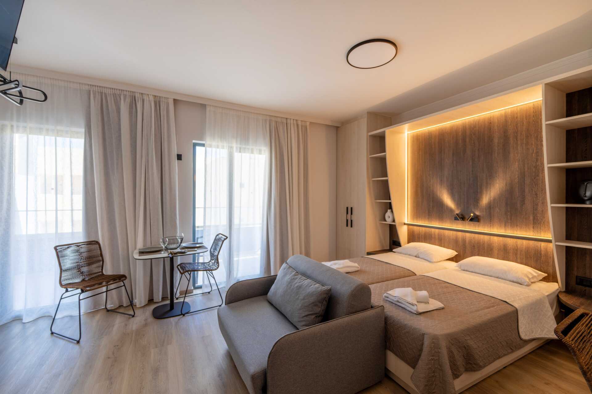 2-værelses lejlighed med balkon og havudsigt. Soveværelse og kombineret opholdsrum med minikøkken. En dobbeltseng. Mulighed for ekstra opredning i en enkeltseng eller på en sovesofa til to personer. Minikøkken med kogeplader, køleskab, brødrister, kaffemaskine/el-kedel og enkelt køkkenudstyr. Gratis wifi og aircondition. Deponering mod betaling. Tv med lokale kanaler. Hårtørrer. Badeværelse med bruser og toilet. Rengøring 6 gange om ugen. I værelser til op til tre personer tæller børn under to år som personer i en ekstra seng.