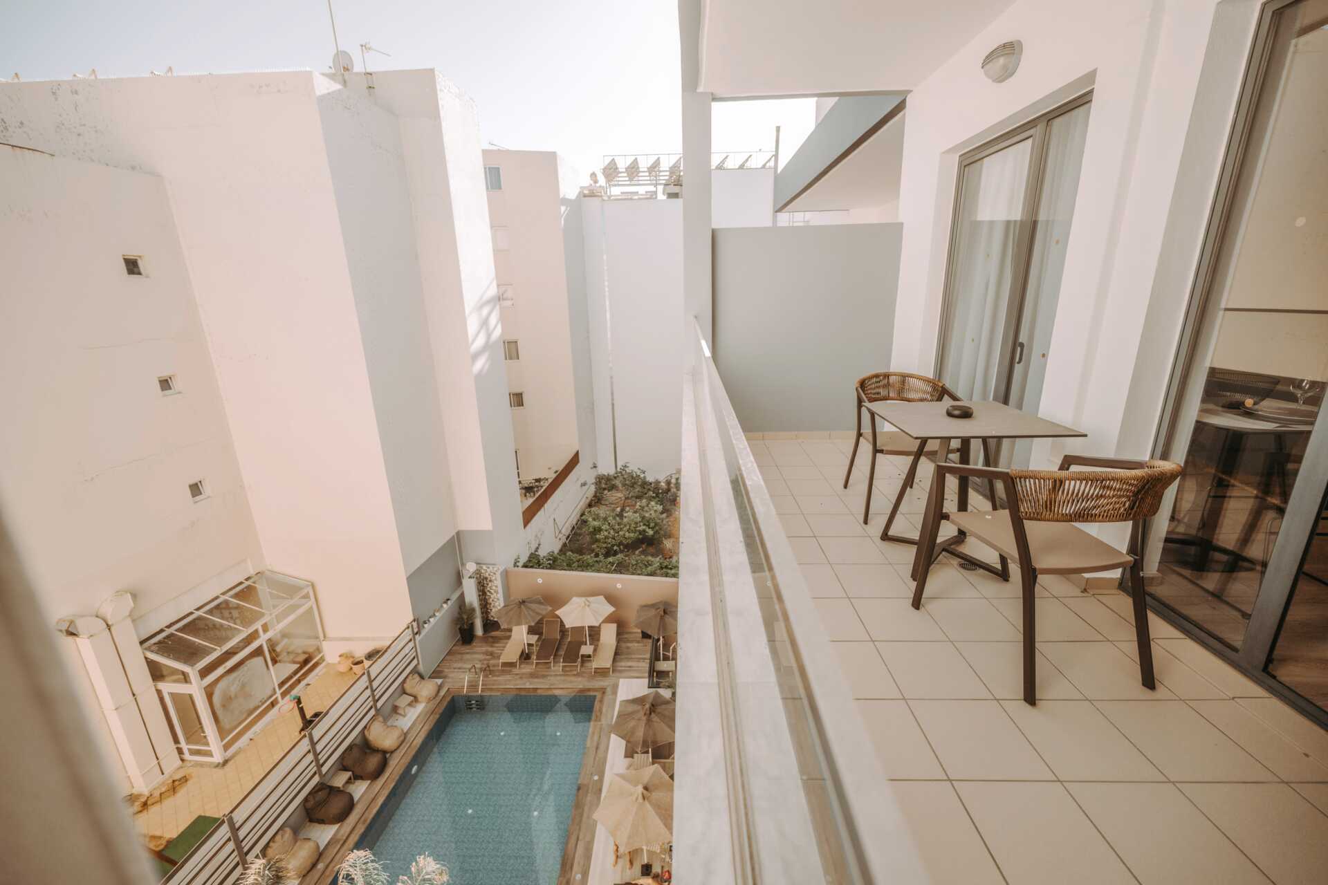 Lejlighed med et soveværelse og balkon med havudsigt eller pooludsigt eller stor balkon eller terrasse med pooludsigt. Kombineret soveværelse og minikøkken. To enkeltsenge. Mulighed for ekstra opredning i enkeltseng. Minikøkken med kogeplader, køleskab, brødrister, kaffemaskine eller el-kedel og enkelt køkkenudstyr. Gratis wifi og aircondition. Deponering mod betaling. Tv med lokale kanaler. Hårtørrer. Badeværelse med bruser og toilet. Rengøring 6 gange om ugen.