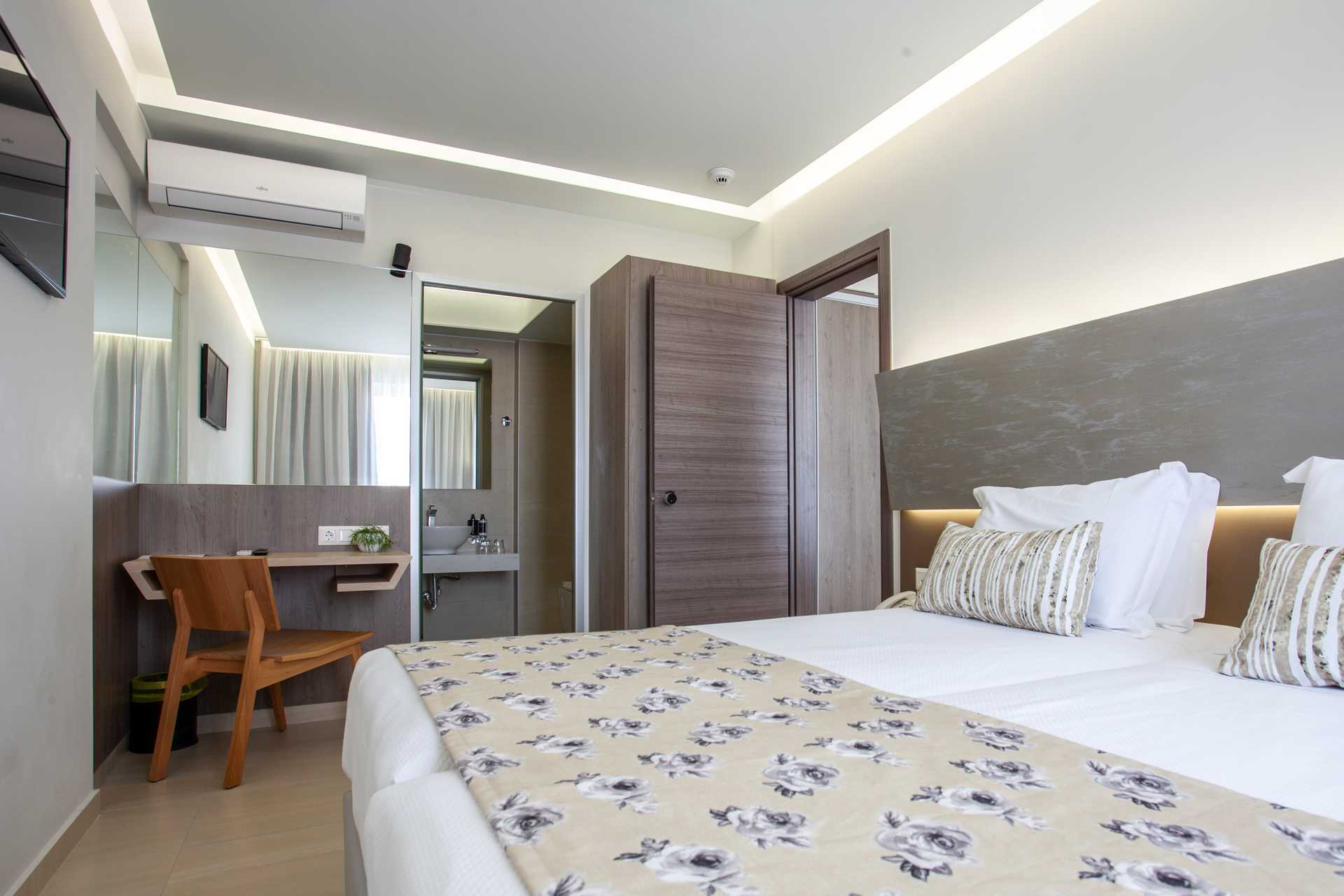 Standardværelse med balkon. To enkeltsenge. Mulighed for ekstra opredning. Gratis wifi, aircondition og deponering. Køleskab. El-kedel og kaffe/te. Tv med internationale kanaler. Hårtørrer. Tøfler. Badeværelse med bruser og toilet. Rengøring 7 gange om ugen. Børn under to år tæller med i det maksimale antal personer på værelset.