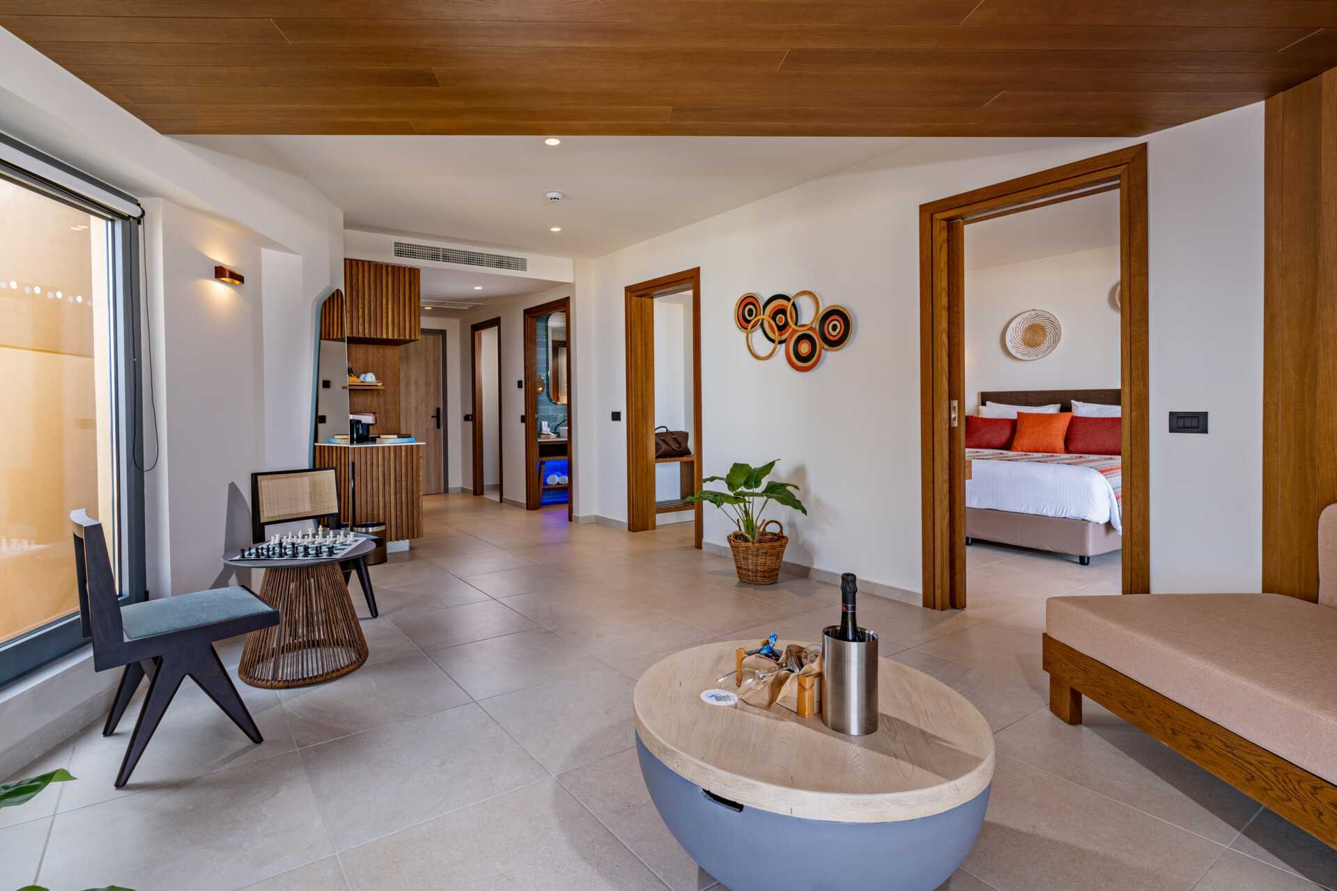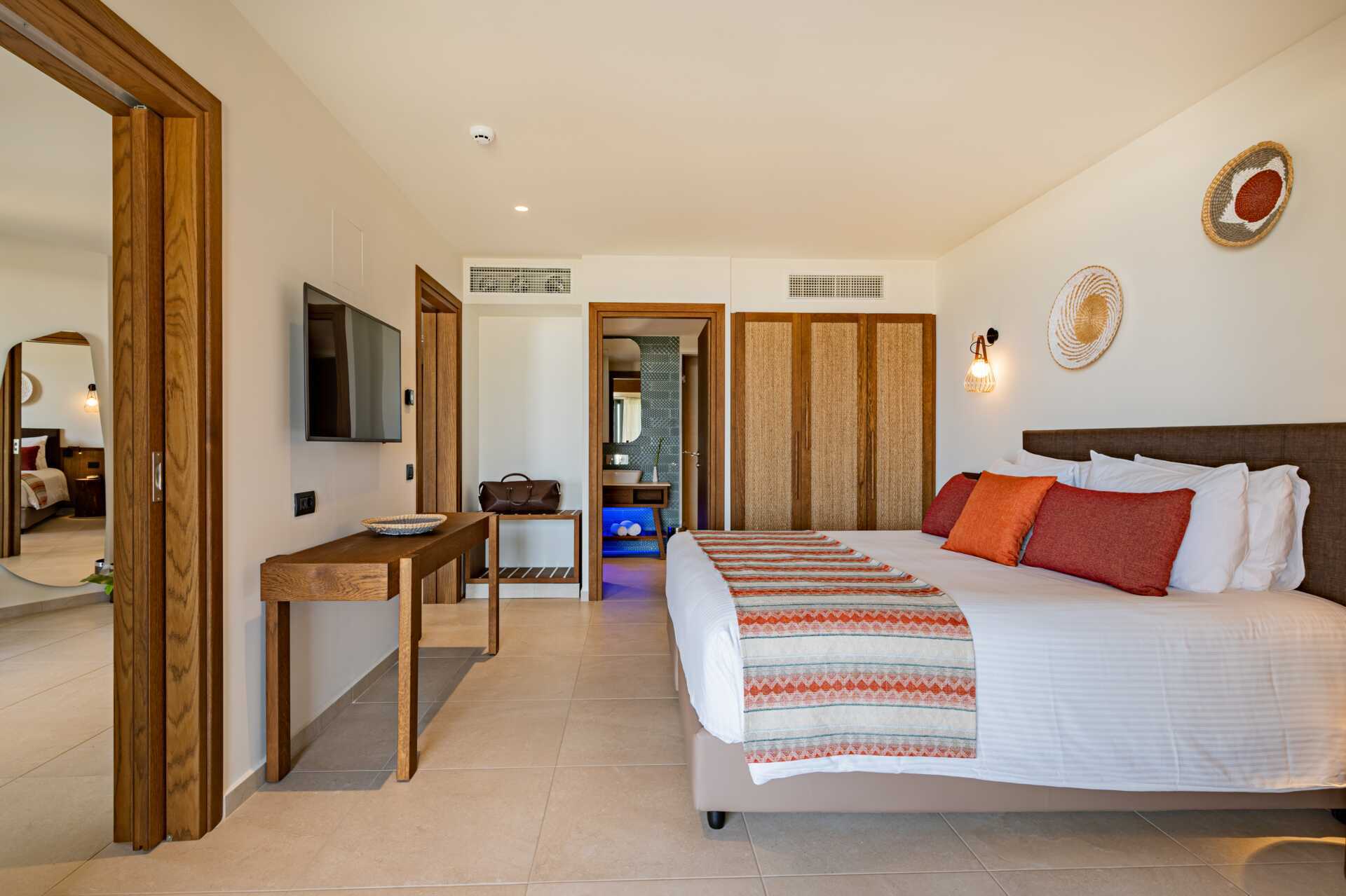 Suite med to balkoner. Suiten består af et soveværelse og et opholdsrum. En dobbeltseng. Mulighed for ekstra opredning i sovesofa. Pudemenu. Gratis wifi, aircondition og deponering. Minibar - fyldes en gang pr uge. Nespresso kaffemaskine - kapsler medfølger. El-kedel og kaffe/te. Mousserende vin, en flaske vand og frugt ved ankomst. Tv med internationale kanaler. Badekåber og tøfler. Strygejern og strygebræt. Pool- og strandhåndklæder Hårtørrer. Badeværelse med bruser eller badekar samt toilet. Rengøring 7 gange om ugen.