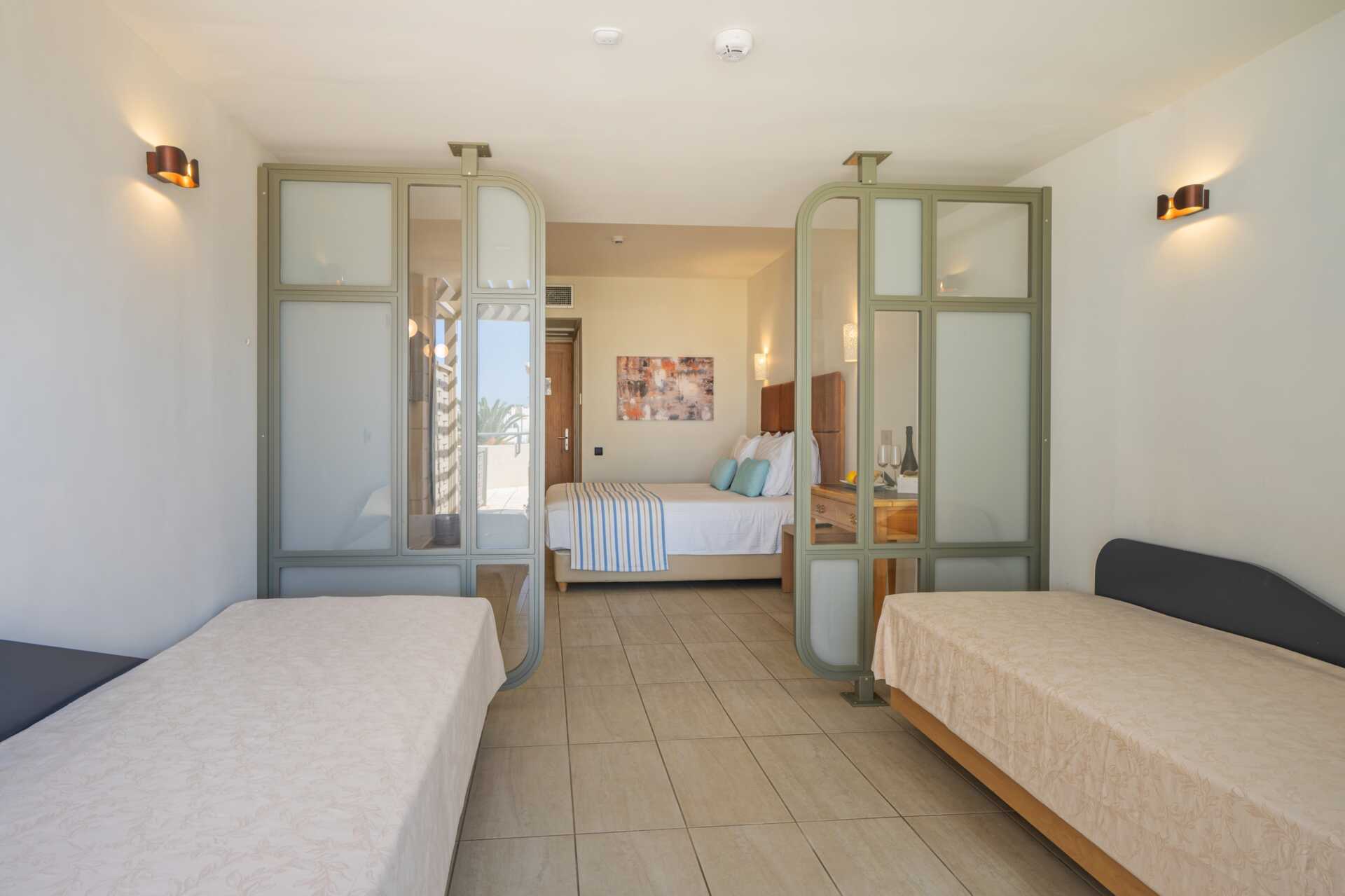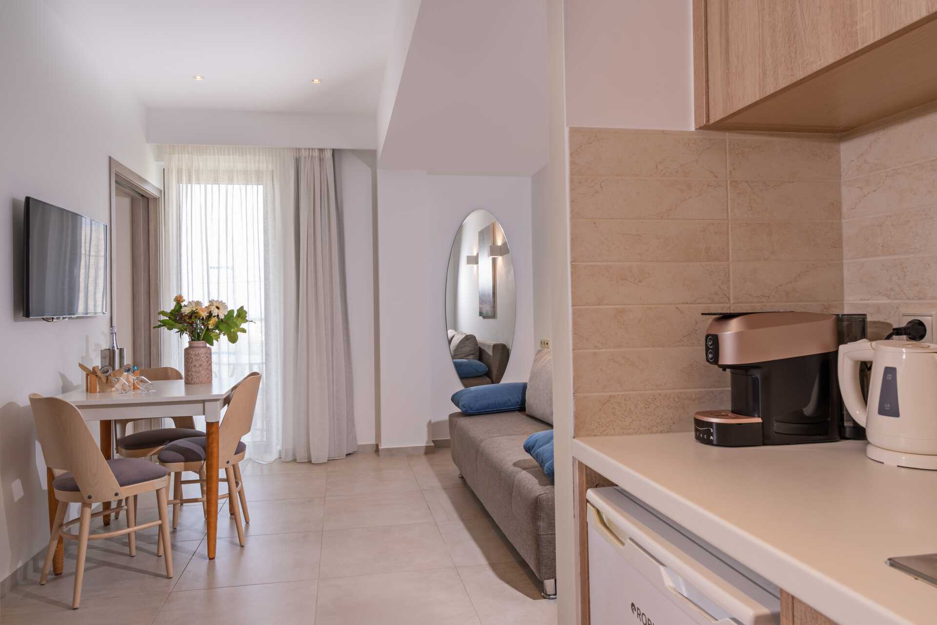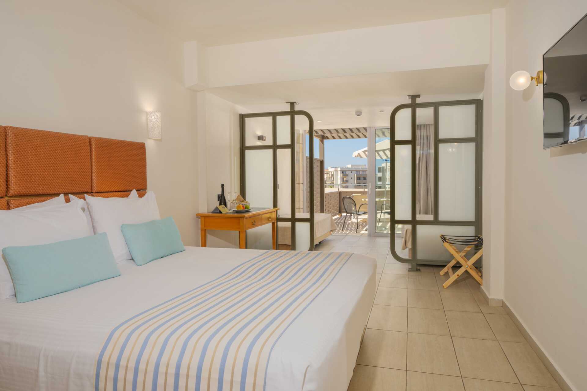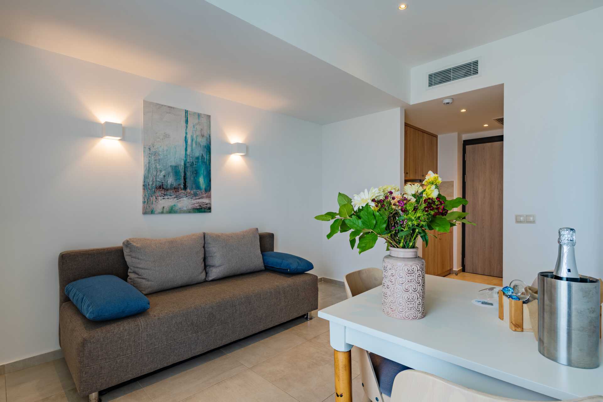 2-værelses suiter med balkon eller terrasse. Suiten består af et soveværelse og et opholdsrum. En dobbeltseng eller to enkeltsenge. Mulighed for ekstra opredninger i sovesofa. Faciliteter som dyner, pudemenu og myggenet. Ved ankomsten venter der blomster, en flaske vand, en flaske mousserende vin og frugt på værelset. Gratis wifi og aircondition. Deponering mod betaling. Køleskab, minibar mod betaling. El-kedel og kaffe/te. Espressomaskine. Tv med internationale kanaler. Poolhåndklæder på værelset ved ankomst. Badekåber og tøfler. Hårtørrer. Badeværelse med bruser og toilet. Rengøring 7 gange om ugen. Børn under to år tæller med i det maksimale antal personer på værelset.