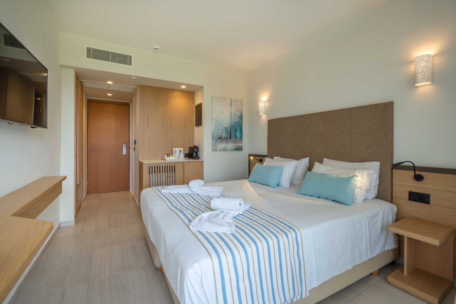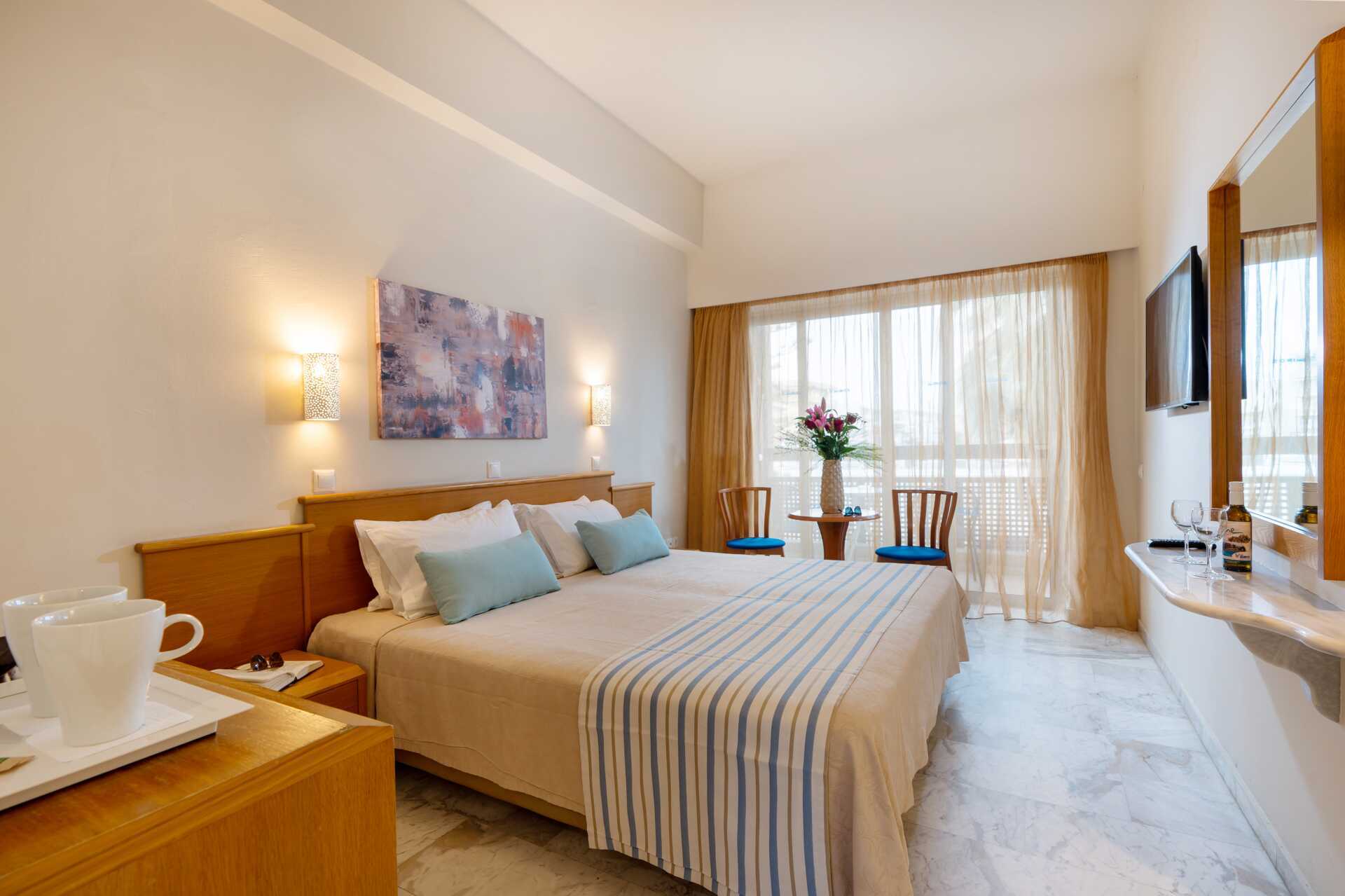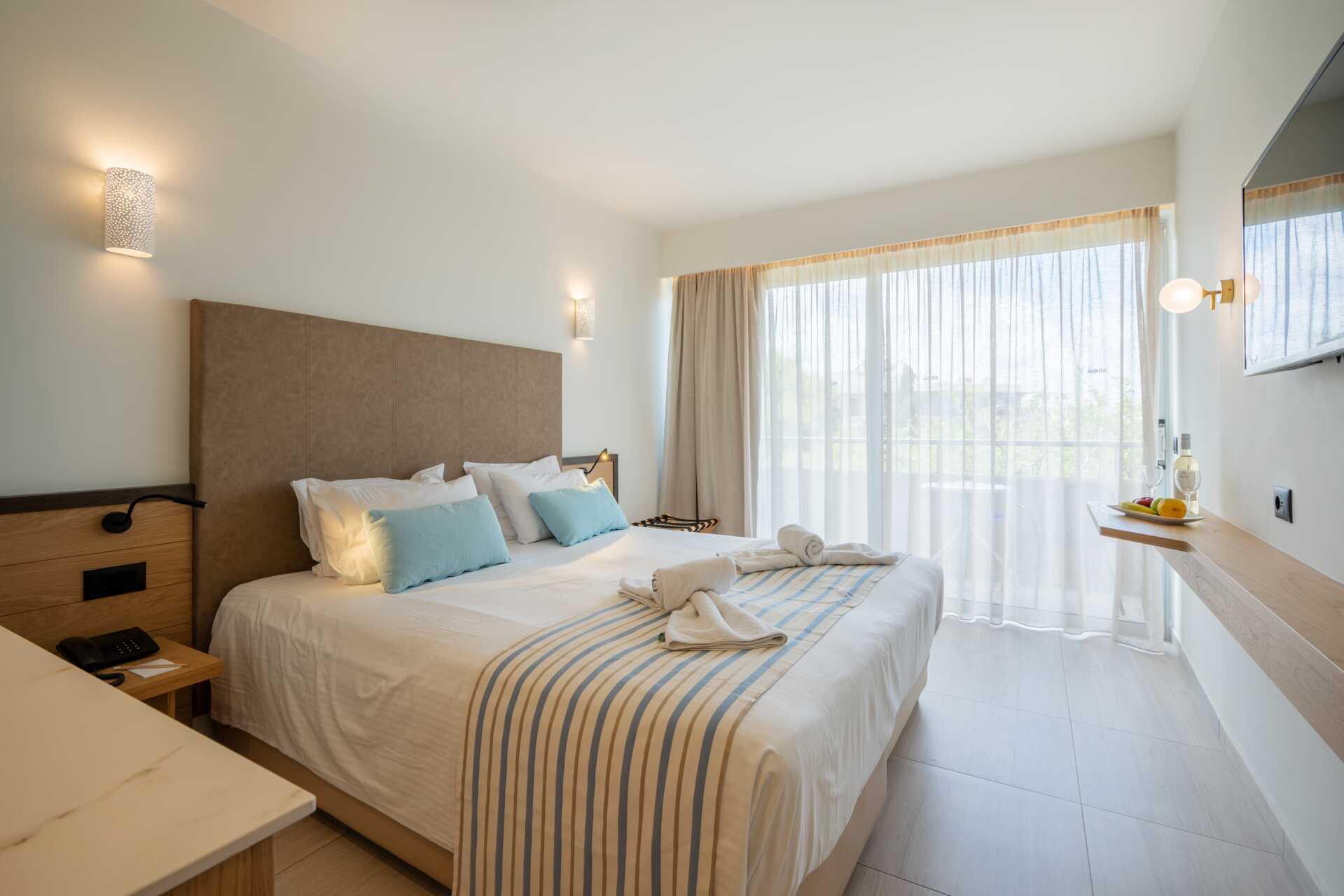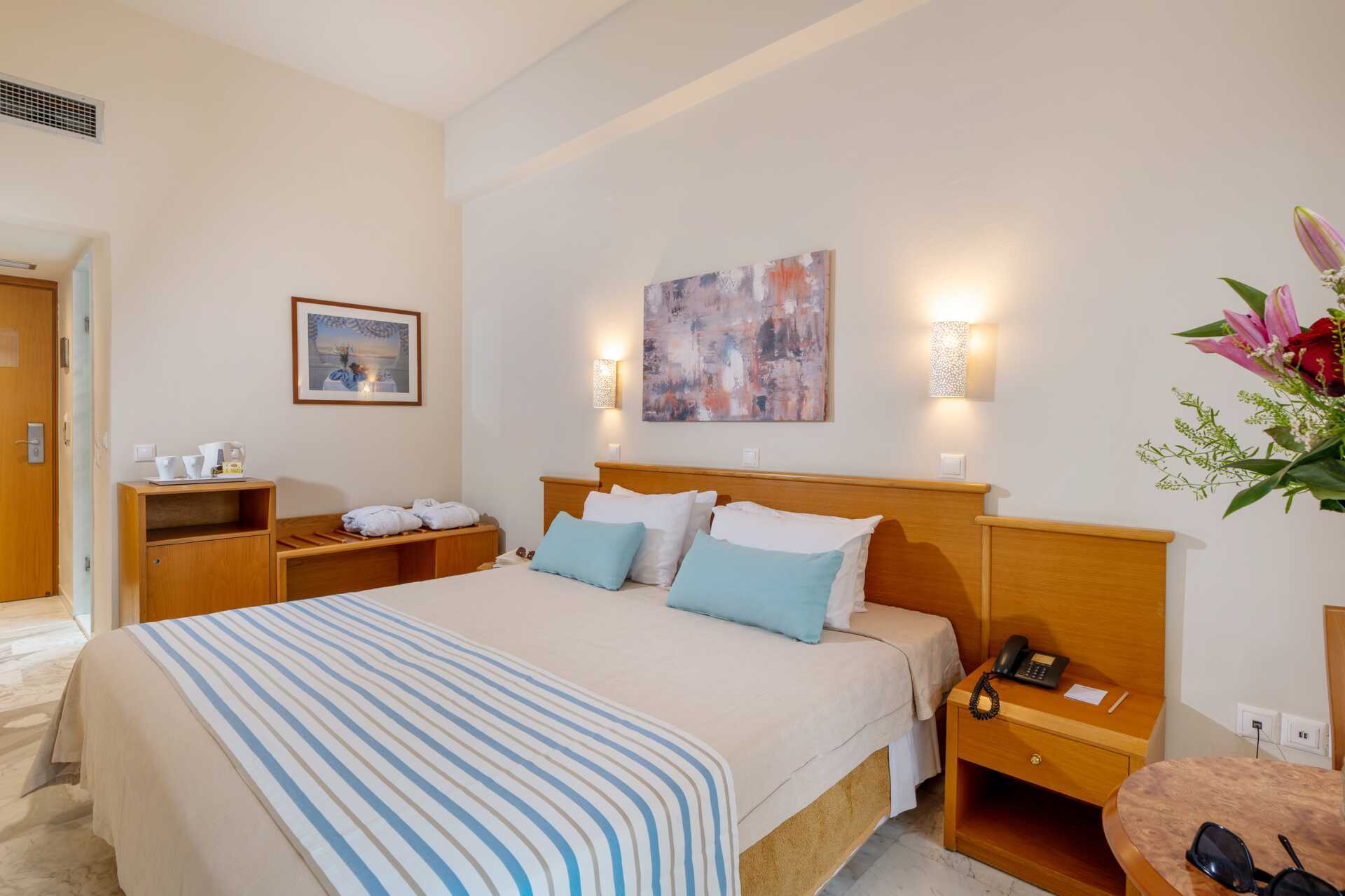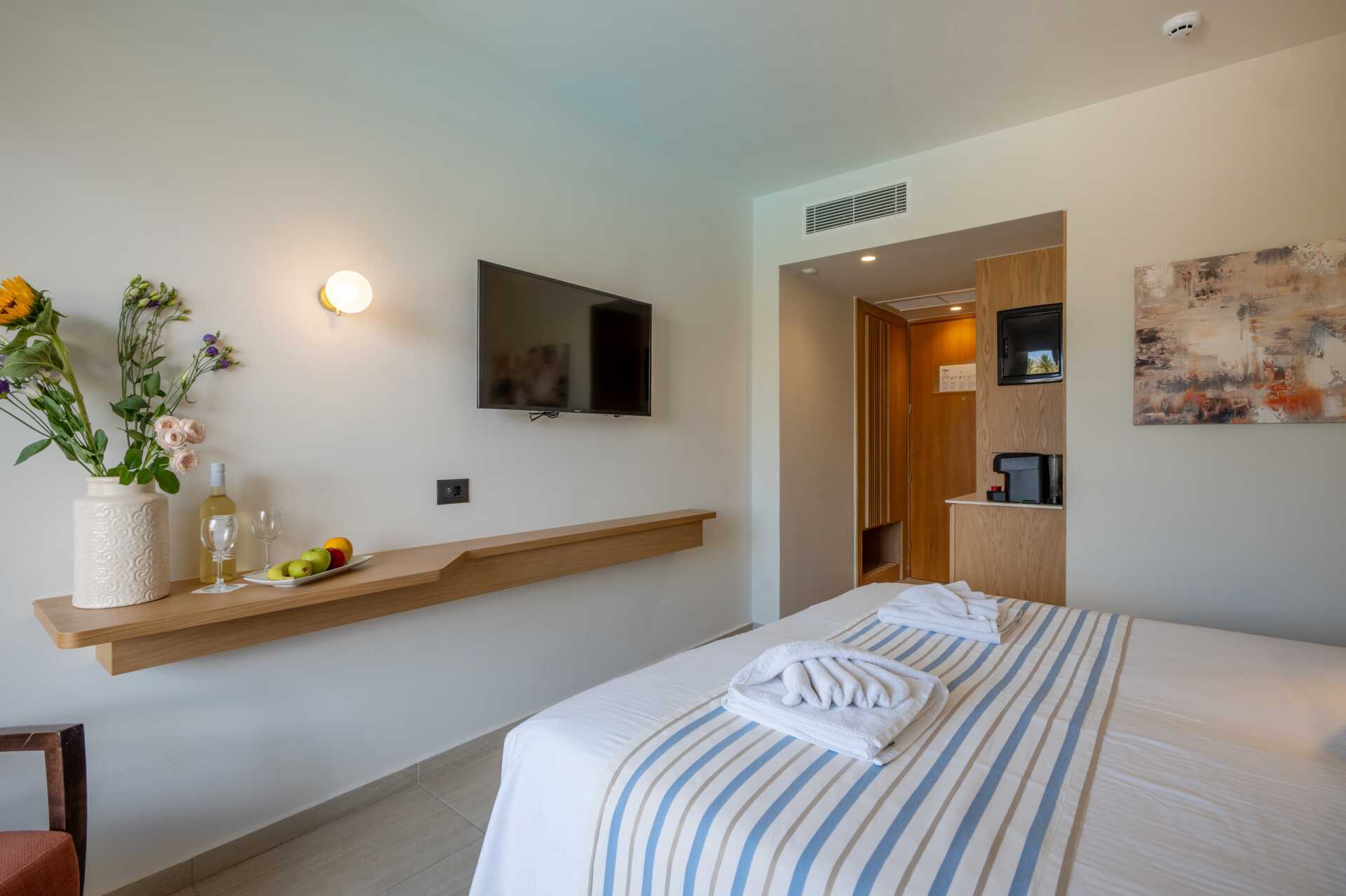 Dobbeltværelser med balkon, nogle med pooludsigt. En dobbeltseng eller to enkeltsenge. Mulighed for ekstra opredning i sovesofa eller i enkeltseng. Gratis wifi og aircondition. Deponering mod betaling. Køleskab - minibar mod betaling. El-kedel og kaffe/te. Ved ankomsten venter en flaske vand, en flaske vin og frisk frugt på værelset. Tv med internationale kanaler. Mulighed for at låne en tablet mod depositum. Badekåber og tøfler. Hårtørrer. Badeværelse med badekar eller bruser samt toilet. Rengøring 7 gange om ugen. Børn under to år tæller med i det maksimale antal personer på værelset. Der er myggenet i balkondøren.