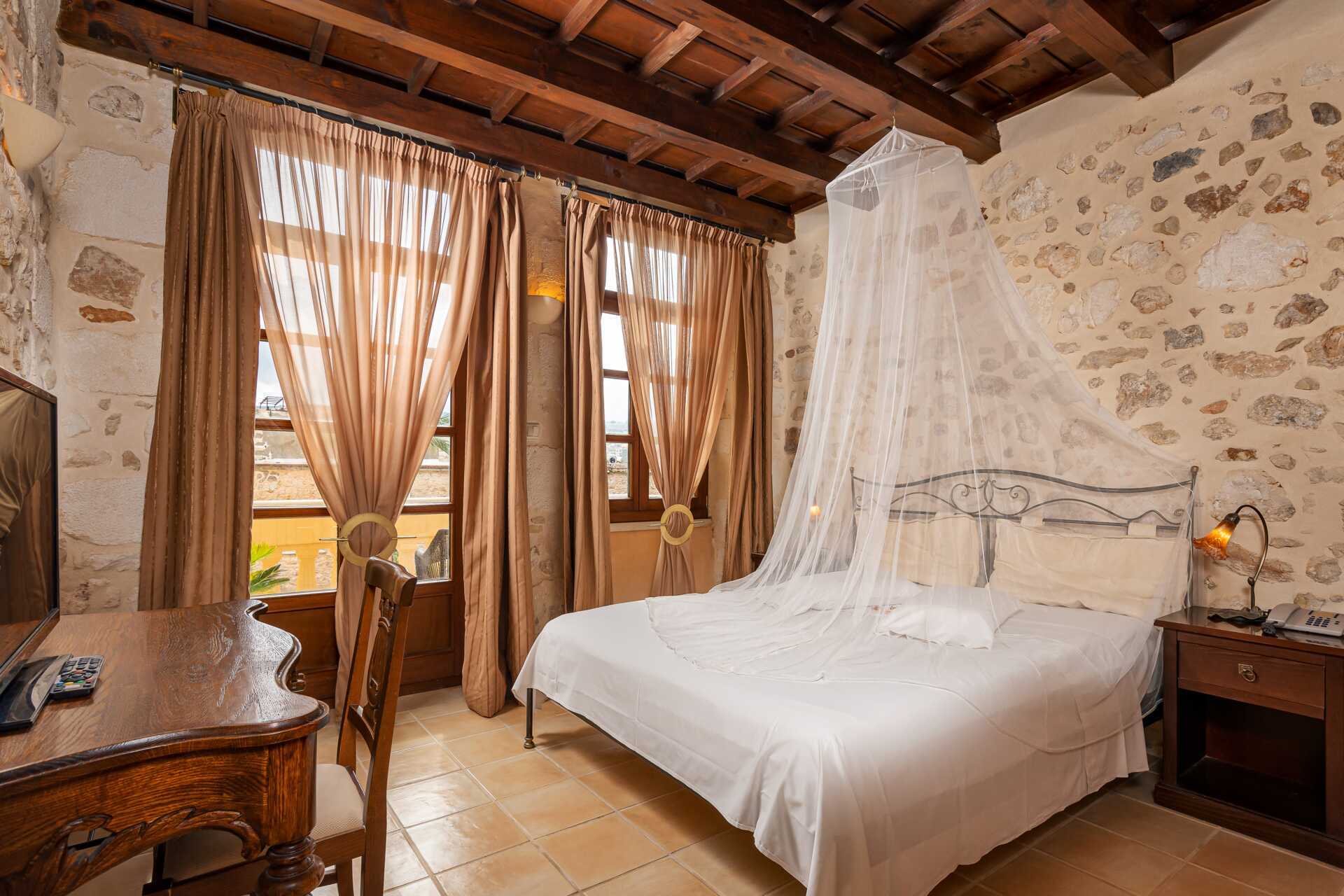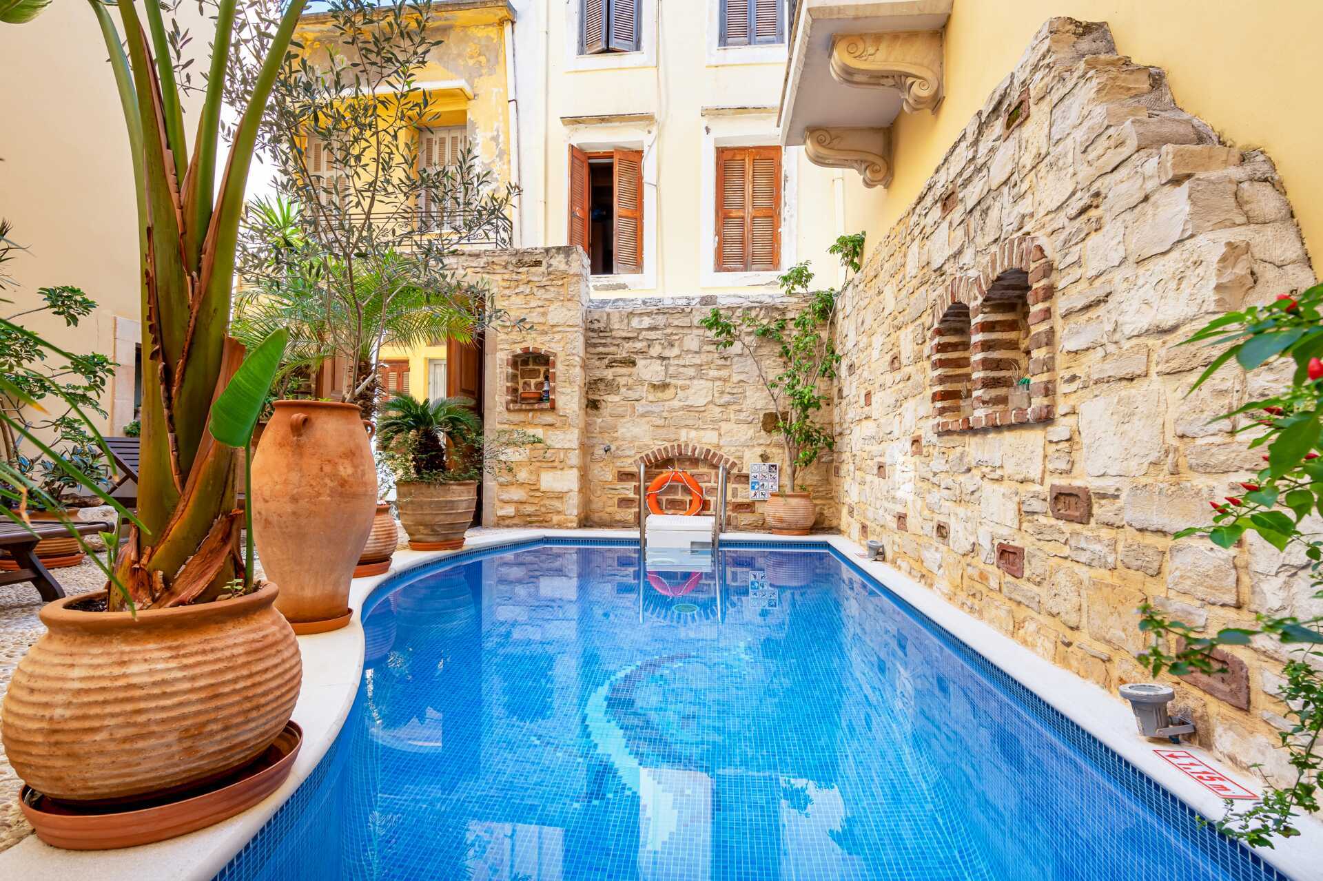 Det smukke hotel Palazzino di Corina har elegante buer og en velbevaret facade i venetiansk stil. Det har en lille pool og unikt indrettede værelser. Palazzino di Corina ligger i en af de charmerende gyder i Rethymnons gamle bydel og er det perfekte valg for dig, der ønsker at holde ferie i fred og ro, men i gåafstand fra alt. Aldersgrænsen for at bo på hotellet er 12 år.
