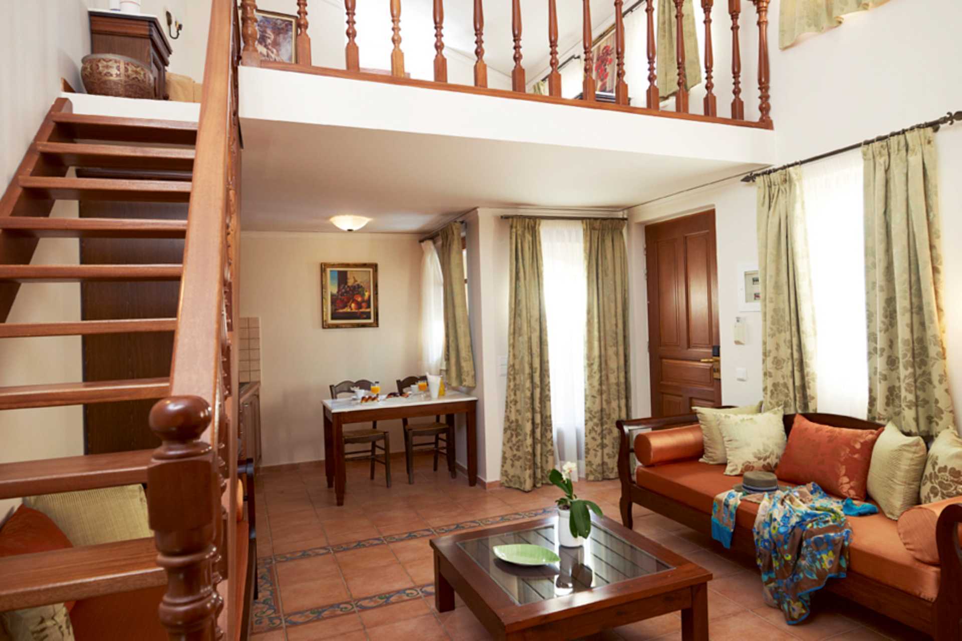 1-værelses lejlighederne i etage med terrasse eller balkon. I stueetagen er der en kombineret opholdsrum med minikøkken, tre sovesofaer og et badeværelse. Ovenpå er der en dobbeltseng. Åben planløsning mellem etagerne. Minikøkken med kogeplader, køleskab og enkelt køkkenudstyr. Wifi og aircondition er inkluderet. Deponering mod betaling. Tv med internationale kanaler på hvert værelse. Hårtørrer. Badeværelse med badekar og toilet. Rengøring 6 gange om ugen. Børn under to år tæller med i det maksimale antal personer i lejligheden.