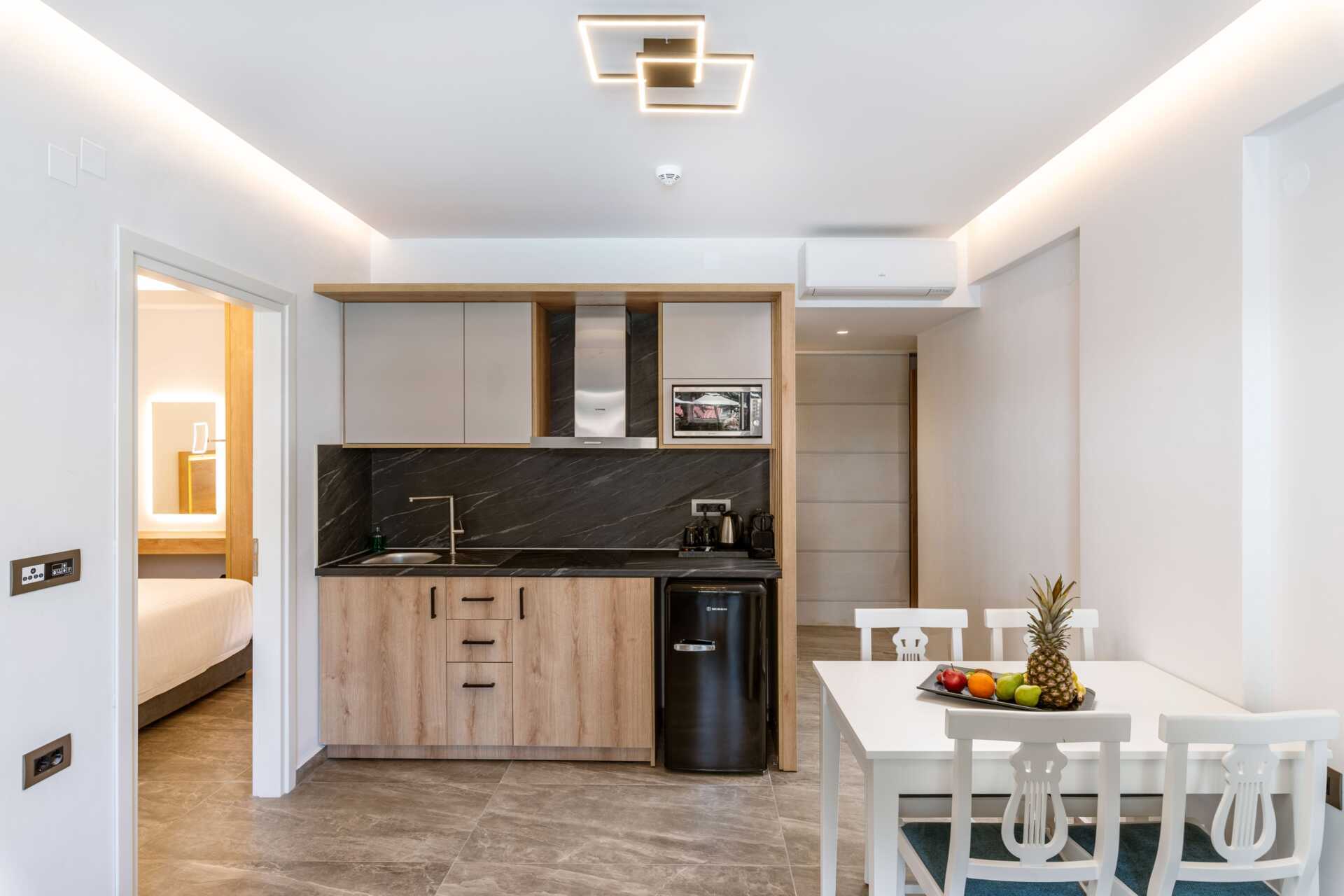 2-værelses lejligheder superior af varierende størrelse og udseende. Balkon eller terrasse med pooludsigt. Soveværelse og kombineret opholdsrum med minikøkken. En dobbeltseng. Mulighed for ekstra opredninger i to sovesofaer. Minikøkken med kogeplader, køleskab, el-kedel, brødrister, mikroovn og godt køkkenudstyr. Vaskemaskine. Strygejern og strygebræt. Gratis wifi, aircondition og deponering. Tv med internationale kanaler. Hårtørrer. Badeværelse med bruser og toilet. Rengøring 6 gange om ugen.