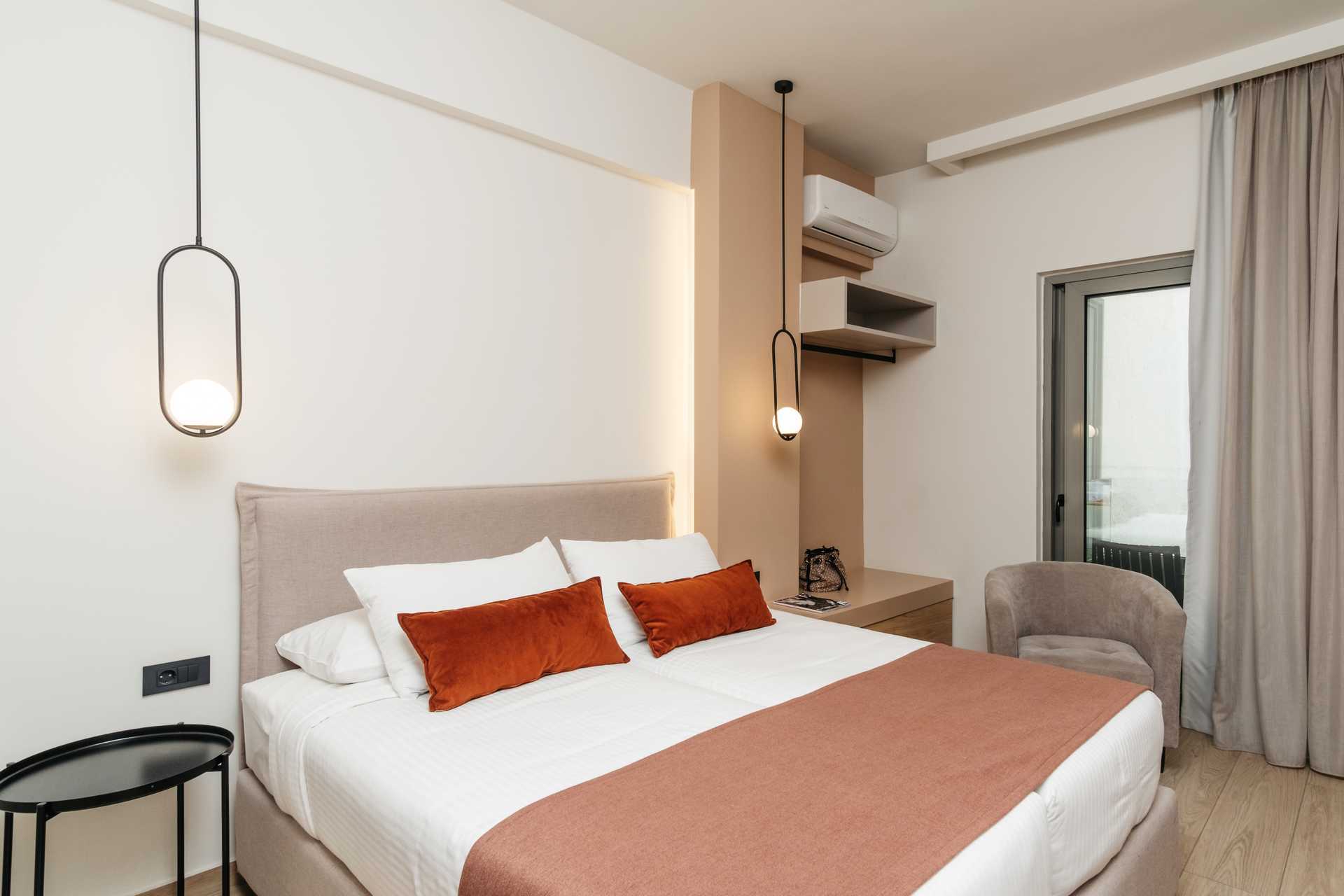 Superior-suiter med balkon. En dobbeltseng eller to enkeltsenge. Mulighed for ekstra opredning i sovesofa. Gratis wifi, aircondition og deponering. Køleskab. El-kedel. Kaffemaskine - kapsler inkluderet og fyldes op dagligt. Tv med internationale kanaler. Hårtørrer. Badeværelse med bruser og toilet. Rengøring 7 gange om ugen.