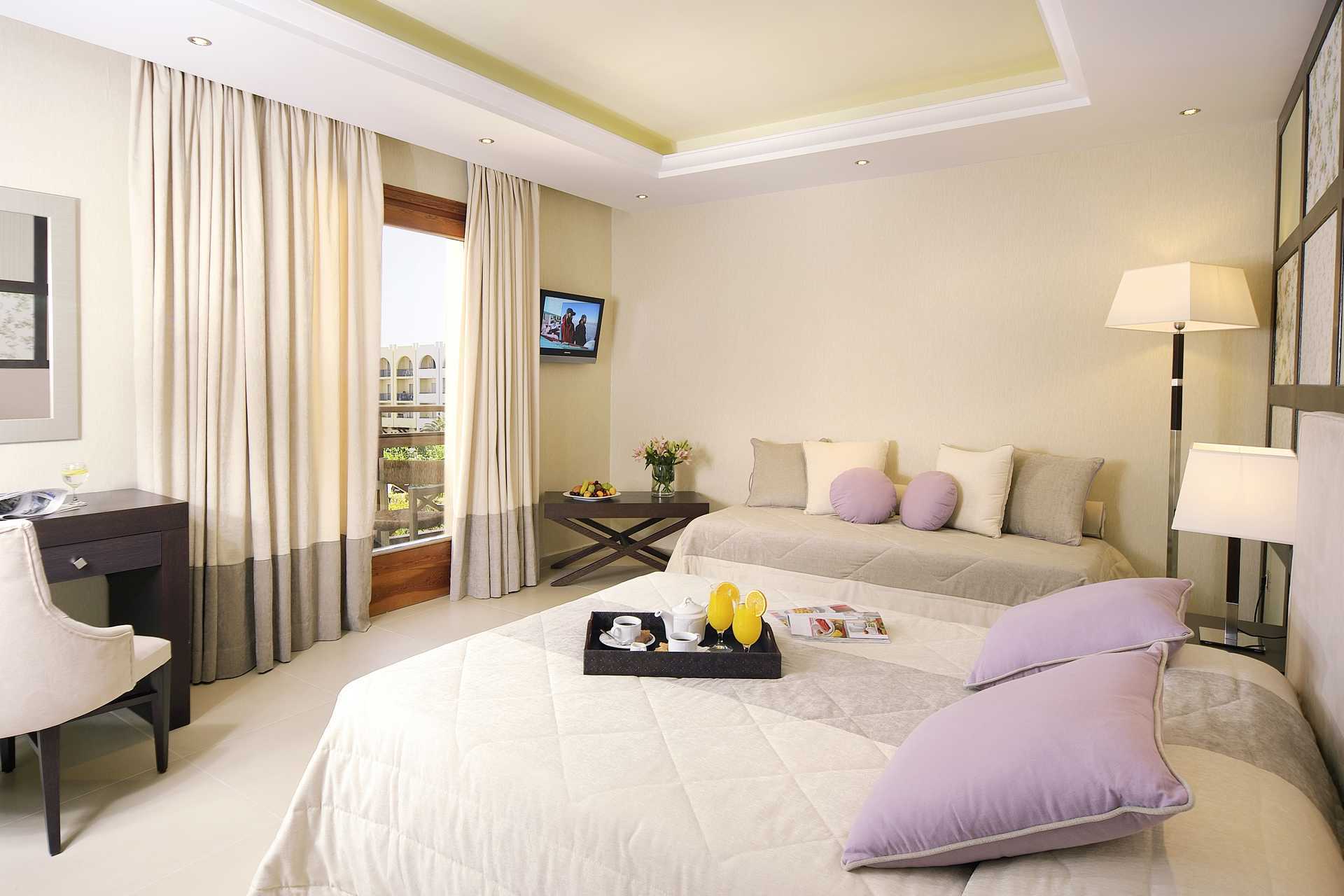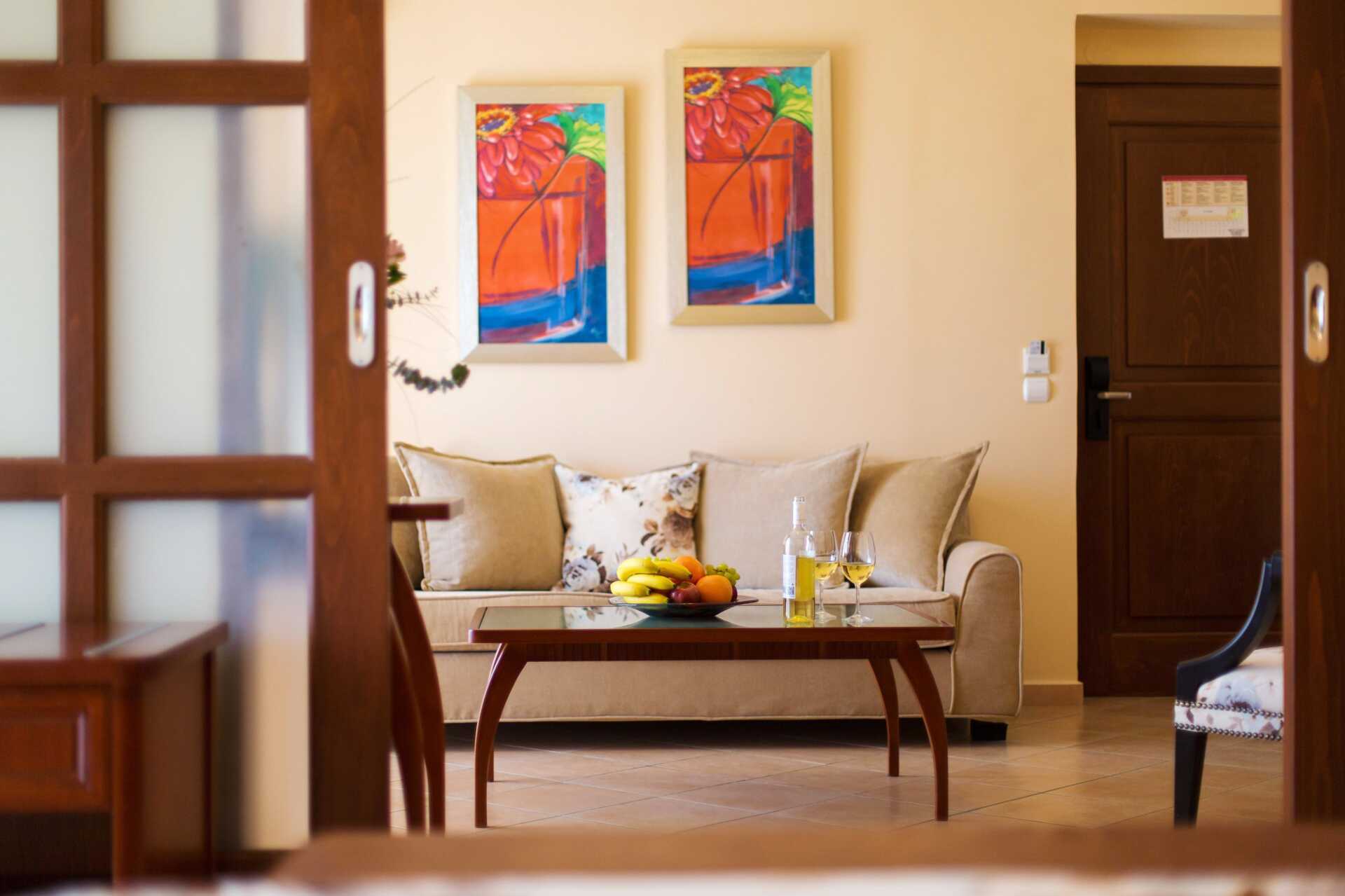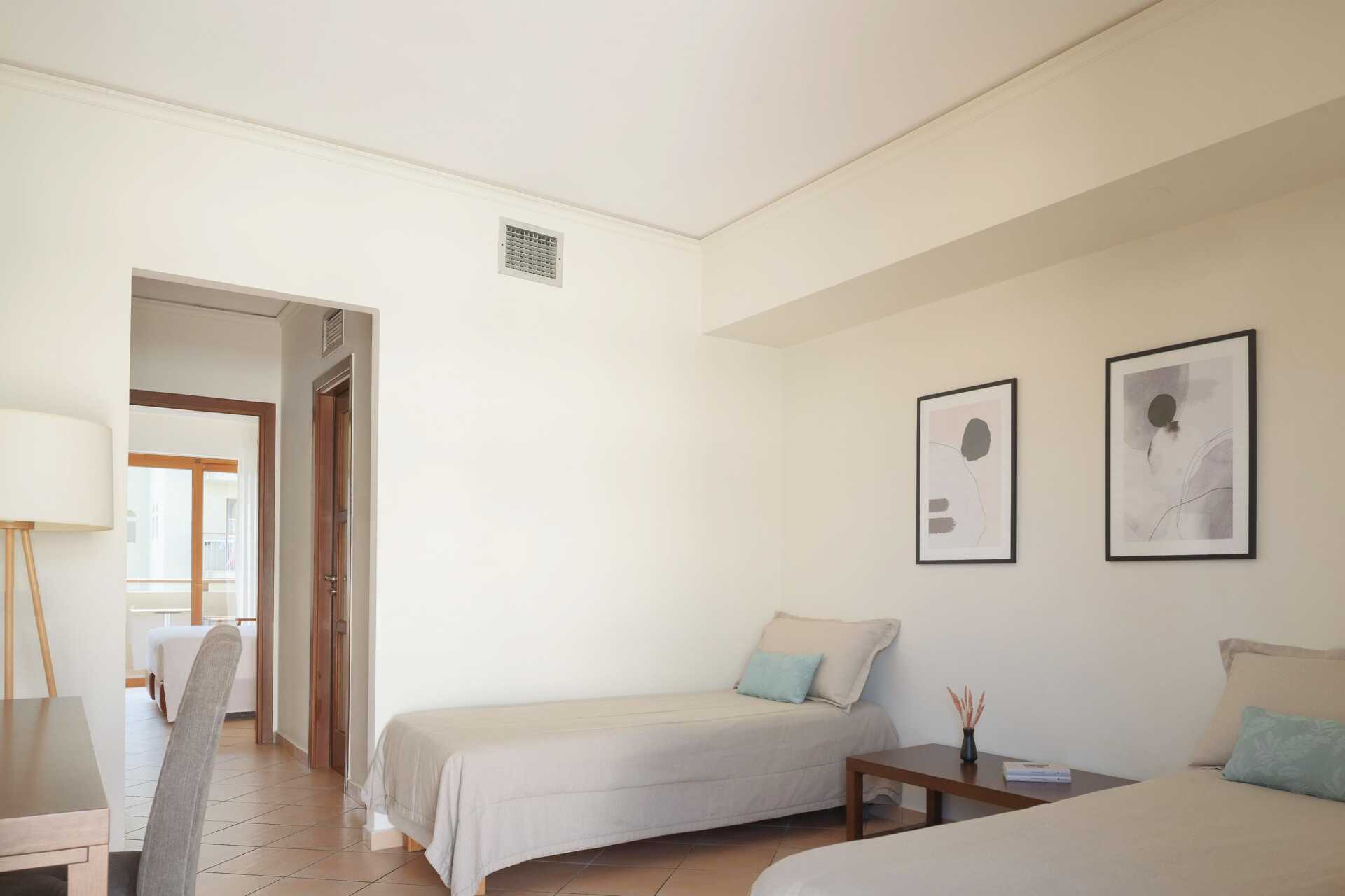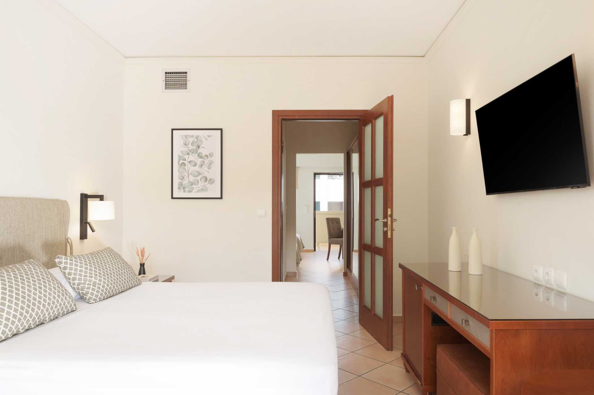 Familie-værelse med balkon og pooludsigt. Værelserne er placeret i sidebygningen, og består af et soveværelse og et opholdsrum. Åben planløsning mellem rummene. En dobbeltseng og en enkeltseng. Mulighed for ekstra opredninger i to sovesofaer. Gratis wifi og aircondition. Deponering mod betaling. Køleskab. El-kedel og kaffe/te. Tv med internationale kanaler. Badekåber og tøfler. Hårtørrer. Badeværelse med badekar eller bruser samt toilet. Rengøring 7 gange om ugen.