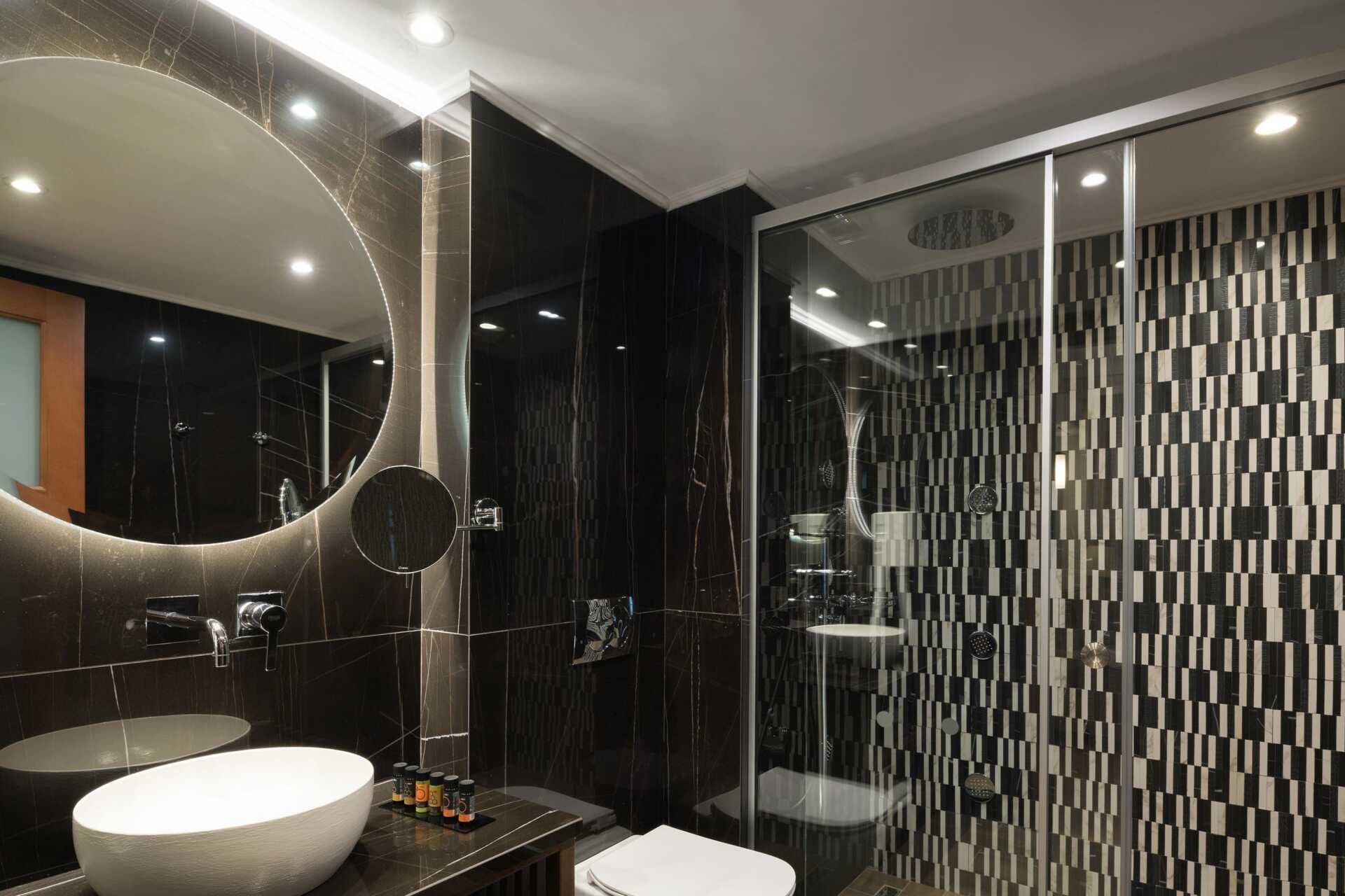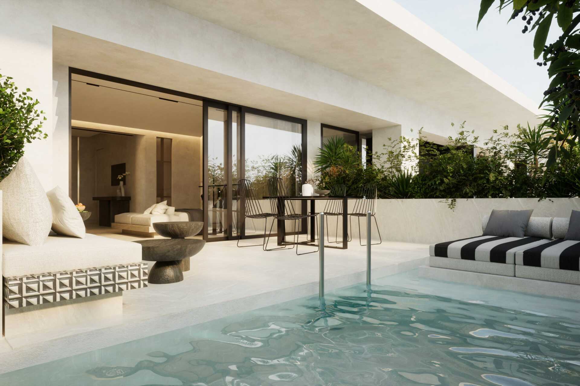 Suite med terrasse i stueplan og privat pool. En dobbeltseng. Mulighed for ekstra opredning i sovesofa. Gratis wifi, aircondition og deponering. Køleskab. El-kedel og kaffe/te. Nespresso kaffemaskine. Tv med internationale kanaler. Badekåber og tøfler. Hårtørrer. Badeværelse med badekar eller bruser samt toilet. Rengøring 7 gange om ugen.