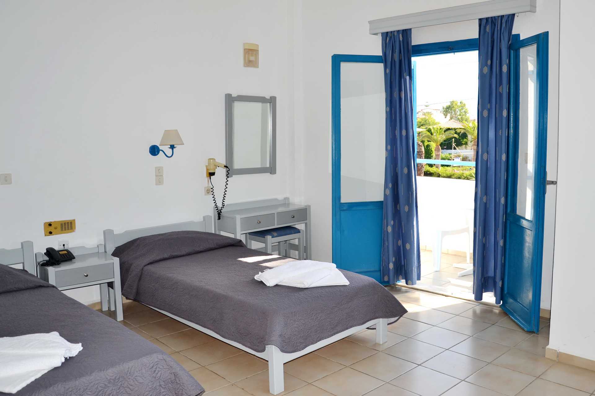 1-værelses lejligheder med balkon eller terrasse. Soveværelse kombineret med minikøkken. To enkeltsenge. Mulighed for ekstra opredning til en tredje person. Minikøkken med kogeplader, køleskab, el-kedel, kaffemaskine og enkelt køkkenudstyr. Gratis wifi og aircondition. Deponering mod betaling. Tv med internationale kanaler. Hårtørrer. Badeværelse med badekar eller bruser samt toilet. Rengøring 6 gange om ugen. Børn under to år tæller med i det maksimale antal personer på værelset.