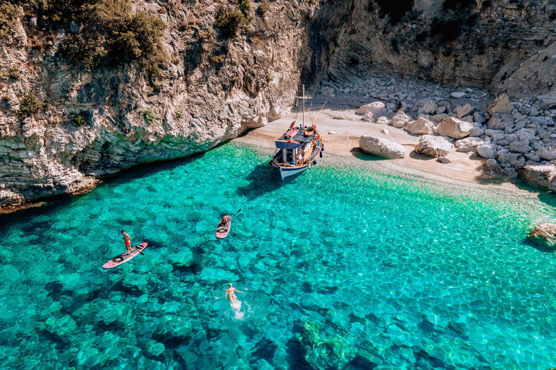Lefkas ligger lige syd for Korfu, ude i Det Ioniske Hav på Grækenlands vestkyst. Den har fået sit navn fra de hvide klipper, der falder dramatisk ned i havet ved dens sydspids – og ja, den er præcis så smuk, som den lyder. Selvom turister har kommet hertil i lang tid, har Lefkas formået at bevare sin autentiske græske charme. Her føles det stadig som om, man oplever det autentiske Grækenland.
