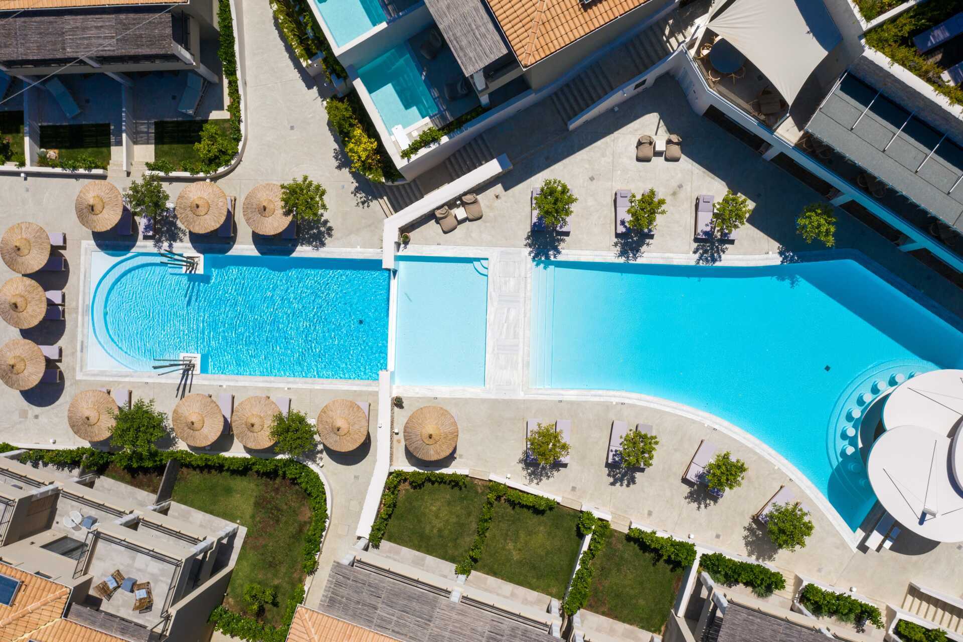 Crystal Waters har to pools og en børnepool samt en swim up-bar. Poolen, der kaldes Sapphire Pool, er kun for voksne i maj og juni; resten af året er den åben for alle. Solsenge og faste stofparasoller. Der er også ekstra luksuriøse og komfortable lounges ved en pool, hvor du kan slappe af i en stor loungesofa. Pool-og strandhåndklæder mod depositum.