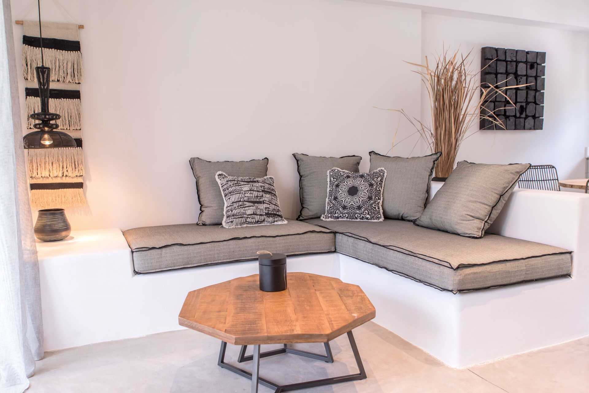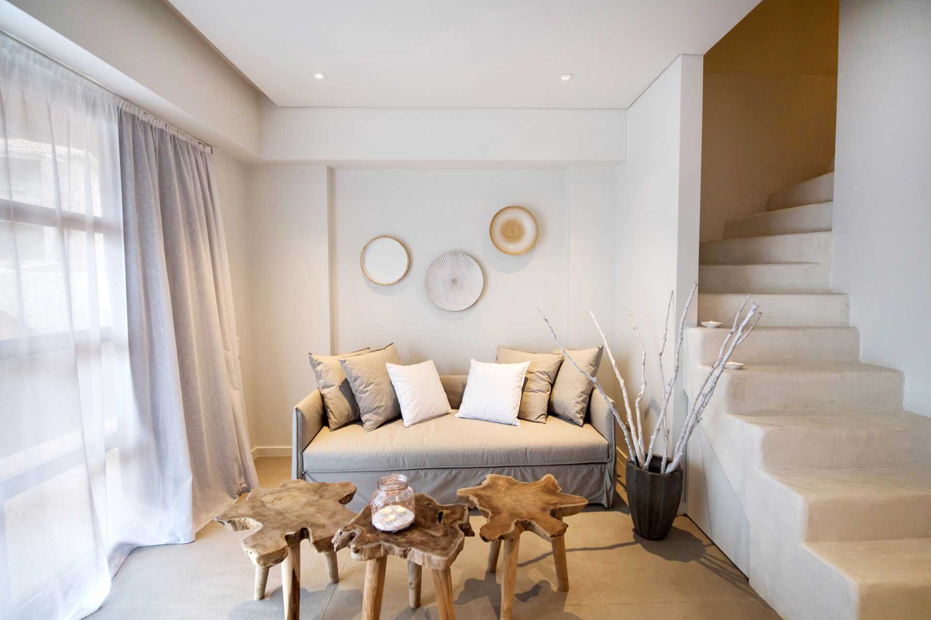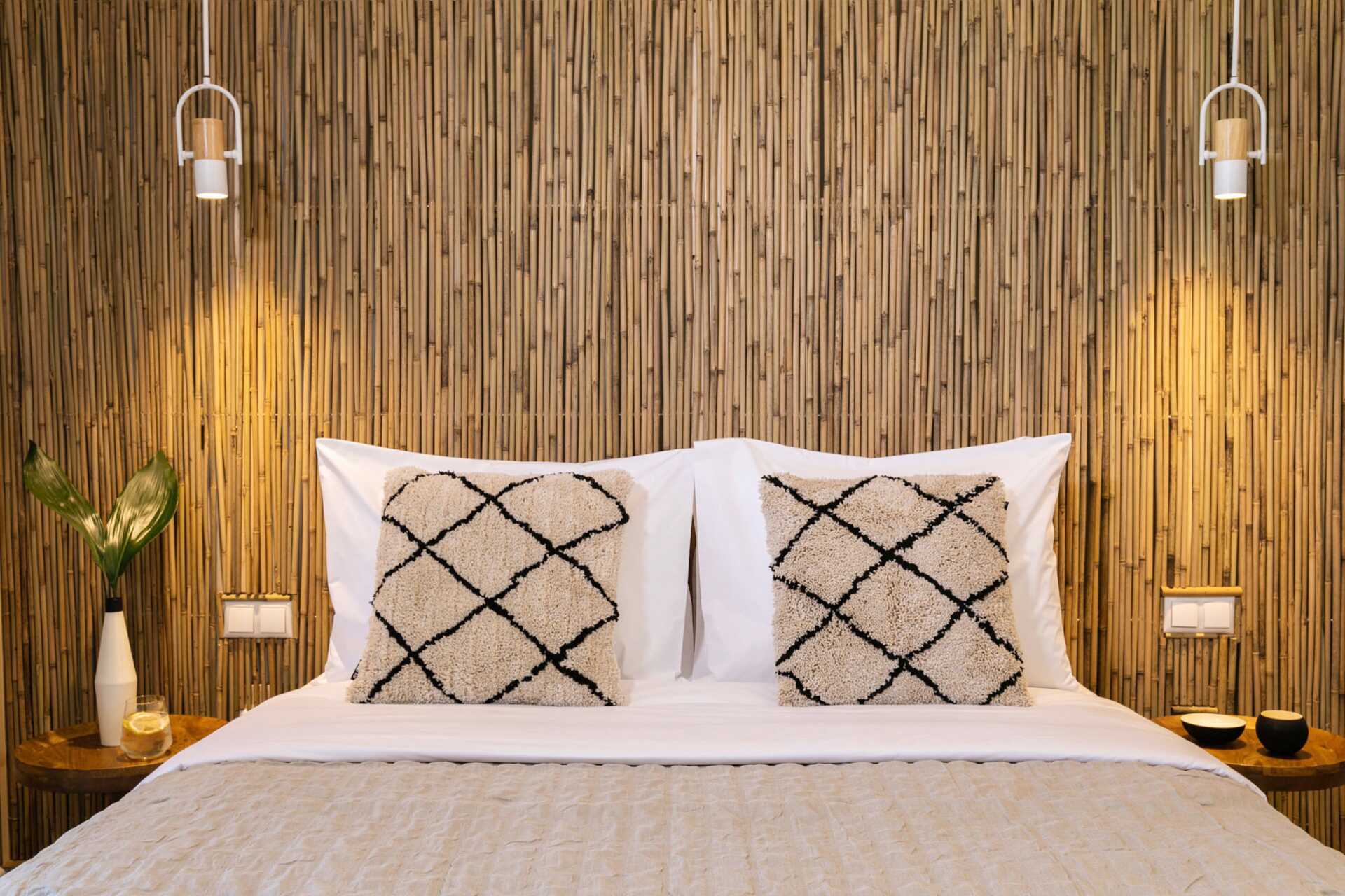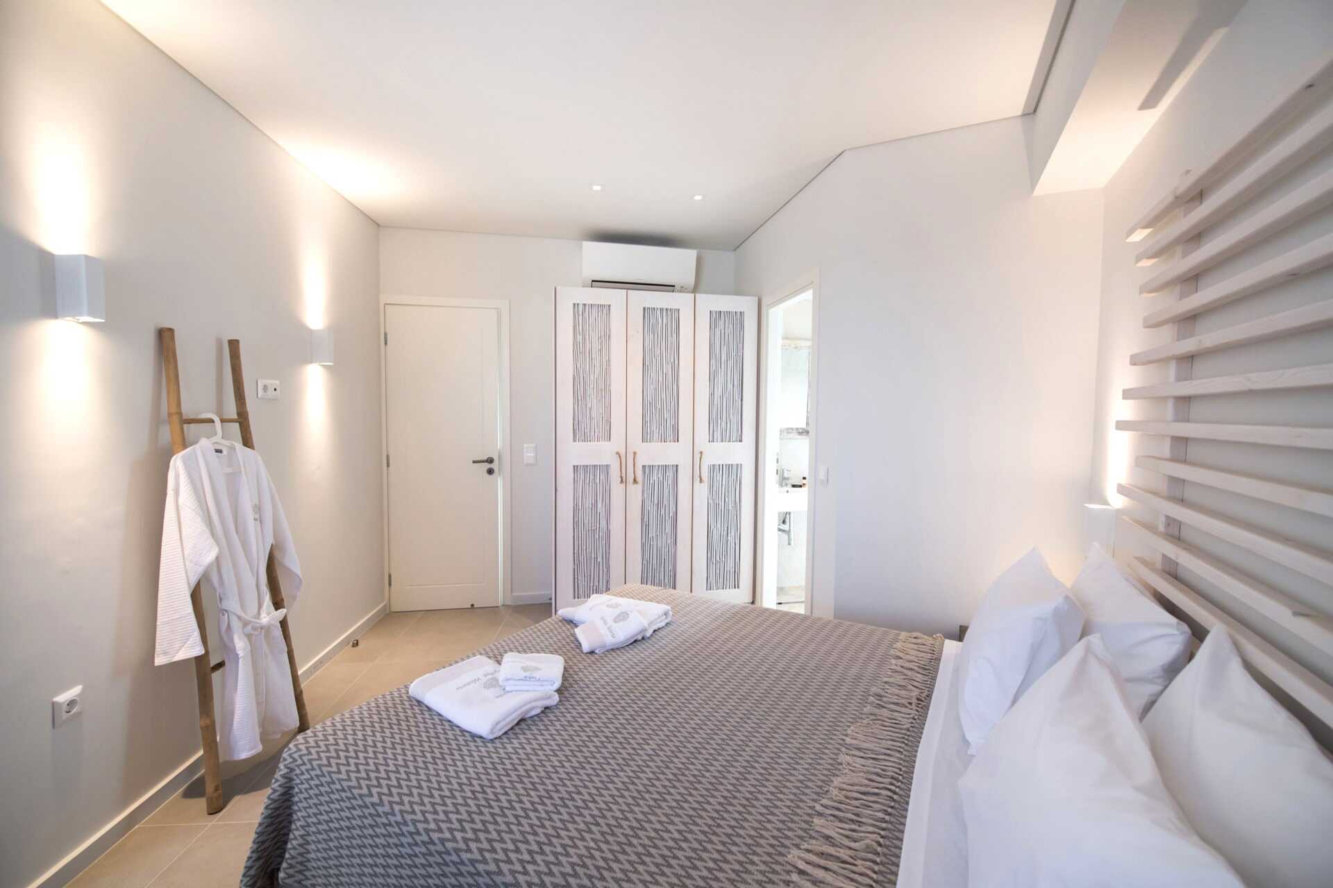 Dobbeltværelser med terrasse og privat pool. På terrassen er der stole og borde og trapper ned i poolen. En dobbeltseng eller to enkeltsenge. Gratis wifi, aircondition og deponering. Minibar. El-kedel og kaffe/te. Tv med internationale kanaler. Hårtørrer. Badeværelse med bruser og toilet. Rengøring 7 gange om ugen.