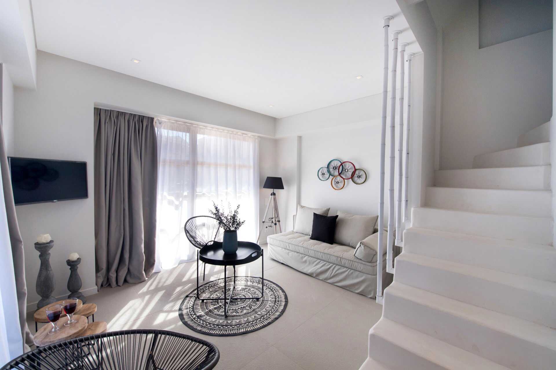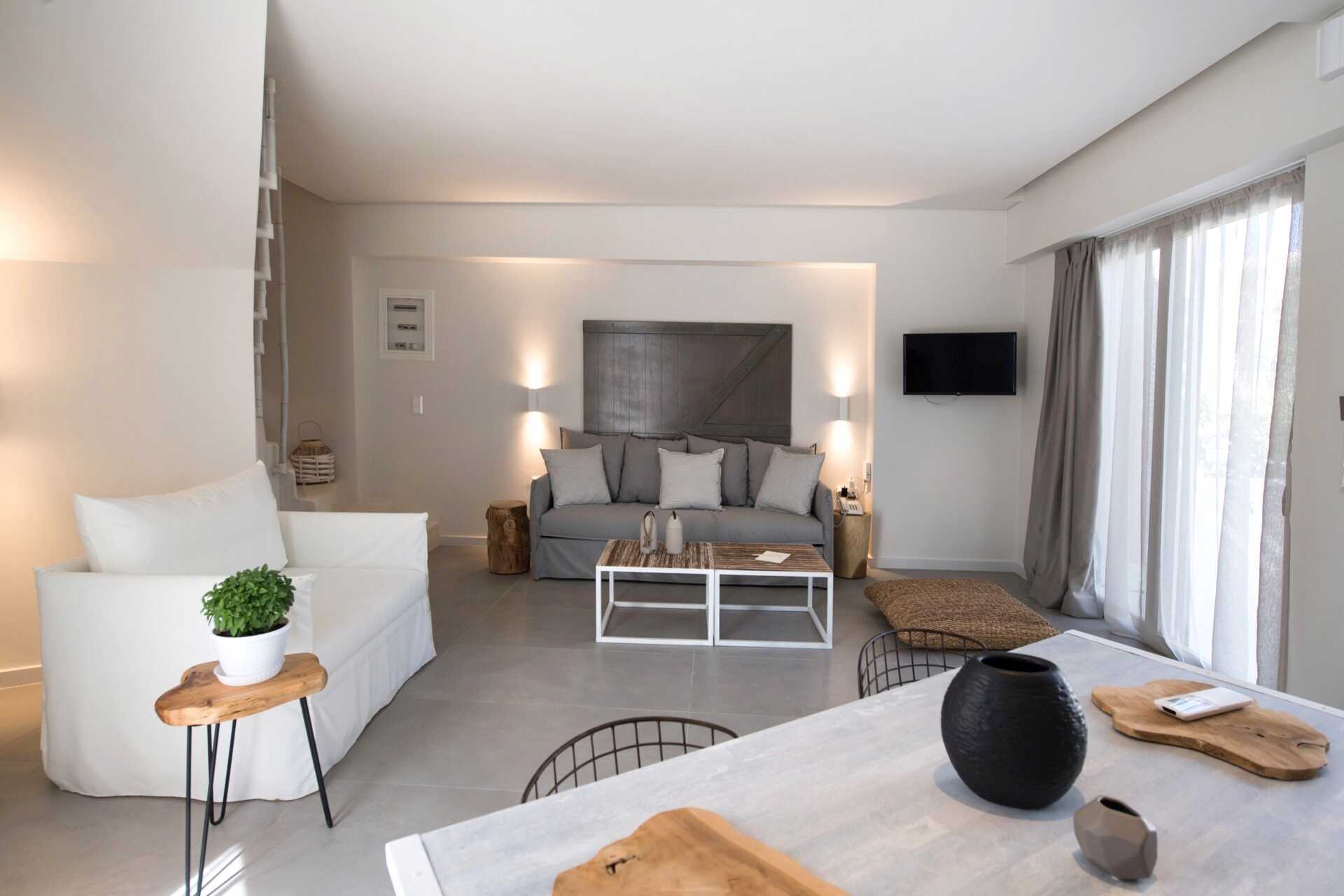 Toværelses suite med terrasse. I entréetagen er der opholdsrum med spiseplads - nogle ved bardisken, en eller to sovesofaer, toilet og udeareal. Ovenpå er der to soveværelser, hvoraf det ene har balkon. Et soveværelse med dobbeltseng og et soveværelse med to enkeltsenge og et badeværelse med bruser og toilet. Gratis wifi, aircondition og deponering. Minibar. El-kedel og kaffe/te. Tv med internationale kanaler. Hårtørrer. Rengøring 7 gange om ugen.