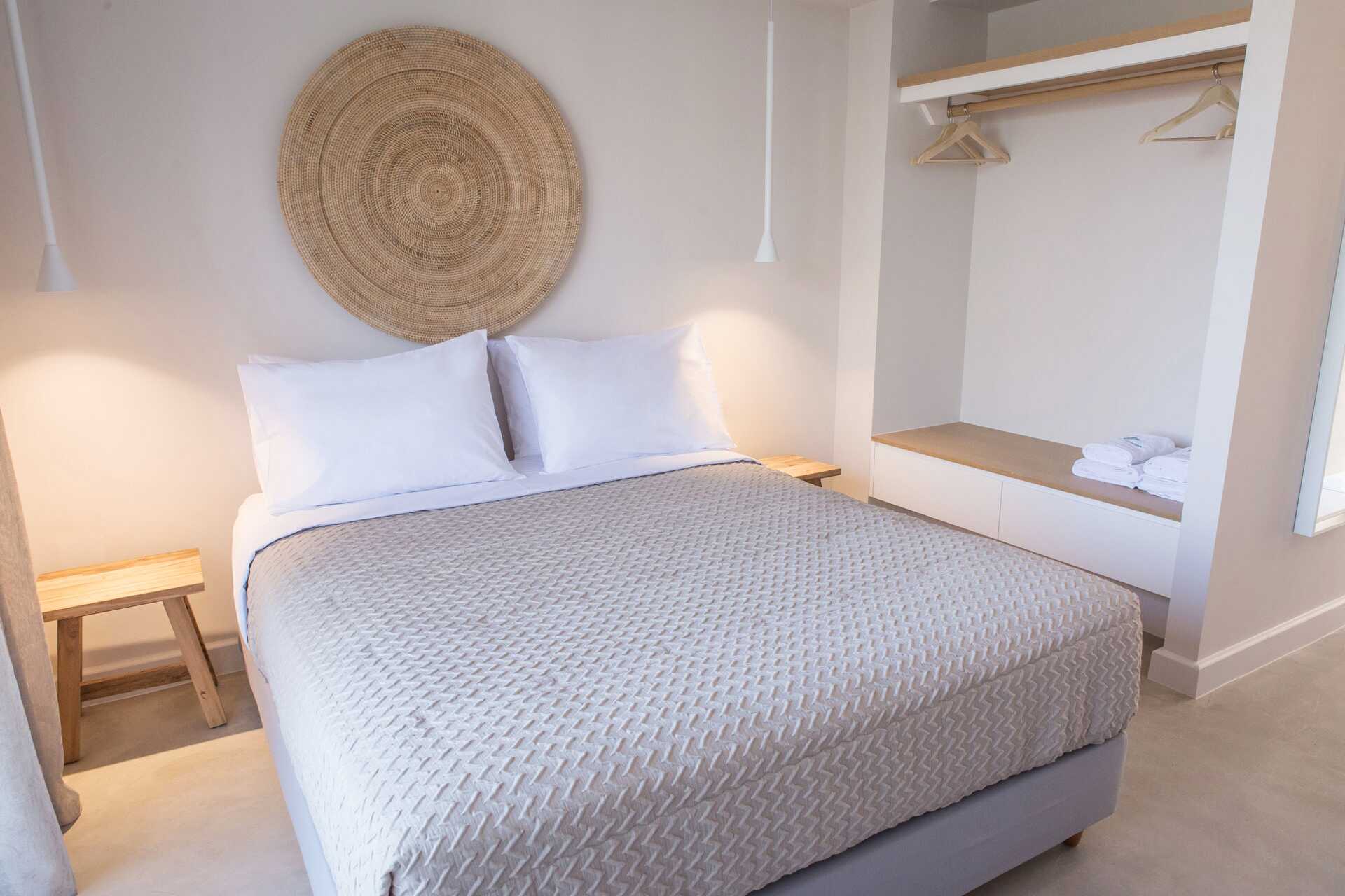 Dobbeltværelser med balkon, nogle med delvis havudsigt. En dobbeltseng. Gratis wifi, aircondition og deponering. Minibar. El-kedel og kaffe/te. Tv med internationale kanaler. Hårtørrer. Badeværelse med bruser og toilet. Rengøring 7 gange om ugen.