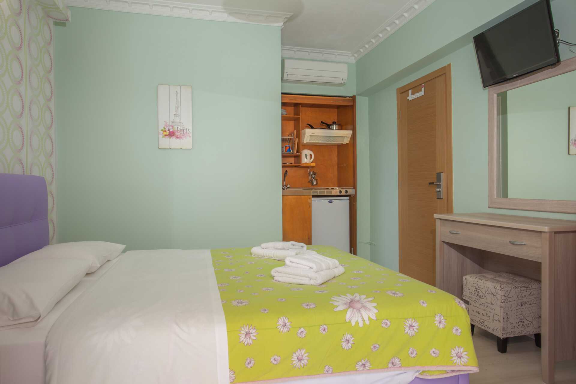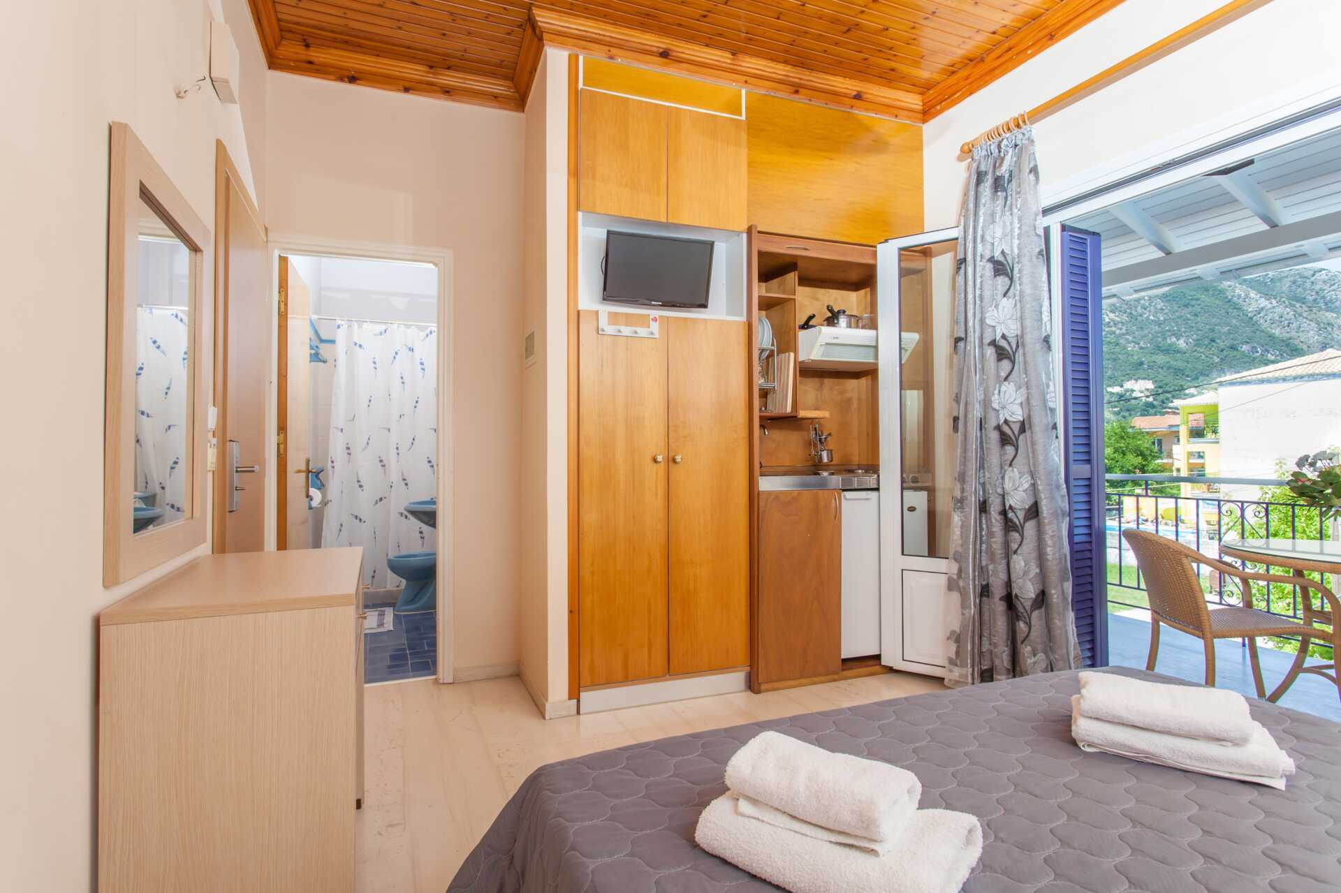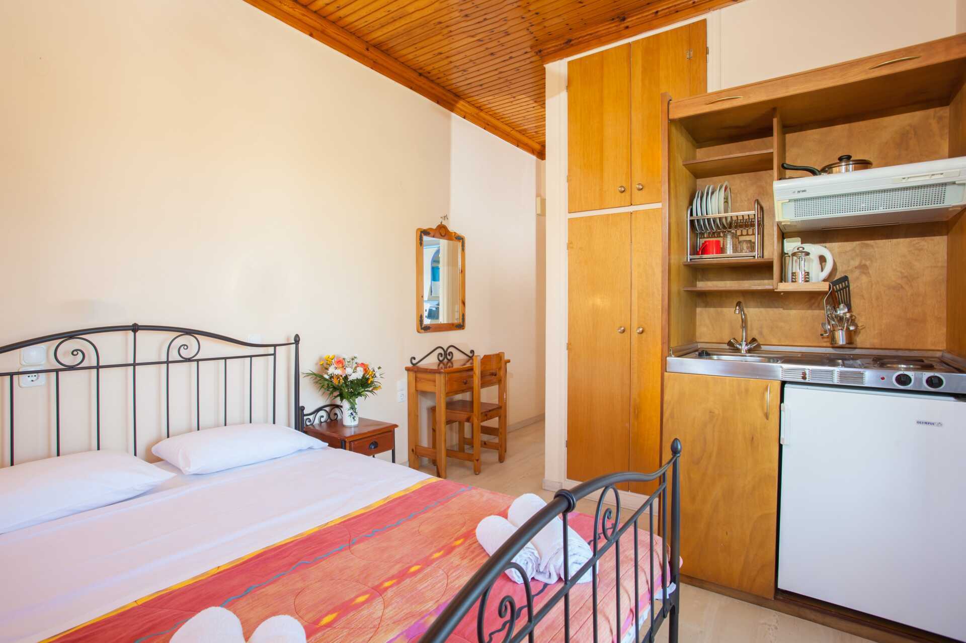 Renoveret 1-værelses lejlighed med balkon, nogle med pooludsigt. Til sommeren 2025 er nogle lejligheder totalrenoverede og nogle er delvist renoverede, hvor badeværelset ikke er blevet renoveret. Kombineret opholdsrum og minikøkken med kogeplader, køleskab, el-kedel og enkelt køkkenudstyr. Gratis wifi. Aircondition og deponering mod betaling. Tv. Badeværelse med bruser og toilet. Rengøring 5 gange om ugen.