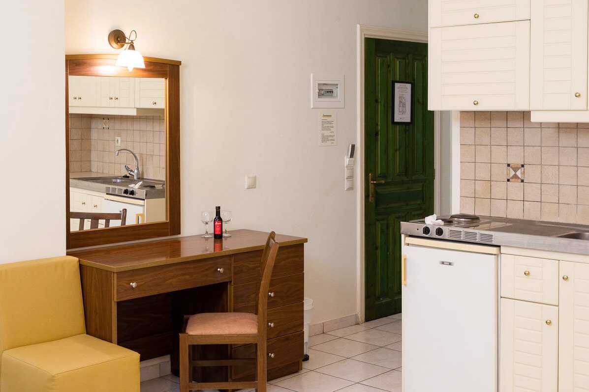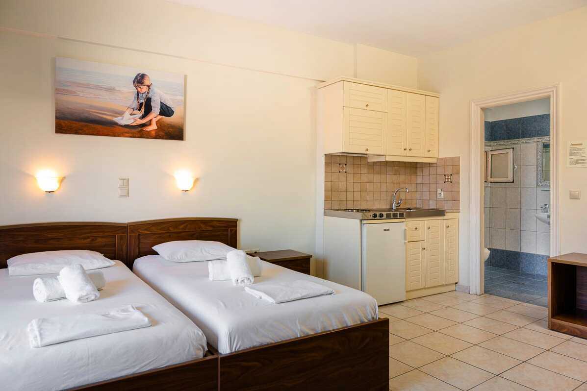 1-værelses lejligheder med balkon. Soveværelse kombineret med minikøkken. To enkeltsenge. Minikøkken med køleskab, kogeplader og enkelt køkkenudstyr. Gratis wifi og deponering. Aircondition mod betaling. Tv med lokale kanaler. Badeværelse med bruser og toilet. Rengøring 6 gange om ugen. Børn under to år tæller med i det maksimale antal personer på værelset.