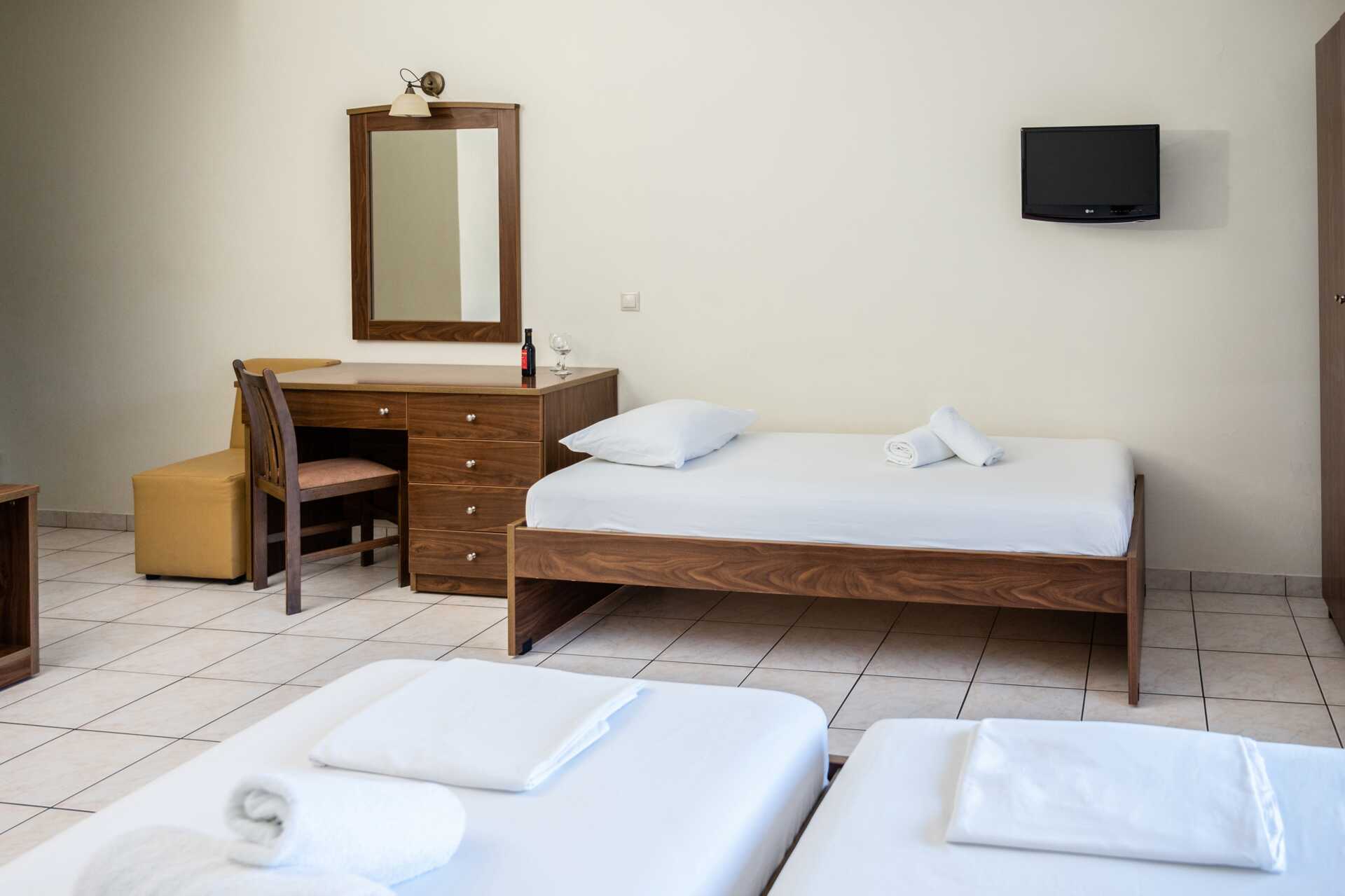 Dobbeltværelse med balkon. Tre enkeltsenge. Gratis wifi og deponering. Aircondition mod betaling. Tv med lokale kanaler. Badeværelse med bruser og toilet. Rengøring 6 gange om ugen. Børn under to år tæller med i det maksimale antal personer på værelset.
