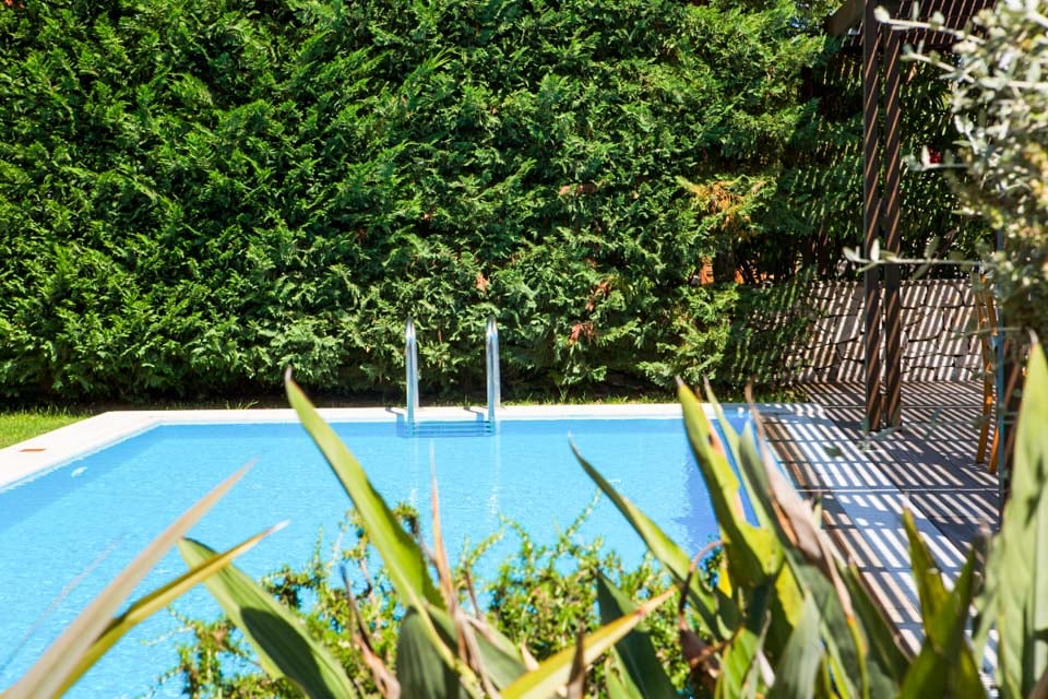 Poolstørrelse: 7m x 4m Pooldybde: 0,9m - 1,7m, Adgang via stige, Bruser ved poolen