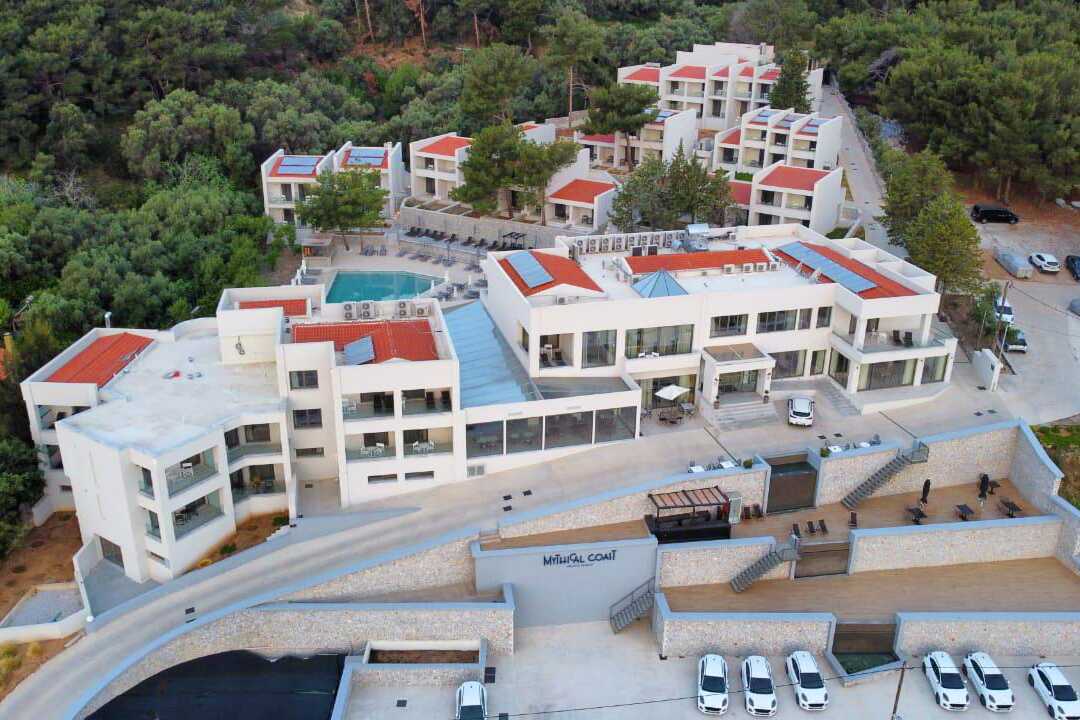 Syd for Mitilini på Lesvos, mellem de grønne bjerge og det glitrende hav, ligger det elegante hotel Mythical Coast Wellness Retreat. Hotellet har et fitnessrum og en dejlig spa til afslapning.