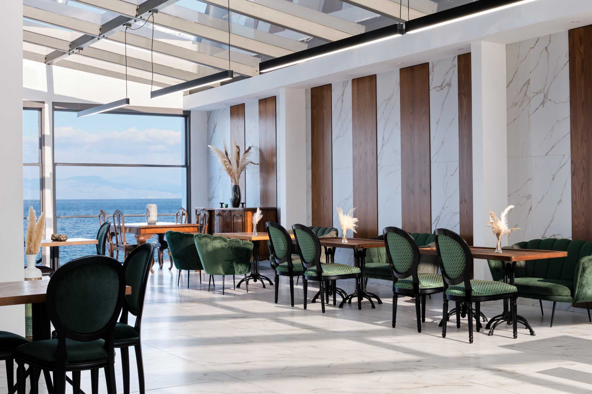 Hotellet har en restaurant, hvor du kan spise frokost og middag. Her serveres græske retter og fiske- og skaldyrsretter. Bar.