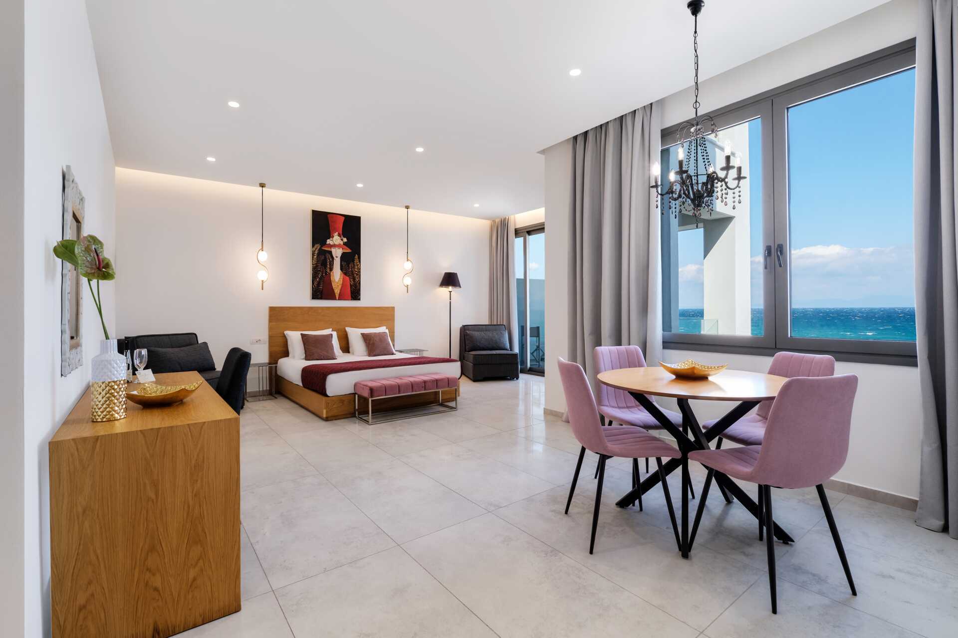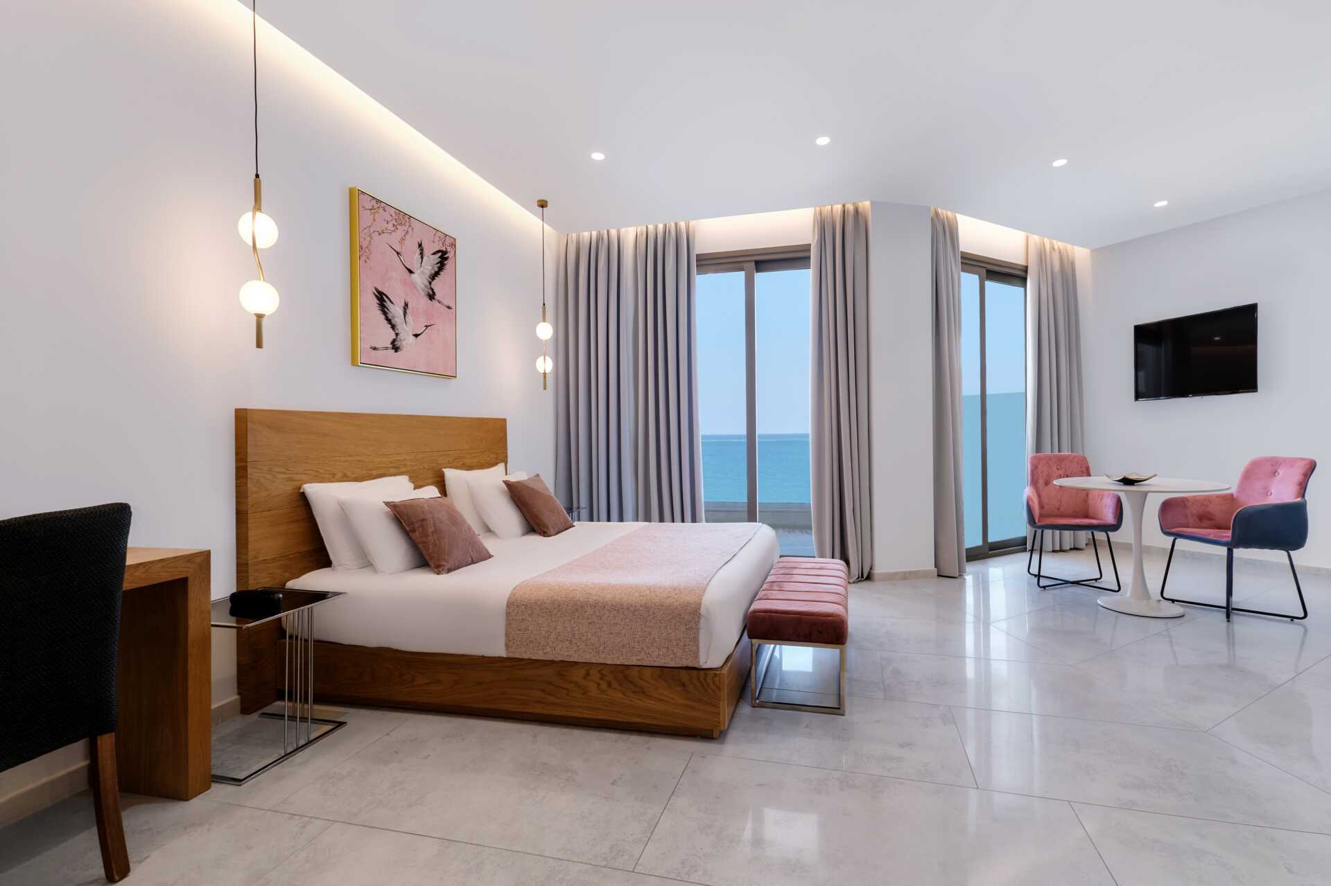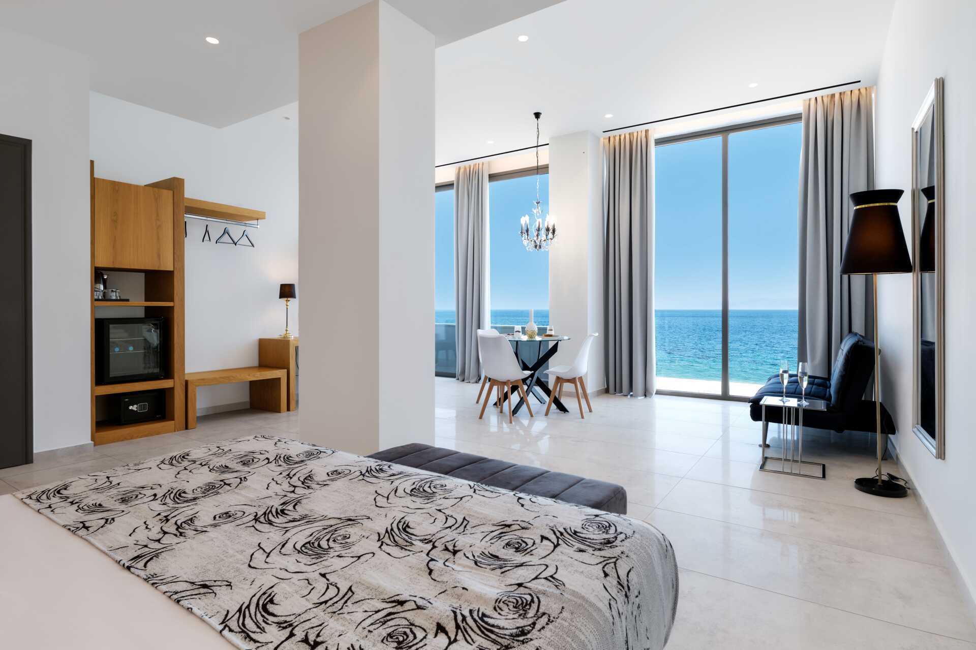 Deluxe-suiter med balkon. En dobbeltseng. Mulighed for ekstra opredning i fold-ud seng. Gratis wifi, aircondition og deponering. Minibar. Tv med internationale kanaler. Badekåber og tøfler. Hårtørrer. Badeværelse med bruser og toilet. Rengøring 7 gange om ugen.