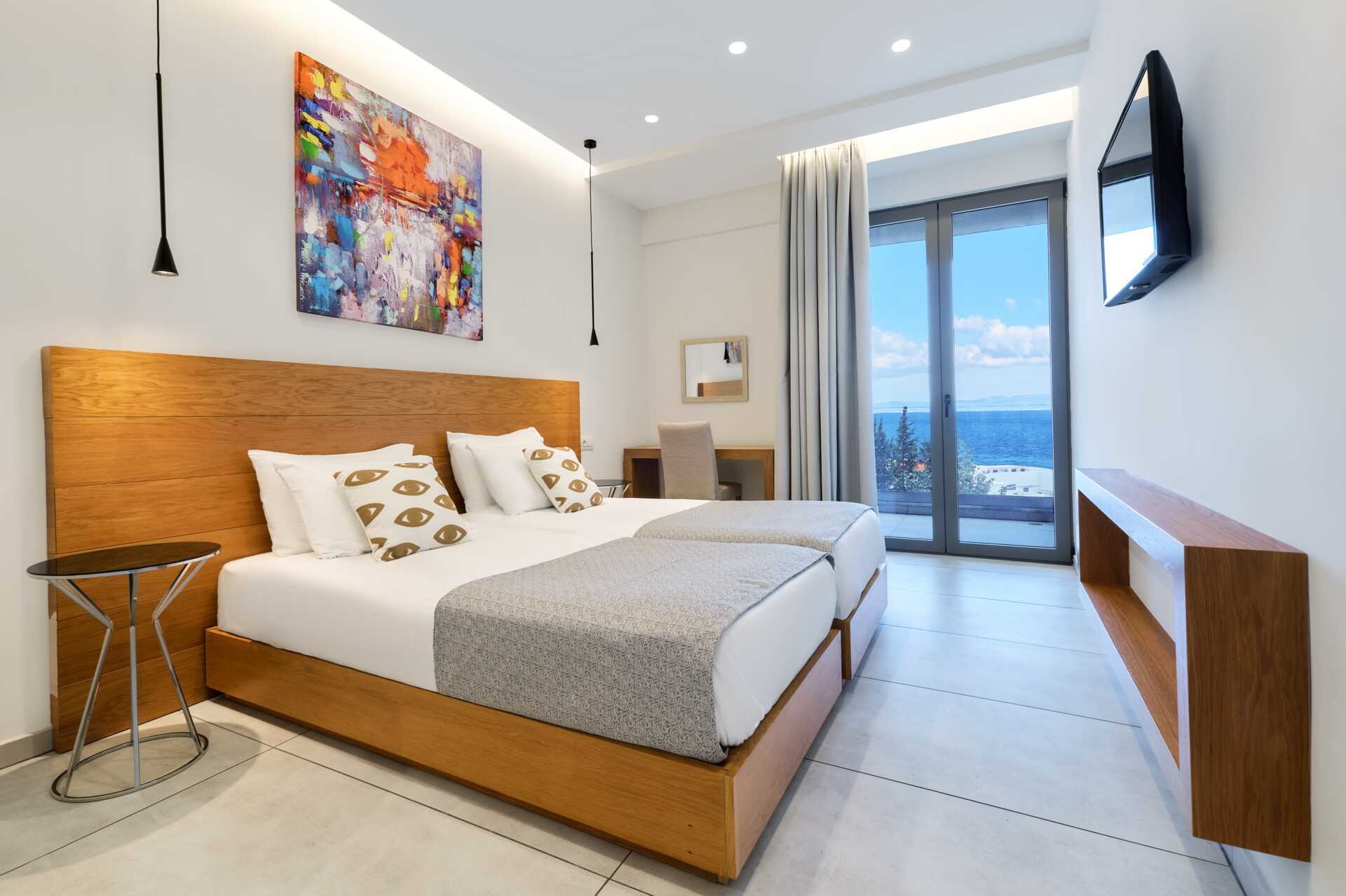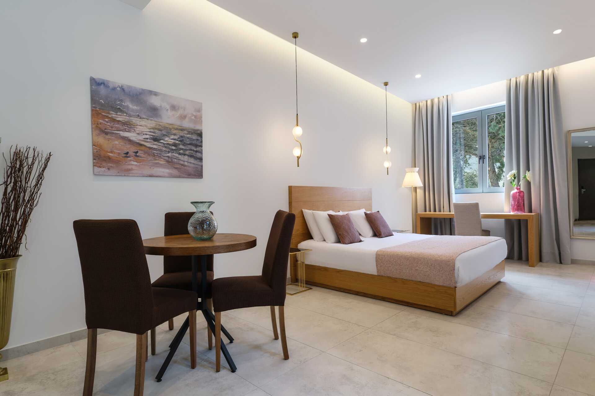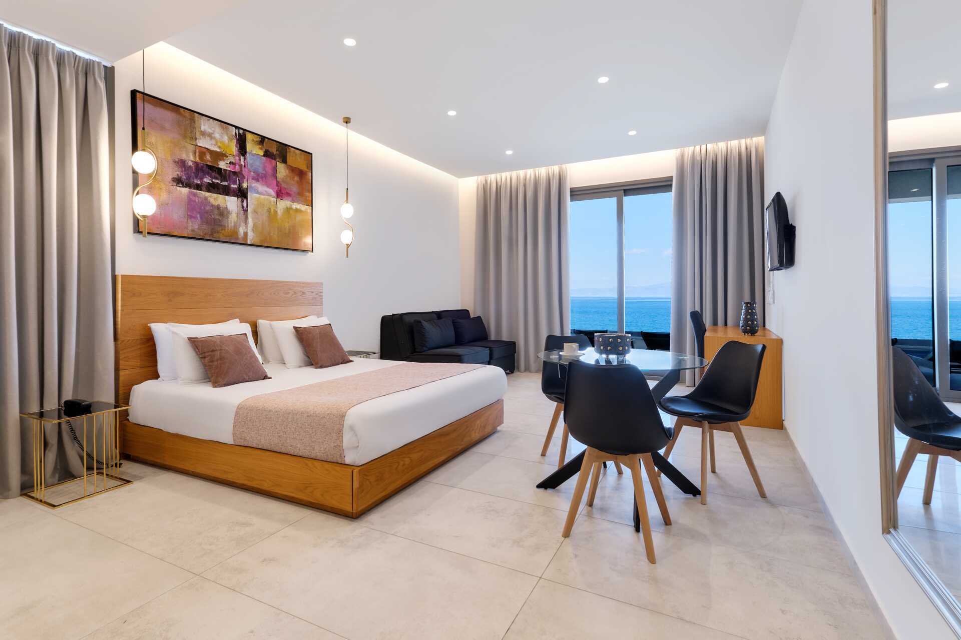 Deluxe-suiter med balkon. En dobbeltseng. Mulighed for ekstra opredning i fold-ud seng. Gratis wifi, aircondition og deponering. Minibar. Tv med internationale kanaler. Badekåber og tøfler. Hårtørrer. Badeværelse med bruser og toilet. Rengøring 7 gange om ugen.