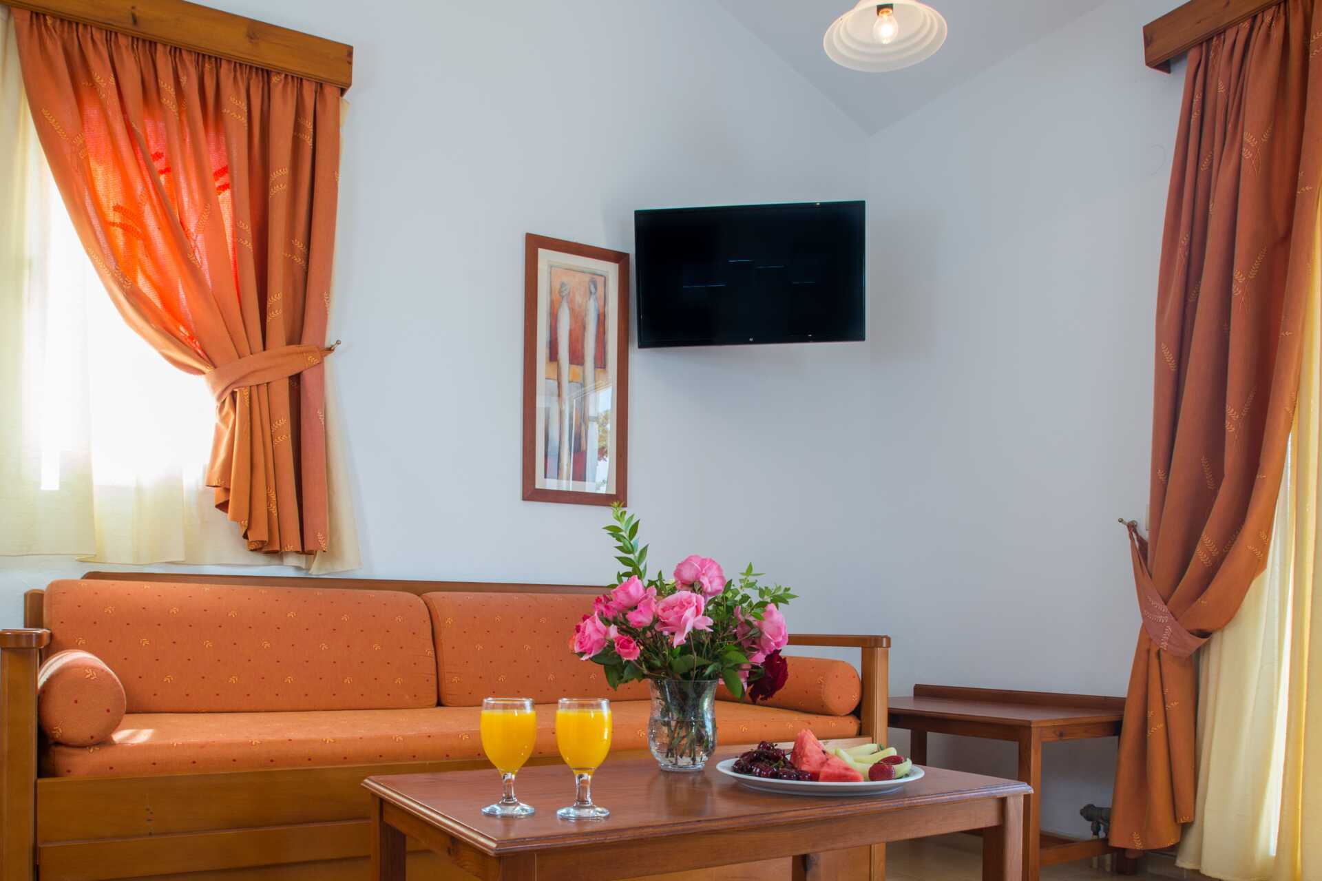Dobbeltværelse i bungalow med balkon og havudsigt. To enkeltsenge og mulighed for ekstra opredning på en sovesofa. Minibar. Tv med internationale kanaler. Hårtørrer. Badeværelse med bruser og toilet. Rengøring 6 gange om ugen.