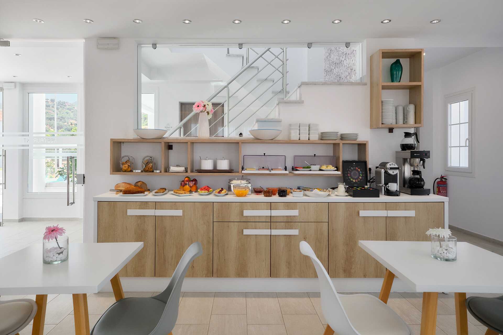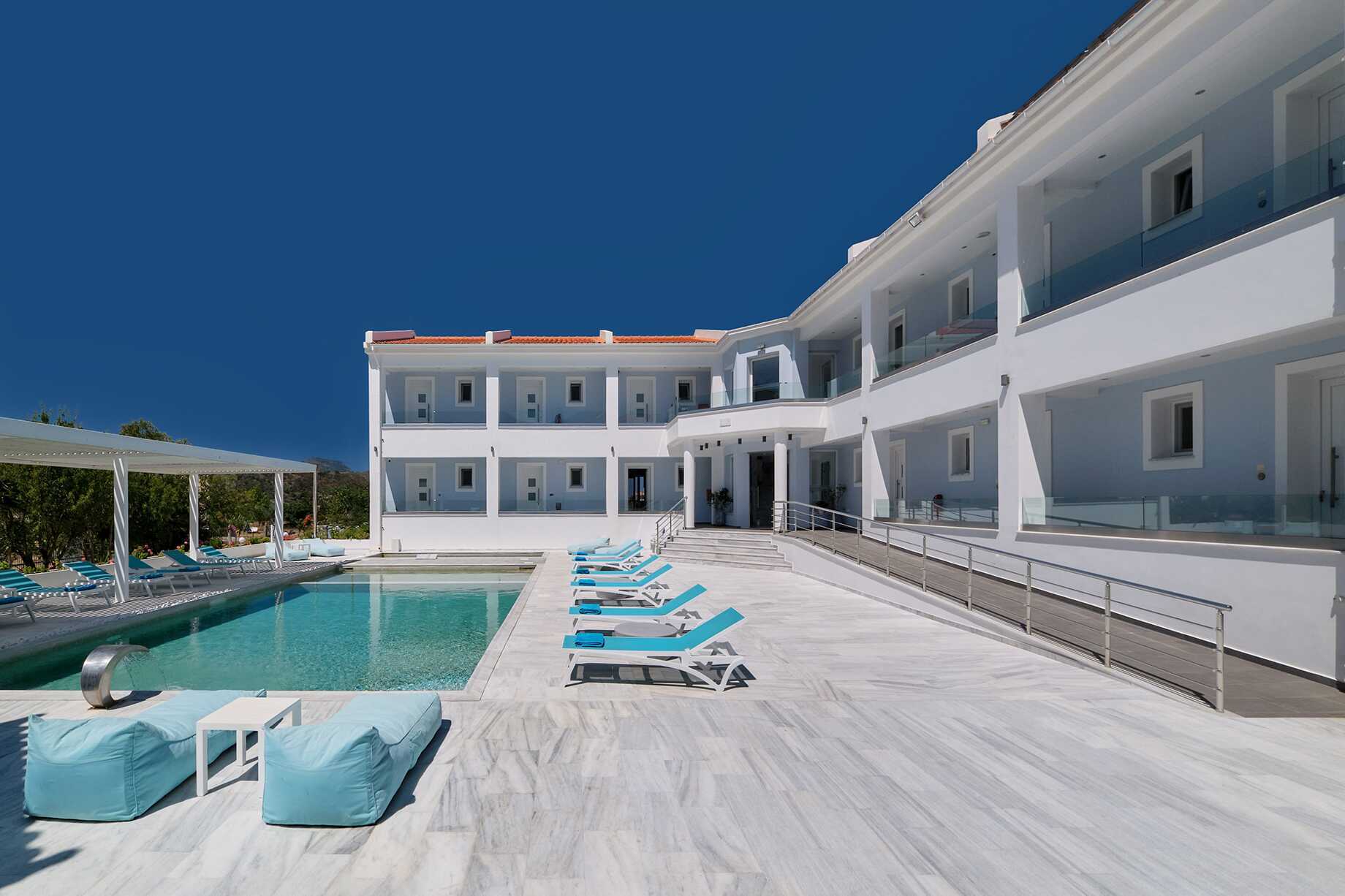 Hotellet ligger midt mellem Petra og Anaxos, så det er ca. 1,5 km at gå til begge steder. Familier med små børn og gangbesværede bør leje bil.