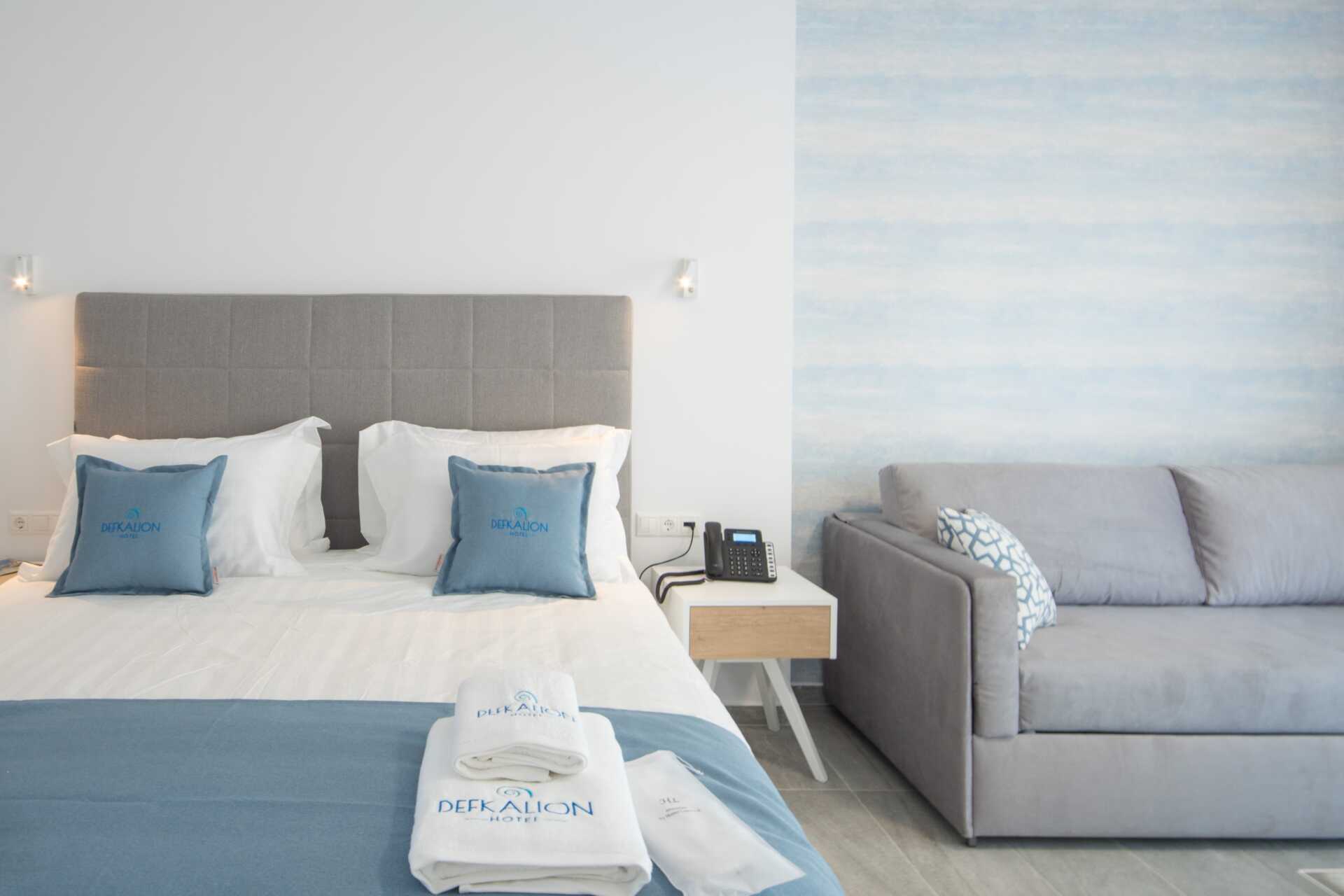 1-værelses lejlighed deluxe med stor balkon eller terrasse. Soveværelse kombineret med minikøkken. En dobbeltseng eller to enkeltsenge. Mulighed for ekstra opredning i sovesofa. Minikøkken med kogeplader, ovn, el-kedel, kaffemaskine, mikrobølgeovn, brødrister, Nespresso-maskine - kapsler inkluderet ved ankomst samt enkelt køkkenudstyr. Spiseplads ved bardisken. Gratis wifi, aircondition og deponering. Tv med internationale kanaler. Strygejern. Badekåber og tøfler. Hårtørrer. Badeværelse med bruser og toilet. Rengøring 6 gange om ugen.