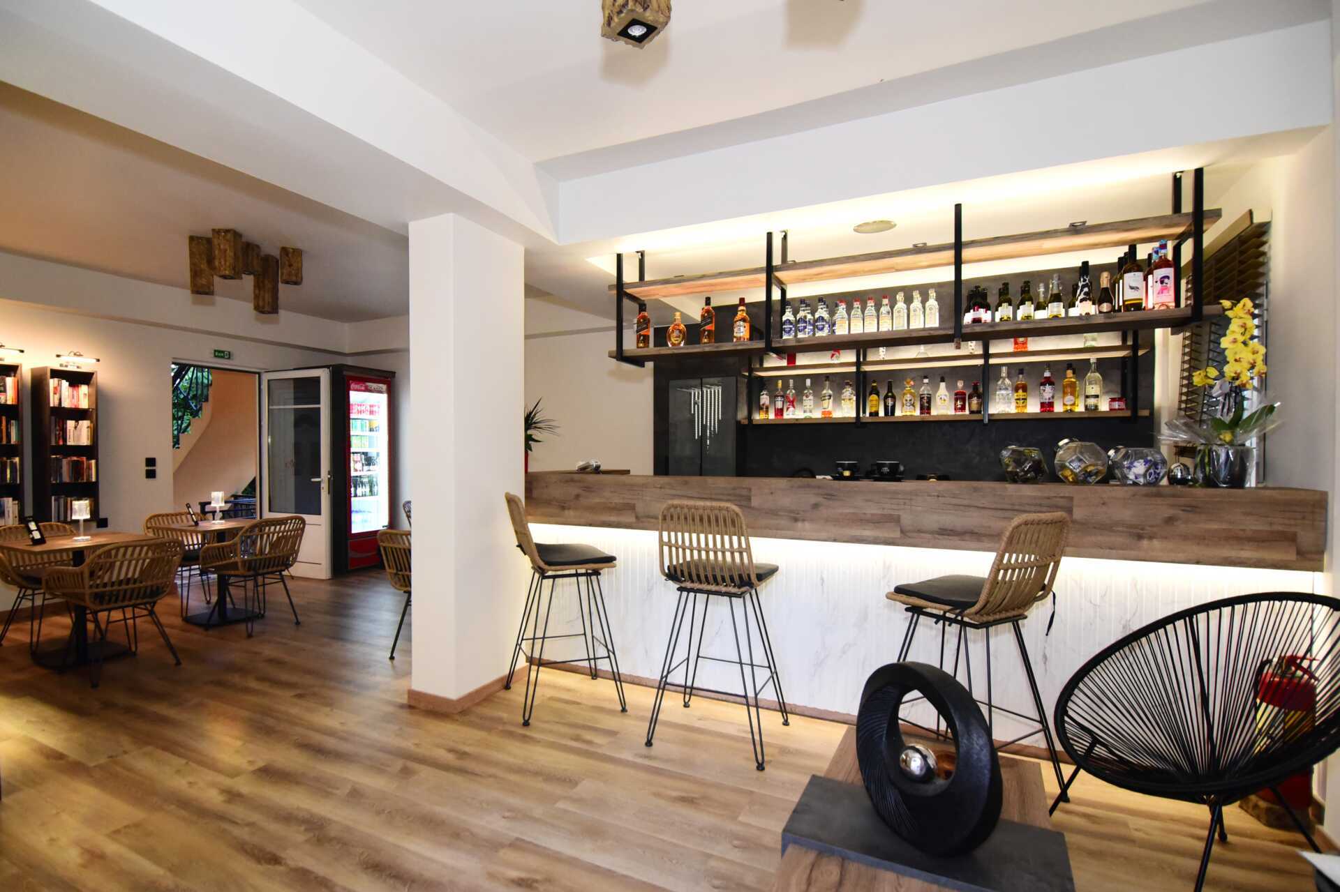2025 - værelser og lejligheder inkl. badeværelses- og balkonmøbler. Receptionen og baren.