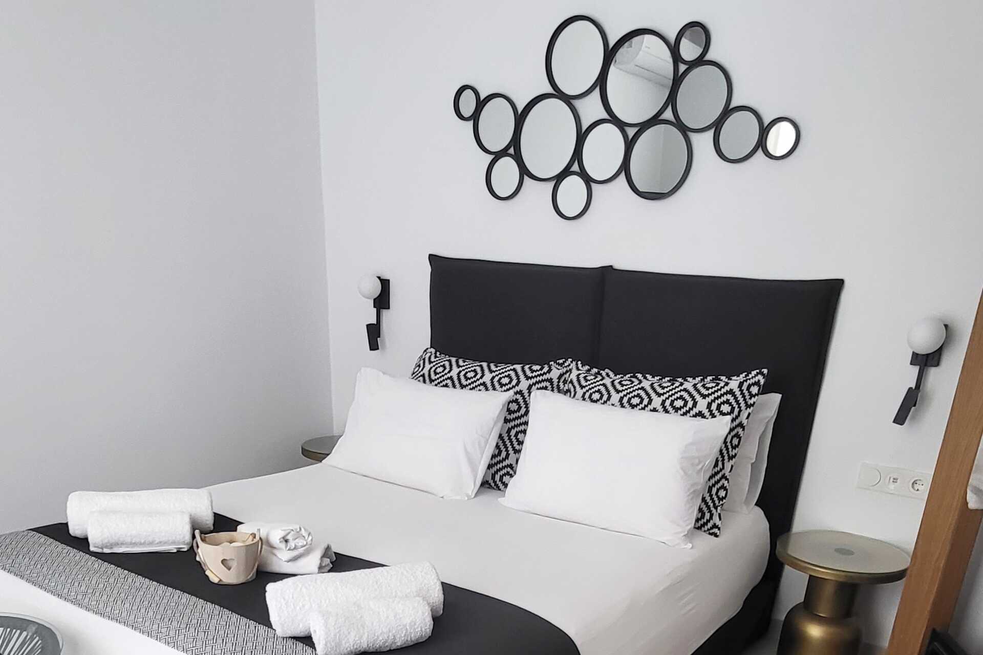 1-værelses lejlighed med balkon og havudsigt. Soveværelse kombineret med minikøkken. En dobbeltseng. Minikøkken med kogeplader, køleskab, opvaskemaskine, mikrobølgeovn og enkelt køkkenudstyr. Nespresso-maskine, 6 kapsler indgår. Tv med internationale kanaler og Netflix. Vaskemaskine og damper. Der medfølger vaskemiddel og opvaskemiddel til maskinerne. Gratis wifi, aircondition og deponering. Badekåber og tøfler. Badeværelse med bruser og toilet. Rengøring 7 gange om ugen.