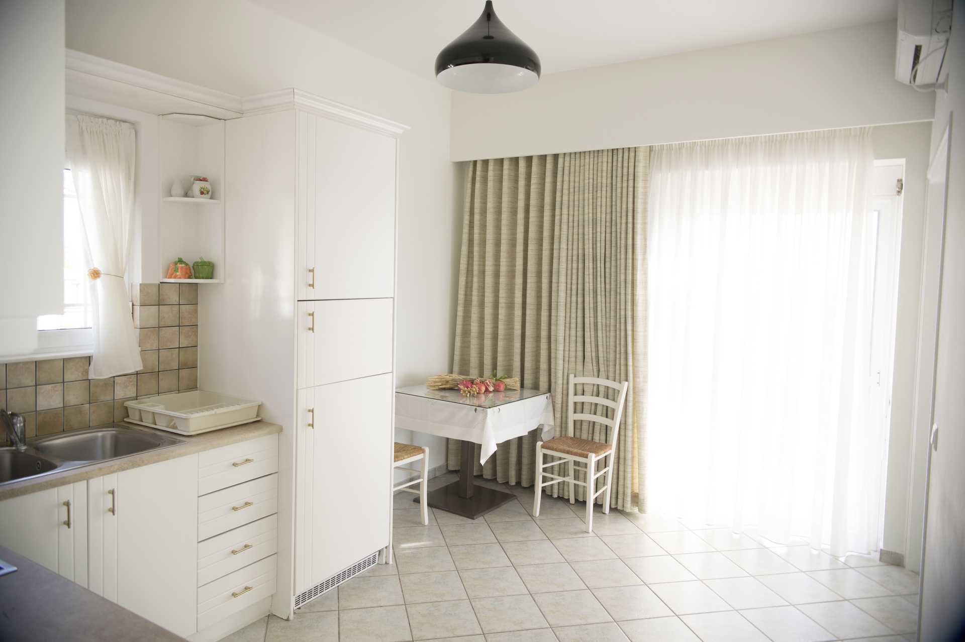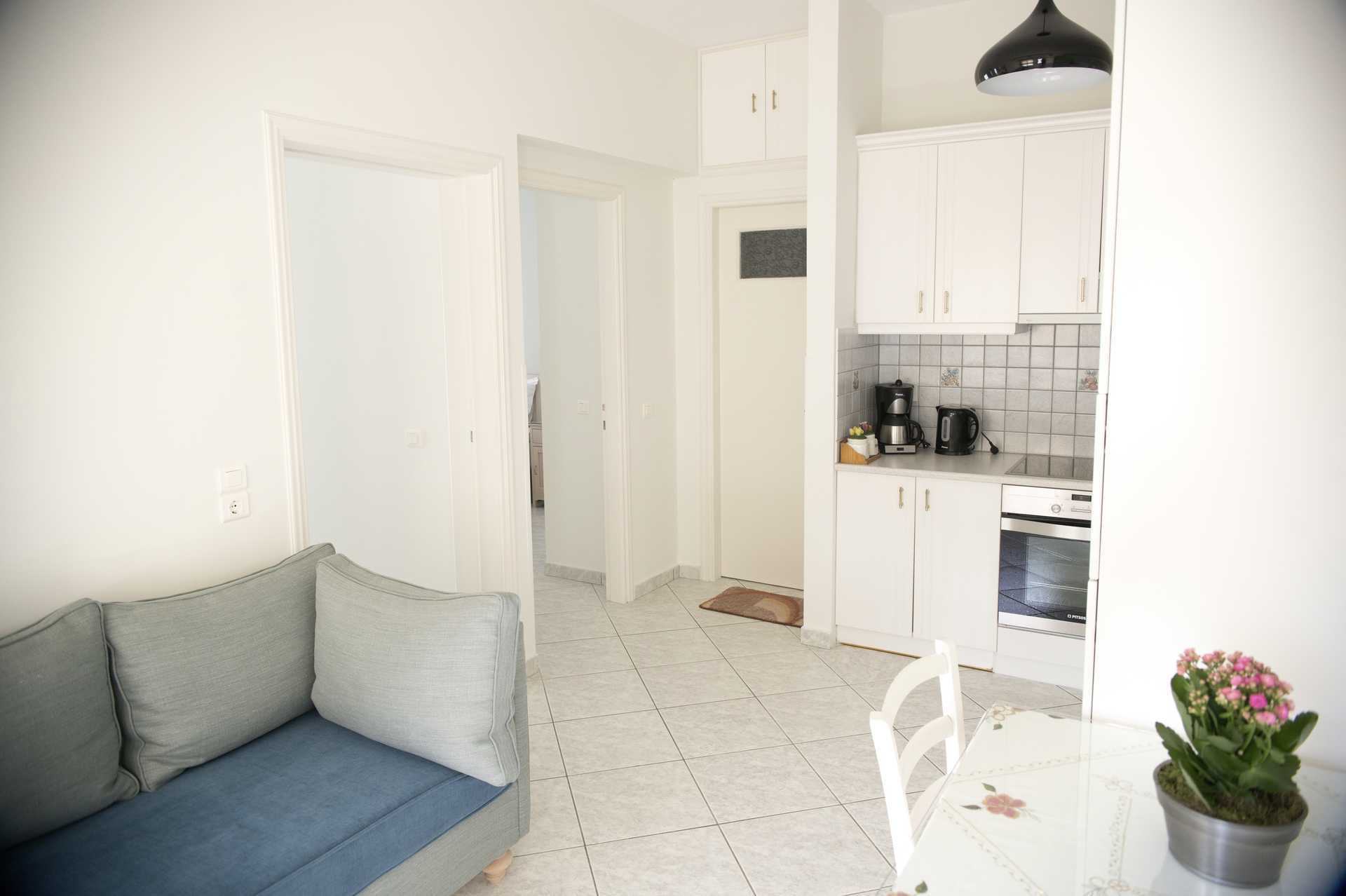 1-værelses lejlighed med balkon og havudsigt. Kombineret soveværelse med minikøkken. To enkeltsenge. Minikøkken med kogeplader, ovn, køleskab, kaffemaskine, el-kedel, brødrister, sandwichgrill og enkelt køkkenudstyr. Gratis wifi, aircondition og deponering. Tv med internationale kanaler. Hårtørrer. Badeværelse med bruser og toilet. Rengøring 5 gange om ugen.