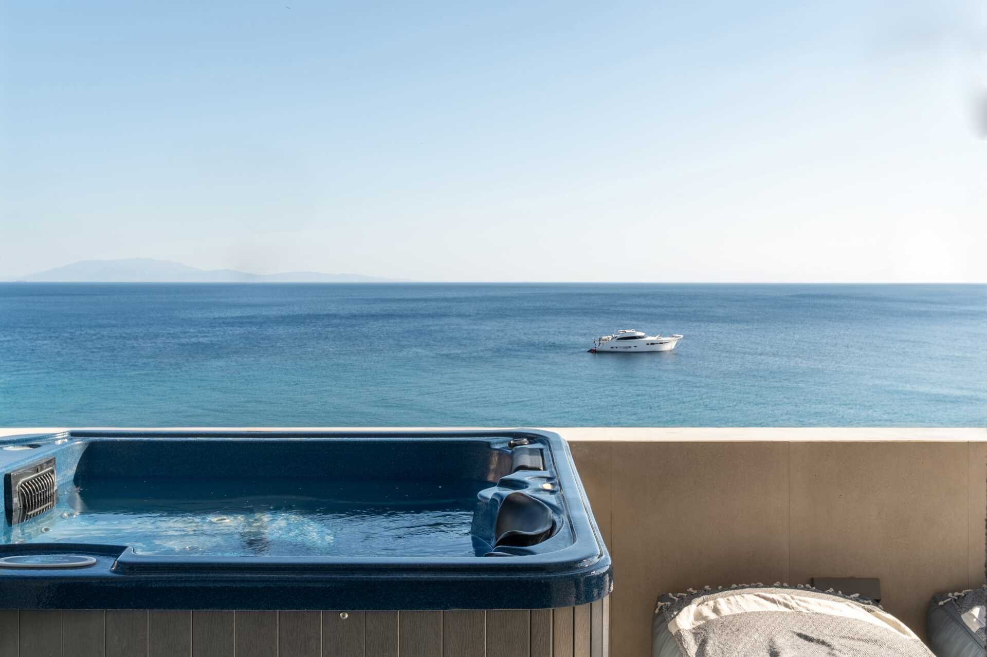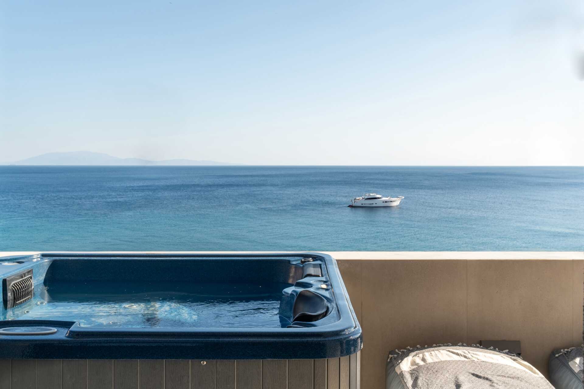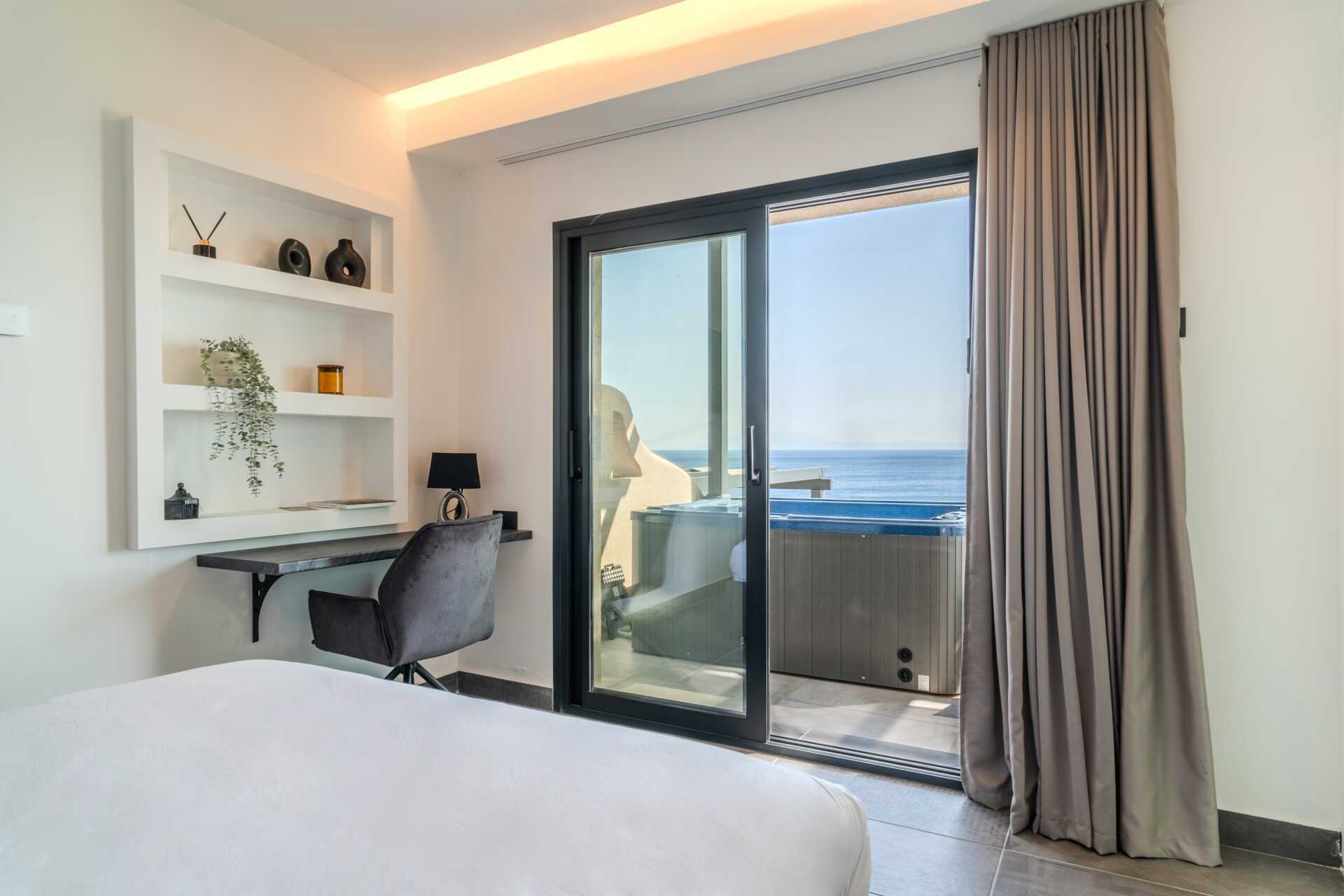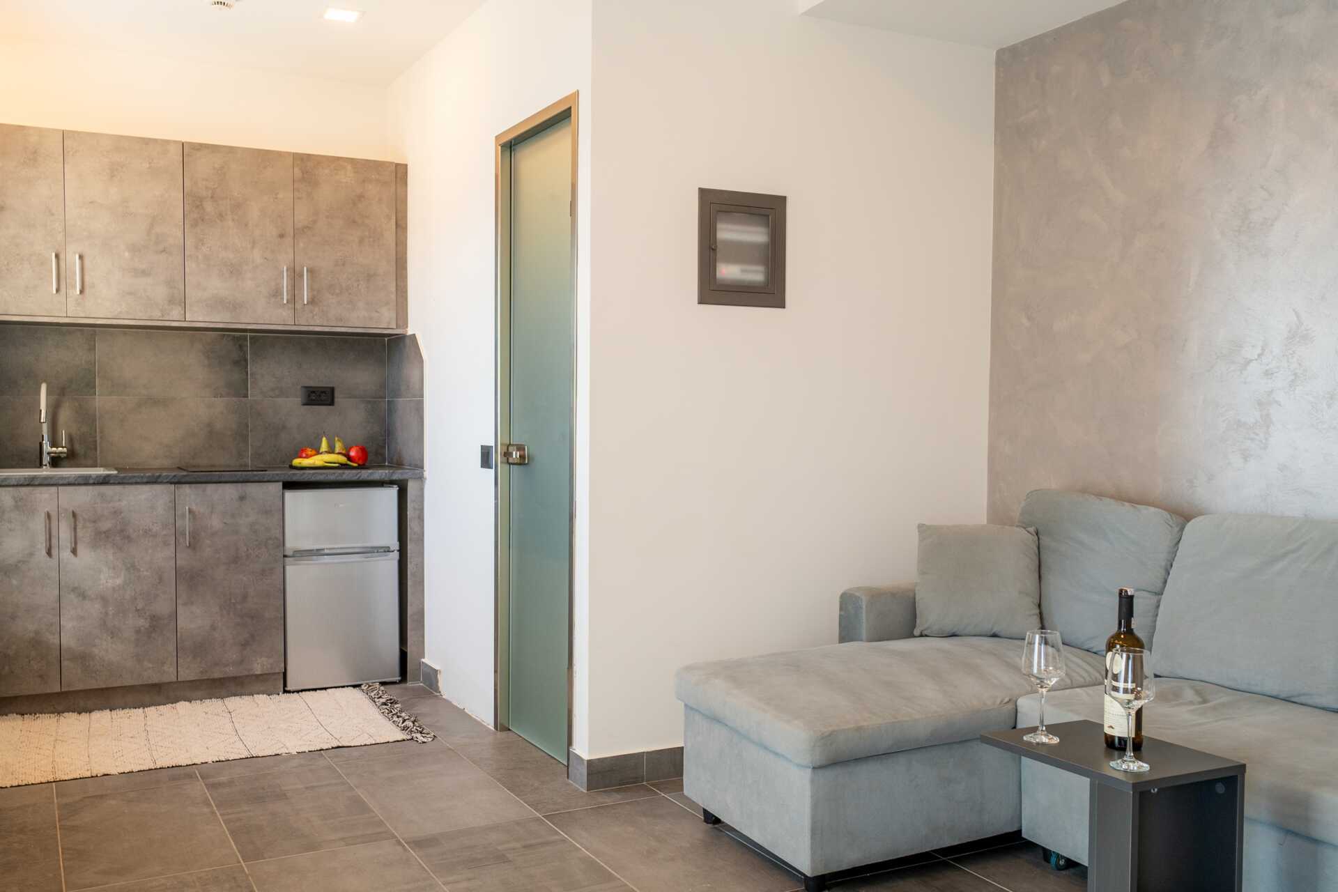 1-værelses lejlighed med balkon og havudsigt. På balkonen er der jacuzzi og solstole. Soveværelse kombineret med minikøkken. En dobbeltseng. Mulighed for ekstra opredning. Minikøkken med kogeplader, køleskab, brødrister og enkelt køkkenudstyr. Gratis wifi, aircondition og deponering. Tv med internationale kanaler. Damper. Badekåber. Hårtørrer. Badeværelse med bruser og toilet. Rengøring 7 gange om ugen.