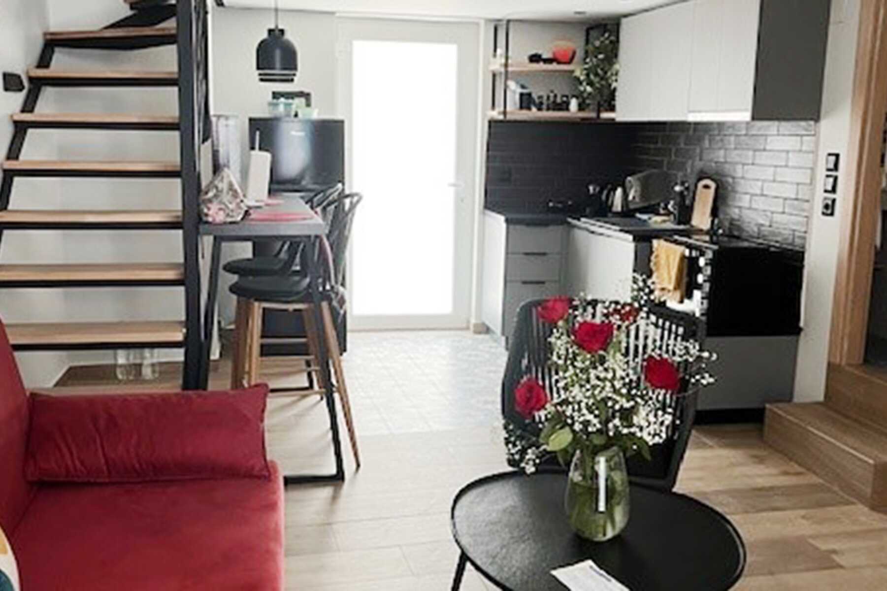 1-værelses lejlighed i etage med terrasse i stueplan. To enkeltsenge eller en dobbeltseng. Mulighed for ekstra opredning i sovesofa. Minikøkken med kogeplader, køleskab, mikrobølgeovn, el-kedel, kaffemaskine og enkelt køkkenudstyr. Gratis wifi, aircondition og deponering. Tv med internationale kanaler. Vaskemaskine. Badekåber. Hårtørrer. Badeværelse med bruser og toilet. Rengøring 6 gange om ugen.