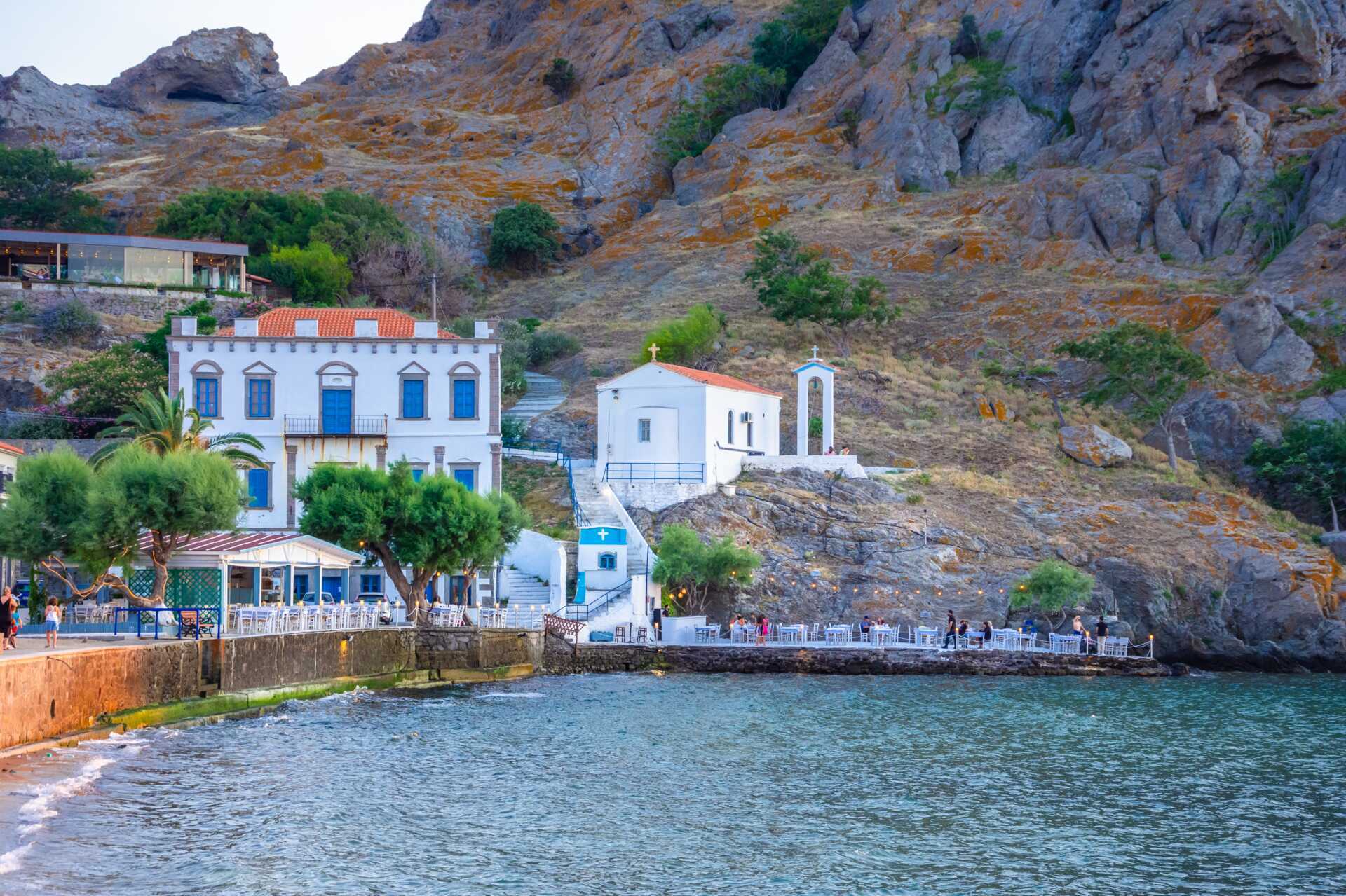Myrina, den charmerende hovedstad på Limnos, ligger på øens vestkyst og strækker sig over to bugter indrammet af et imponerende venetiansk slot. Her ligger elegante huse side om side med moderne restauranter og traditionelle tavernaer langs den livlige havnepromenade. I de hyggelige stræder finder du maleriske pladser, velbevarede kapeller, små butikker og caféer, der bare venter på at blive besøgt.